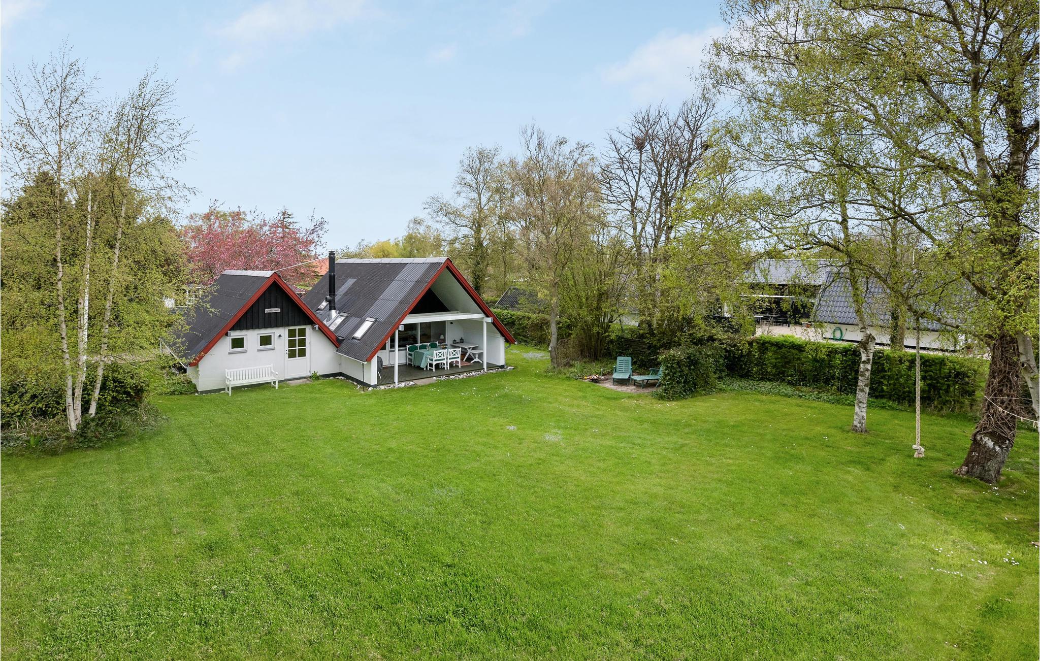 Hyggeligt træhus nær Skovmose Strand med sauna, internet og stor have til leg.