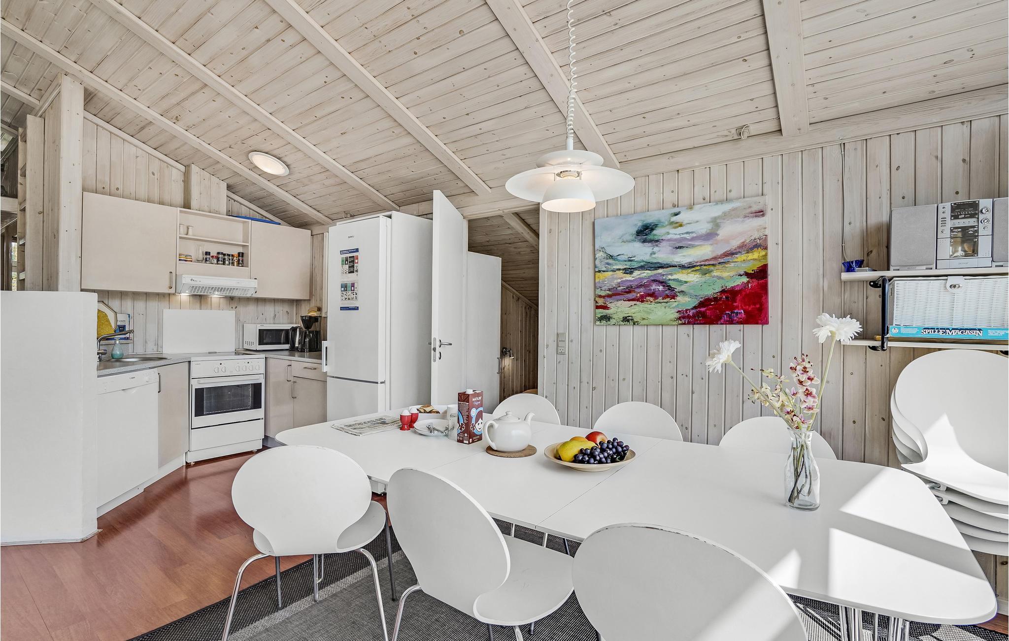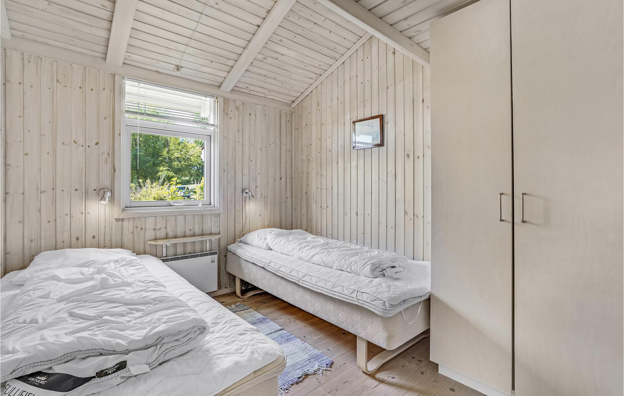 Få hundrede meter fra den nærmeste sandstrand dette hyggelige sommerhus, som har en lys og behagelig indretning. Her får I skønne rammer om familiehyggen, uanset om vejret egner sig til at sidde på terrassen eller slappe af indendørs. På kølige dage kan I tænde op i pejsen eller benytte saunaen.