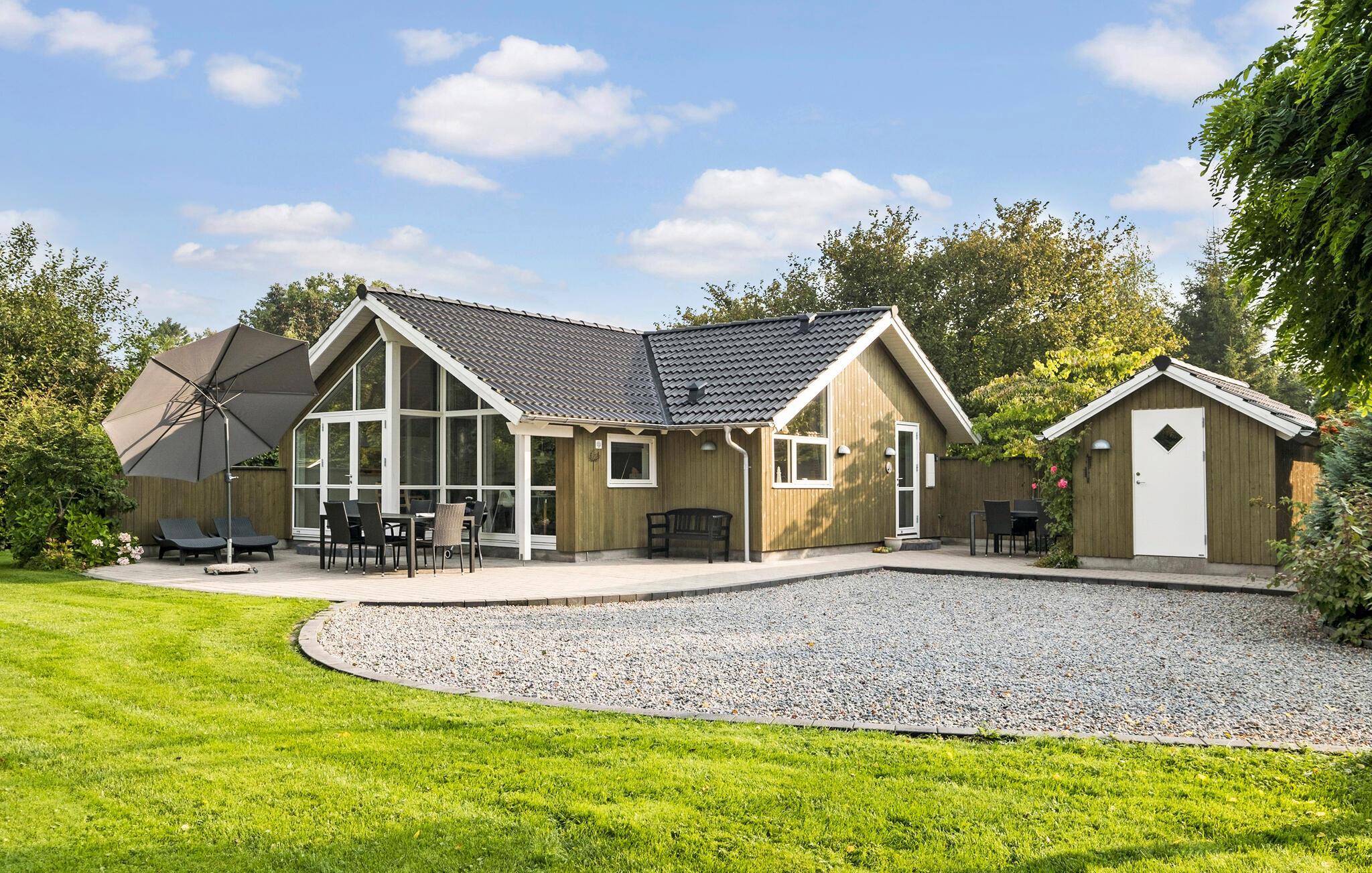 Velkommen til denne flot anlagte grund, som er meget tæt på Skovmose Strand. Her ligger dette hyggelige hus, hvor I kan tilbringe nogle herlige feriedage. Boligen er lys og åben med et fantastisk lysindfald fra den store vinduesvæg ud mod terrassen og haven. Nyd dagens måltider med den behagelige udsigt fra spisebordet og hyg jer med brætspil, når I vender hjem fra jeres eventyr.
