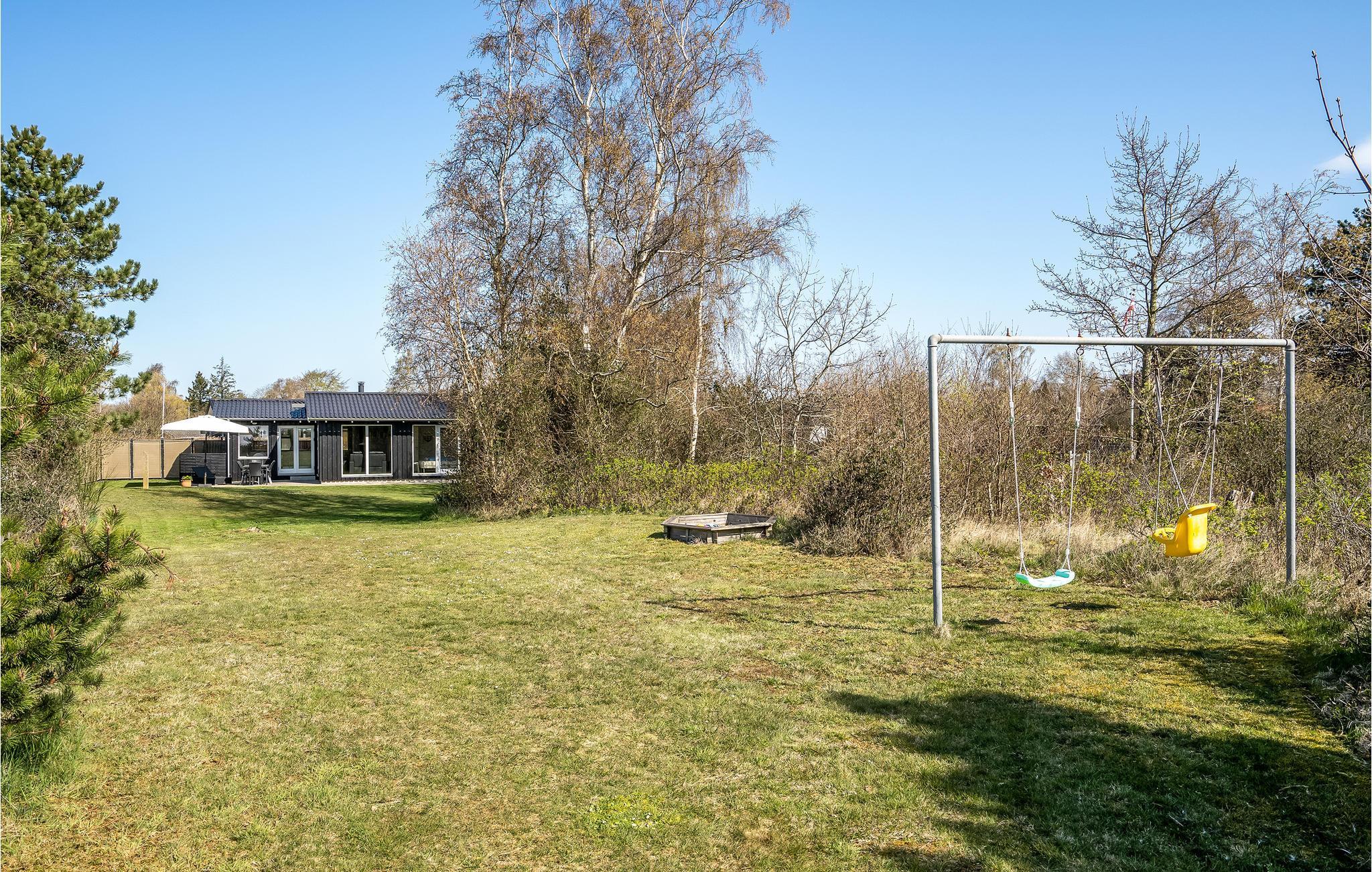 Hyggeligt feriehus i Skovmose med stor naturgrund, tæt på børnevenlig sandstrand og egen badebro.