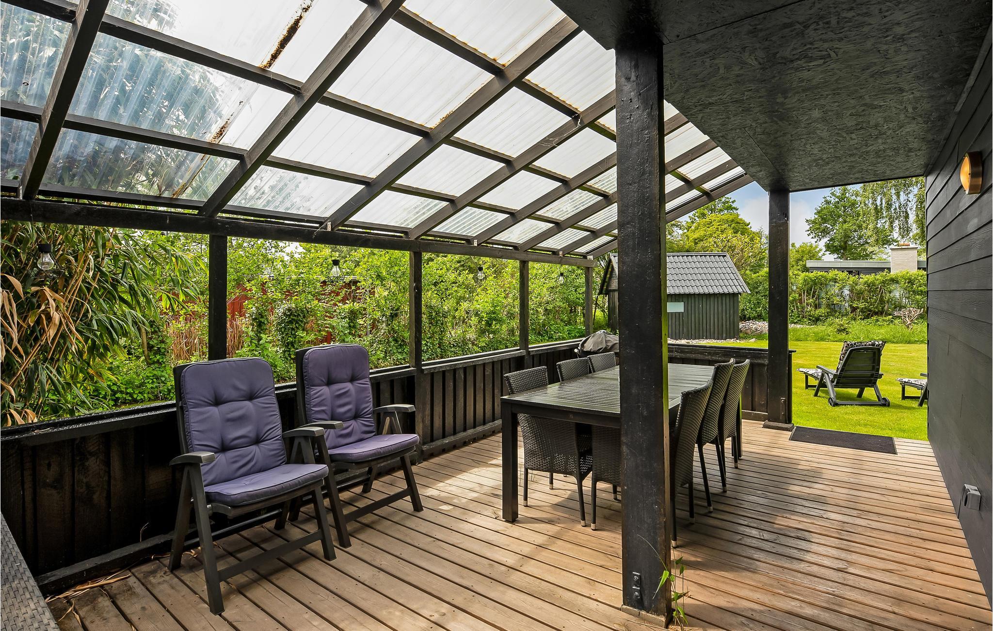 Hyggeligt feriehus tæt på børnevenlig strand med brændeovn og stor have til afslapning og leg.