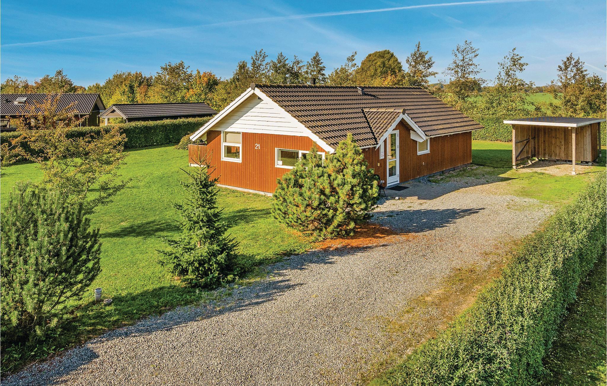 Dette hyggelige sommerhus ligger i det populære feriehusområde Skovmose på øen Als, som ligger i det sydlige Lillebælt mellem Jylland og Fyn og tæt på den tyske grænse. Skovmoseområdet er særdeles fredeligt og børnevenligt med mange grønne arealer, som er velegnede til leg og boldspil. Der er kort afstand til indkøbsmuligheder og fra feriehuset kun 500 m til en dejlig, bred sandstrand med små klitter og anlagt badebro. Ca. 1,5 km fra feriehuset ligger den hyggelige Skovby Kro, som serverer et godt måltid mad, og ca. 16 km væk ligger Sønderborg, som har et attraktivt forretnings- og kulturliv. Her kan I gå en tur på havnepromenaden eller på strøget og lade jer friste af de mange butikker og caféer. Besøg også Sønderborg Slot, som huser et museum, der er spændende for både store og små. I nærheden ligger desuden Dybbøl Mølle og Skanserne, som udover at være et smukt område, også rummer historiske minder. Kører I mod den nordlige del af øen, kommer I til Nordborg, hvor Nordborg Slot samt en af Danmarks største industrivirksomheder, Danfoss Universe ligger. Her kan I besøge Teknorama, som er et teknisk museum og 'eksperimentarium', hvor nysgerrige og legesyge pilfingre i alle aldre kan opleve både ny og gammel teknologi. På Nordals findes der talrige arkæologiske fund, bl.a. en tro kopi af Nordens ældste plankbyggede båd 'Hjortspringbåden'. Naturmæssigt er Als et sandt eldorado med afvekslende, kuperede landskaber og store skove, lange kyststrækninger med såvel badestrande som stejle klinter, små vige og dybe fjorde. Her er alt, hvad hjertet kan begære, hvadenten I er mest til aktiv ferie eller befinder jer bedst på en solseng, eller måske på en café med en kølig drink og udsigt til en hyggelig lystbådehavn.