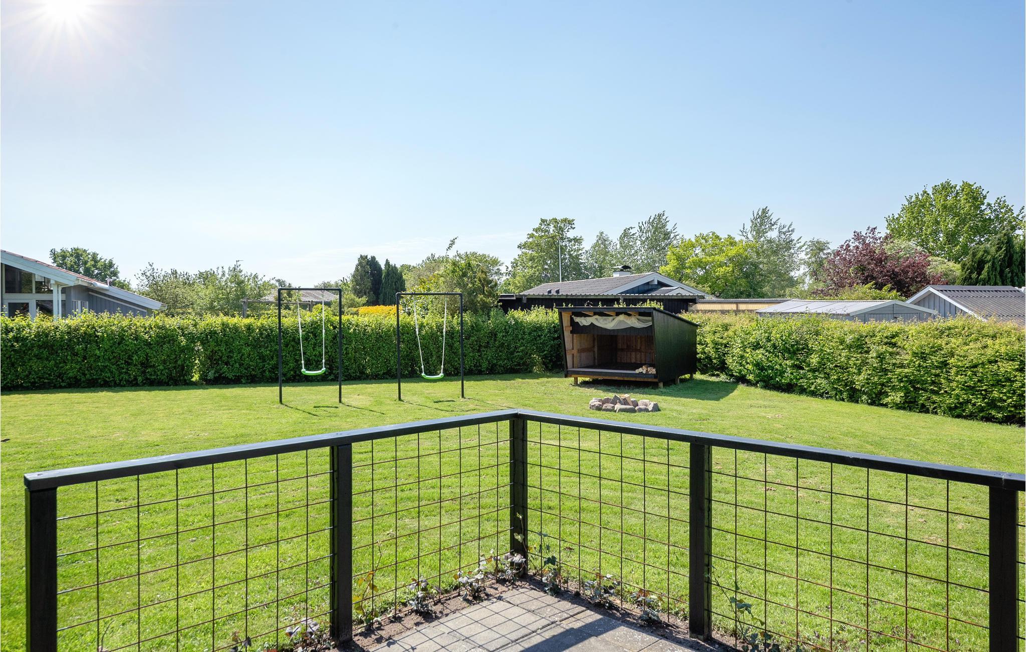 Charmerende sommerhus nær Skovmose Strand med lukket terrasse og natur lige udenfor døren.