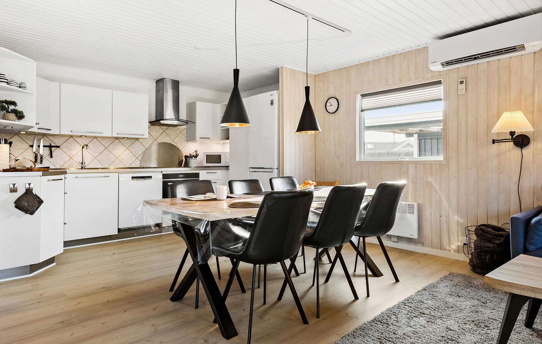 Dette feriehus er beliggende i kort afstand fra den familievenlig badestrand i Skovmose. Husets køkken ligger i åben forbindelse med spiseafdelingen og opholdsstuen. I stuen er der både en brændeovn og en energivenlig varmepumpe, som I kan benyttei på de kølige dage og aftener. Overalt i huset kan I benytte den trådløse internetforbindelse. Huset har et dejligt terrasseområde, hvoraf en del er overdækket. Her kan I grille et godt måltid mad uanset vejret. På grunden er der god plads til leg og boldspil for såvel små som store gæster. Fra den dejlige strand kan I nyde en dukkert i Østersøens klare vand.