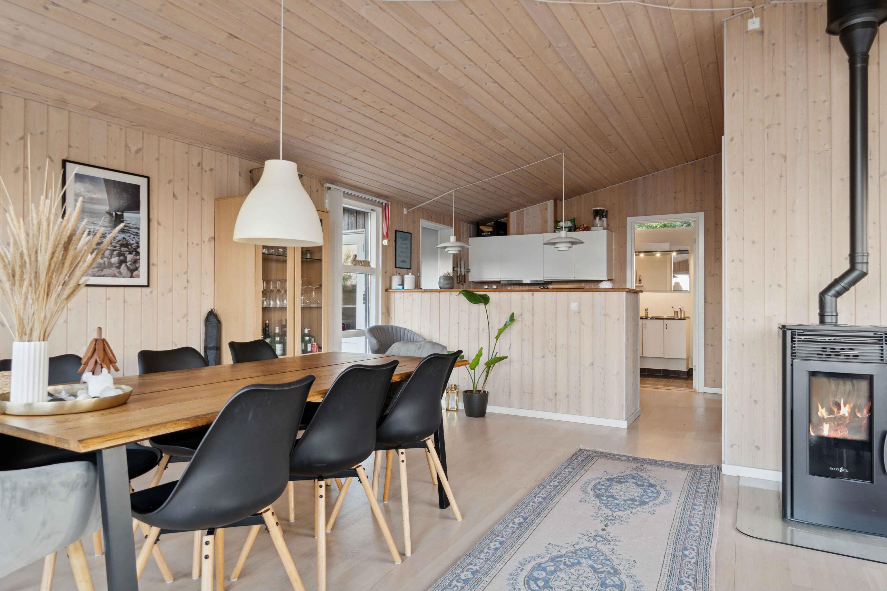 Dette sommerhus byder på 71 velindrettede kvadratmeter med plads til fire personer fordelt på to hyggelige soveværelser. Huset har både pillebrændeovn og varmepumpe, som sikrer et behageligt indeklima året rundt. Det er ikke-ryger og husdyrfrit, hvilket gør det ideelt til familier og par, der søger ro. Køkkenet er fuldt udstyret med både opvaskemaskine og vaskemaskine, og der er hurtigt internet (1000/1000), fjernsyn med Chromecast samt alt, hvad man behøver til en afslappet ferie. Udenfor står tre cykler og et løbehjul klar til brug, så området kan udforskes aktivt. Til vandaktiviteter findes fem padelboards og redningsveste, perfekt til dage med sol og roligt vand. Afstanden til stranden er blot 250 meter, så morgen- og aftendukkerter er lige for hånden. Den lokale købmand ligger 800 meter væk, mens større indkøb kan klares i de nærliggende byer. Området byder på klassisk dansk sommerstemning med børnevenlig badestrand, lavt vand og smukke solnedgange. Her findes gode cykelruter gennem naturen, små lokale vejboder og fredfyldte stier langs kysten. Tæt på ligger skov, marker og hyggelige sommerhusområder, hvor fugleliv og havets brusen skaber en rolig ferieatmosfære. Dette sommerhus er perfekt til jer, der søger nærvær, natur og aktive dage ved kysten – med komforten i top og oplevelserne lige uden for døren.