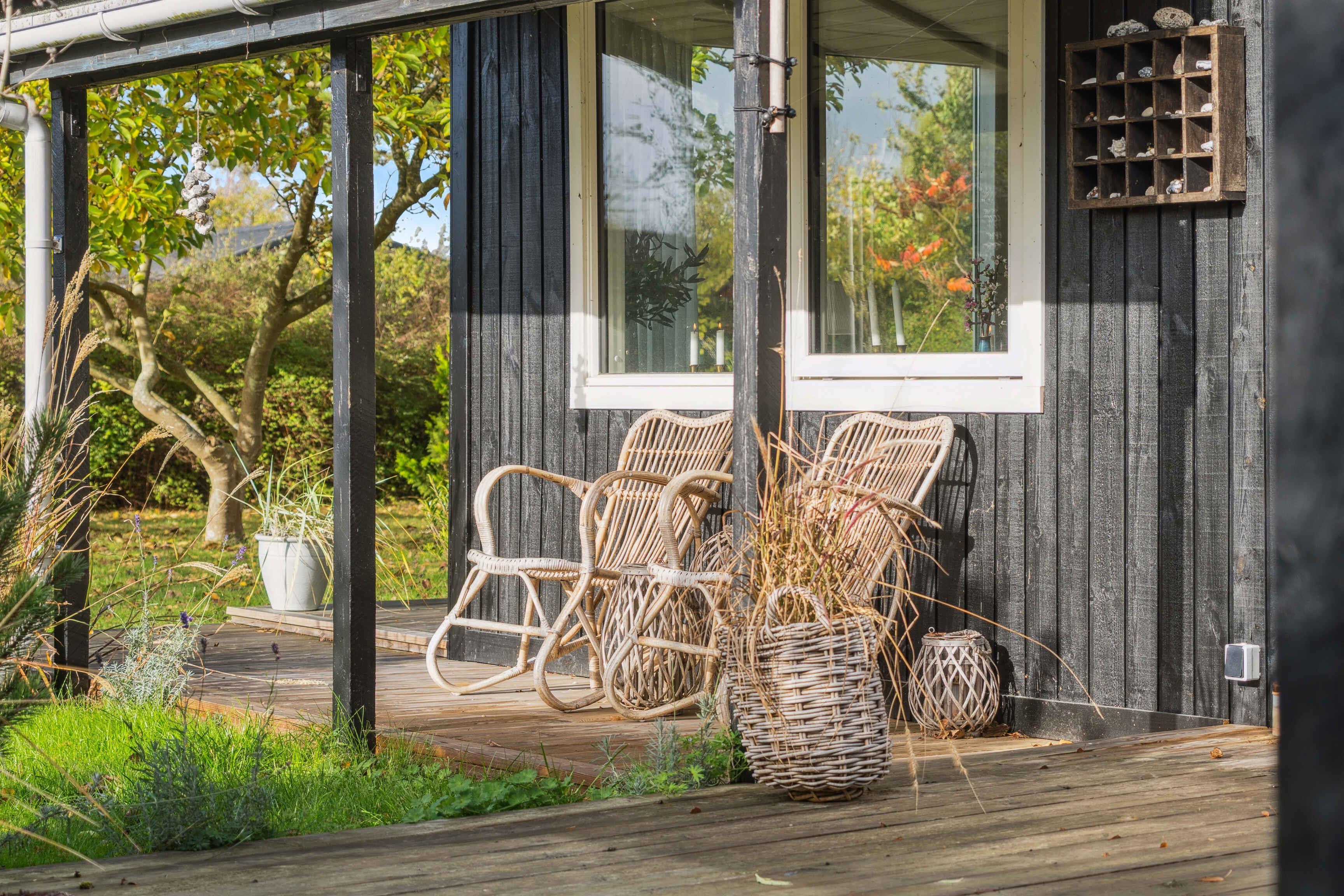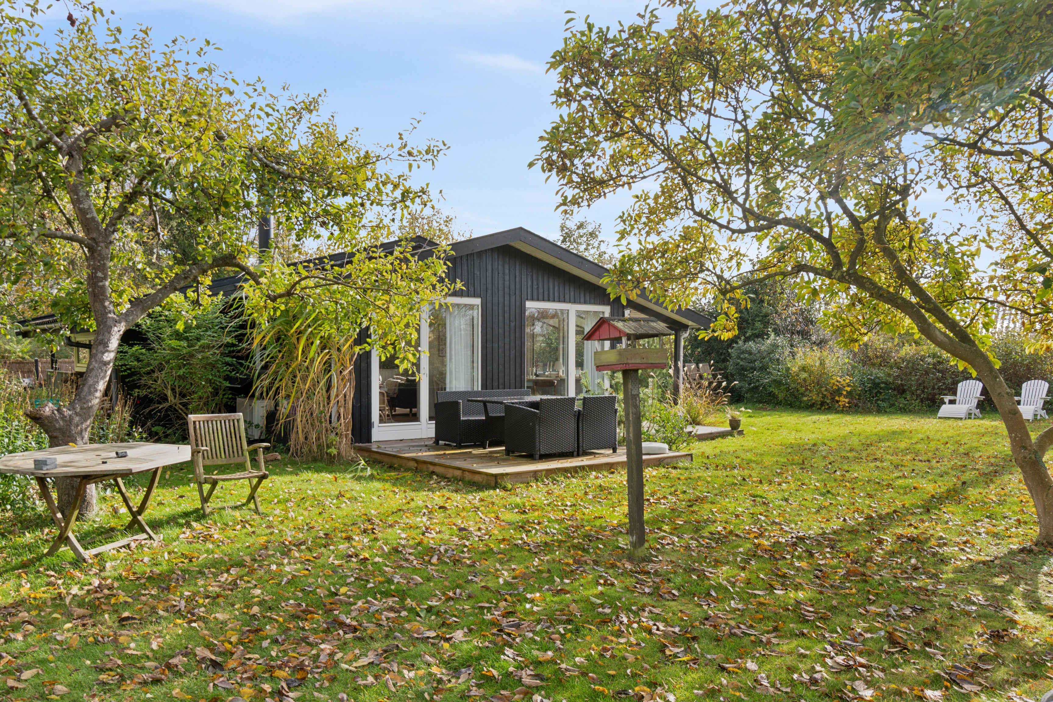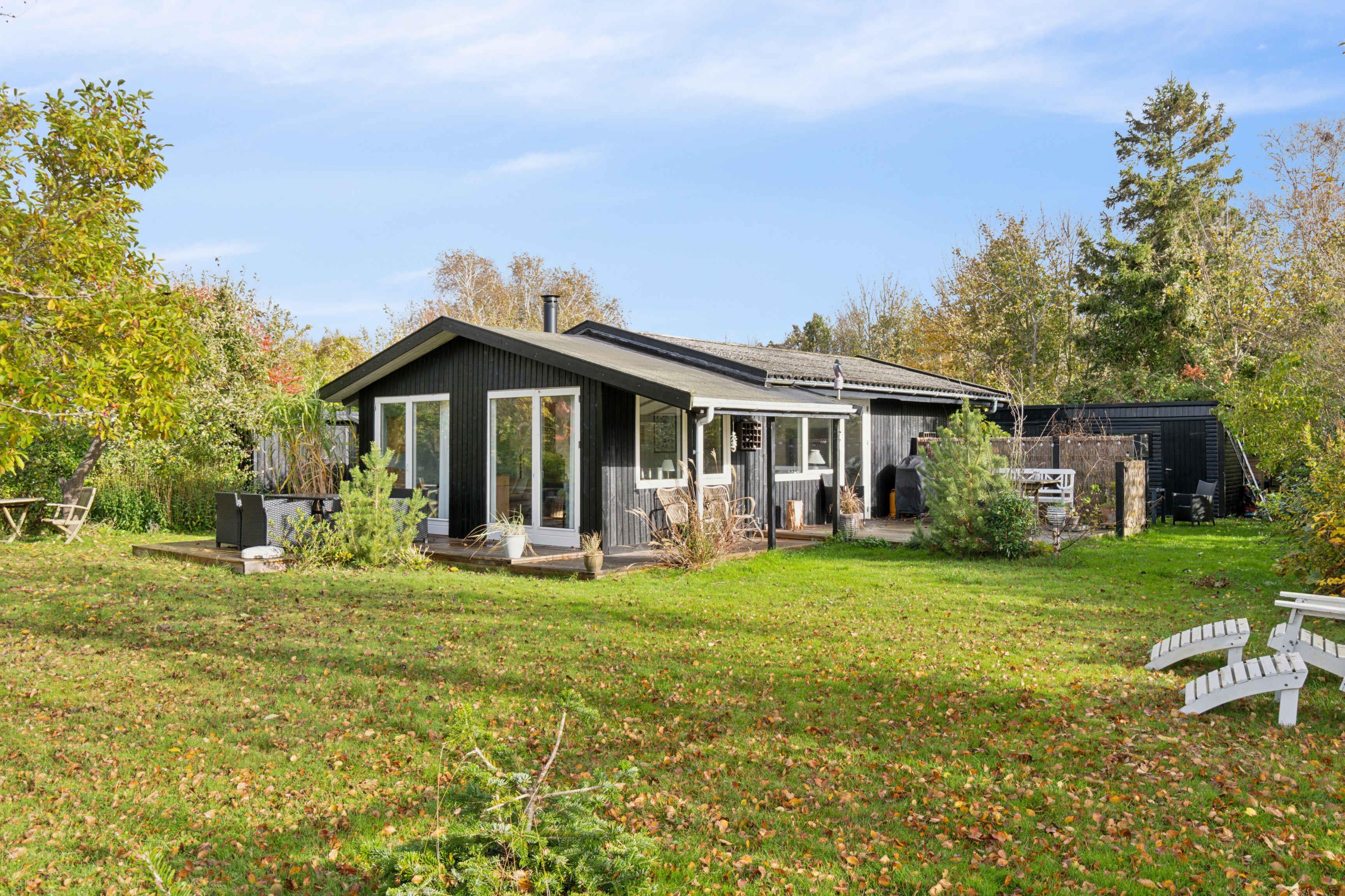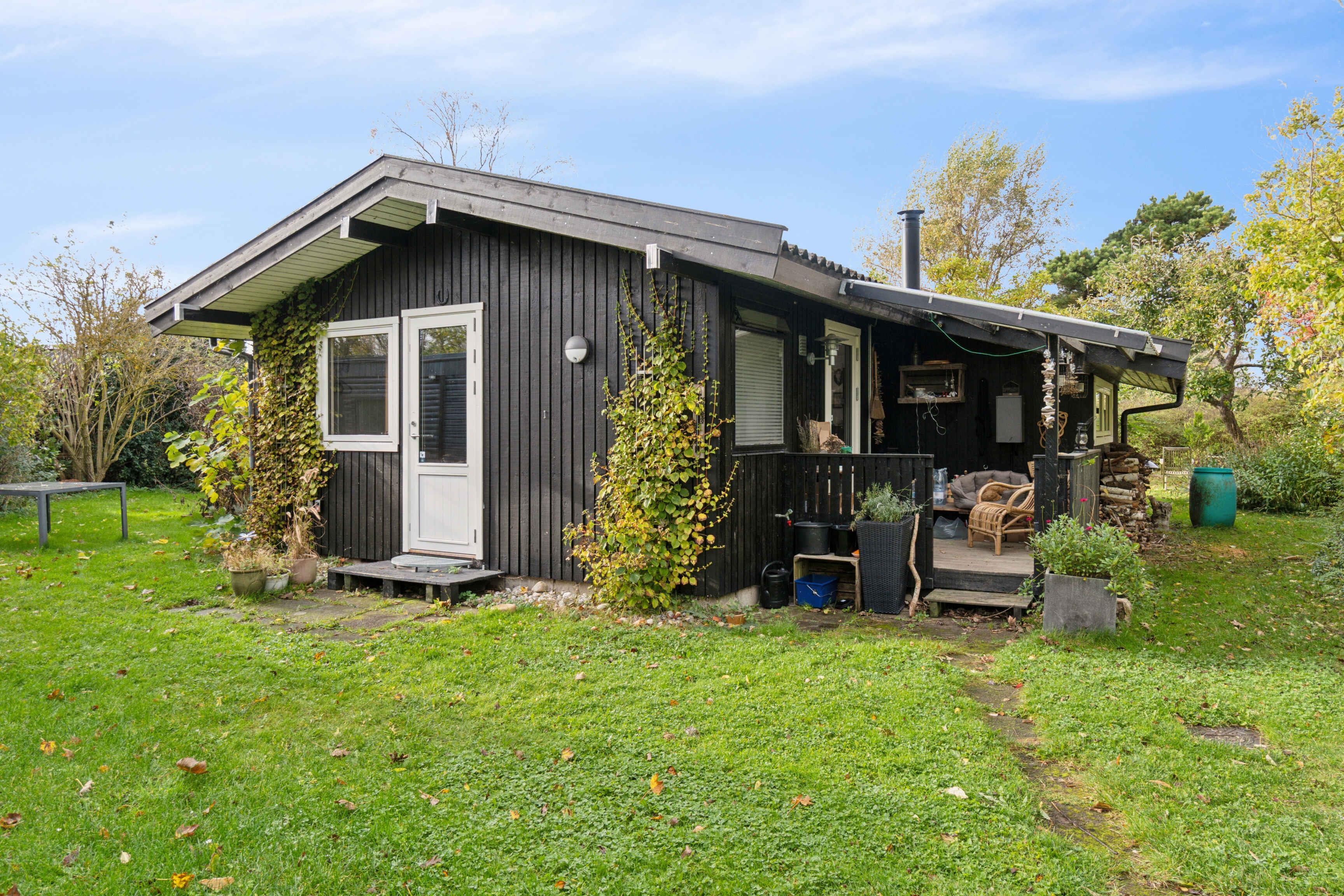Hyggeligt sommerhus tæt på Kelstrup Strand med stor have, brændeovn og ladestander til elbil.