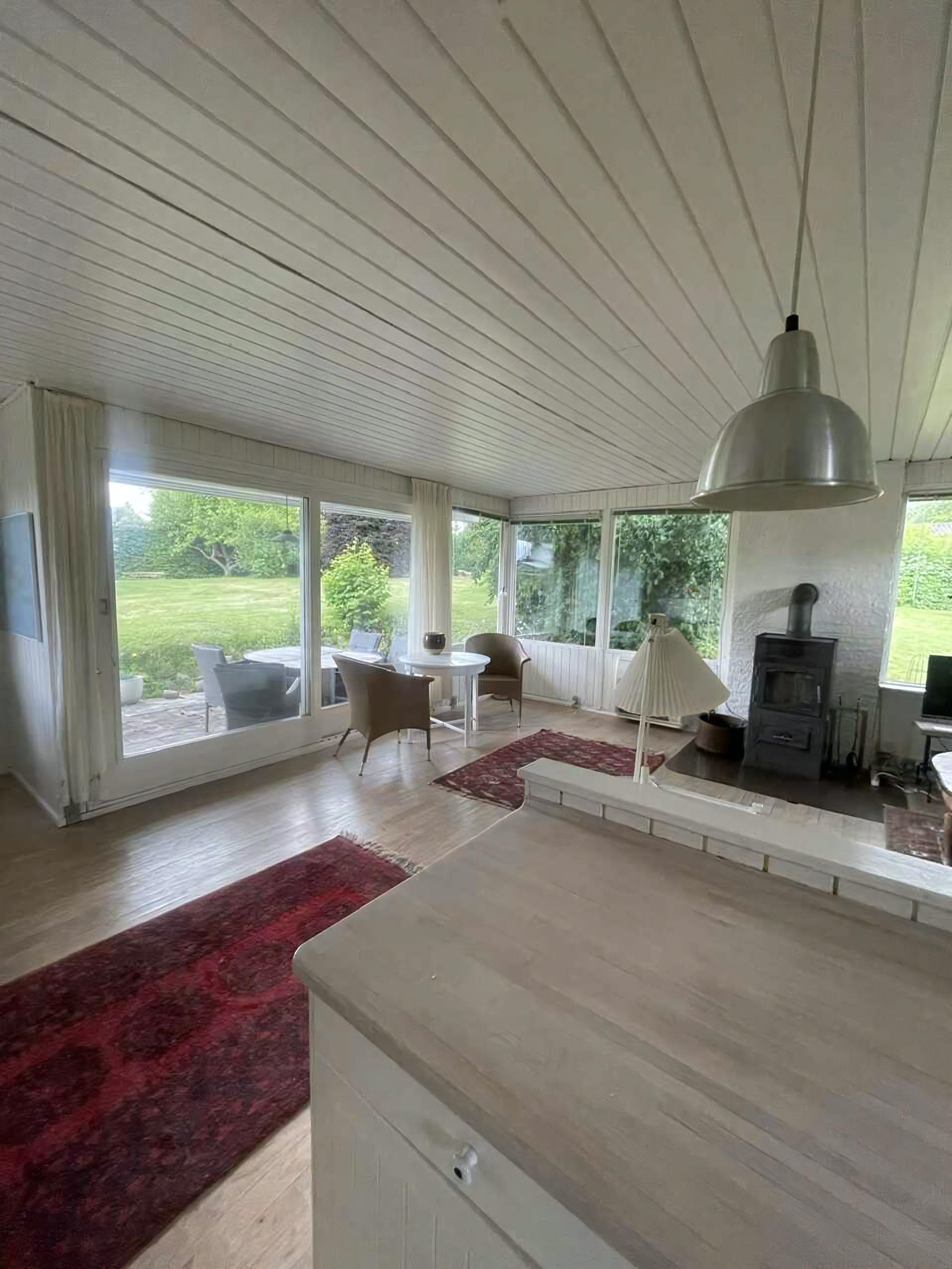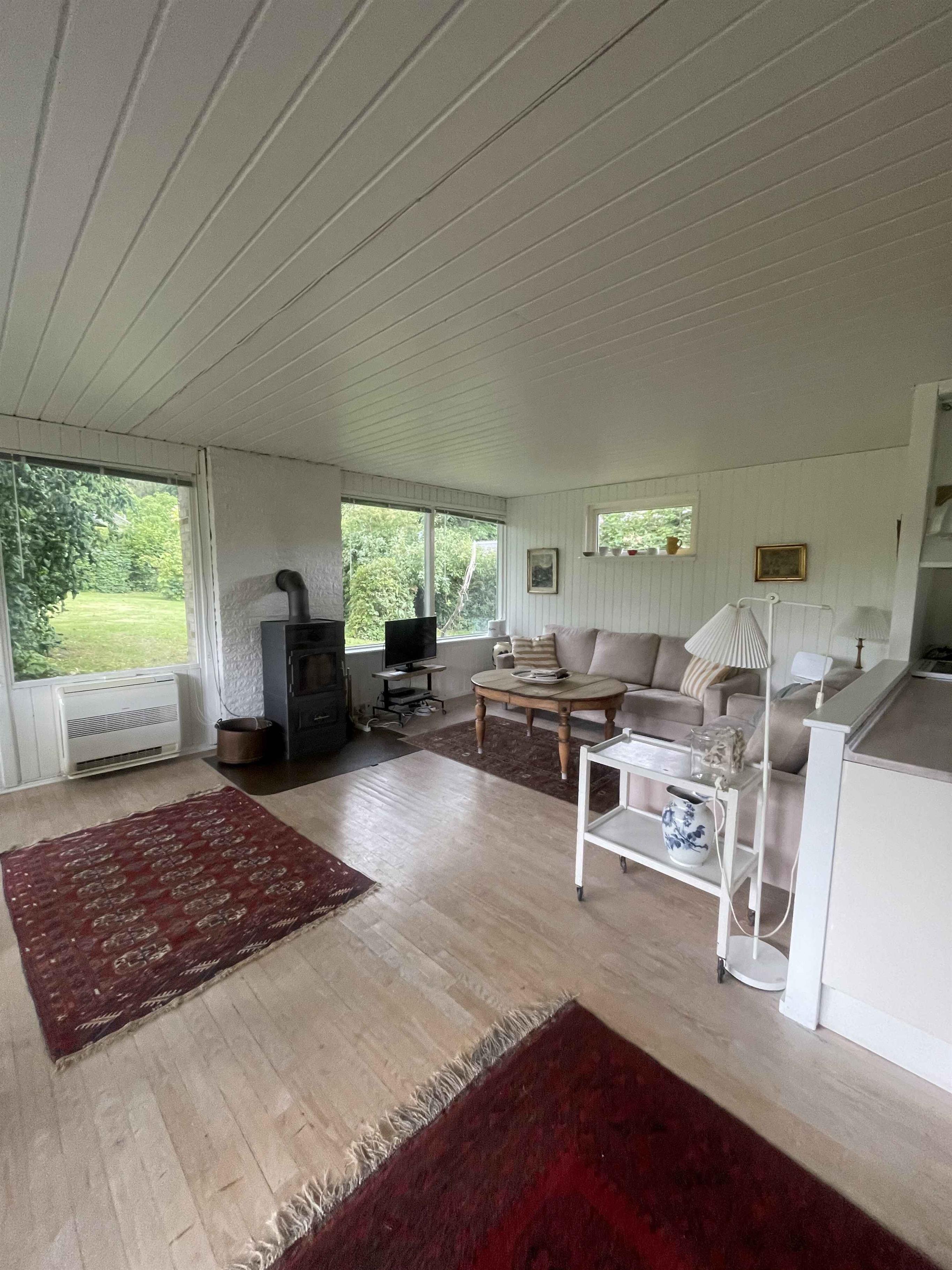 Dette rummelige sommerhus på 140 m2 rummer fire soveværelser med plads til seks gæster. Huset har to stuer, hver med sin egen brændeovn, og store vinduespartier, der lukker lys og naturen ind. Fra stuerne er der direkte udgang til haven. Grunden er stor og indbyder til leg, afslapning og udeliv. Den overdækkede terrasse giver mulighed for at nyde måltider i det fri, uanset vejr. Haven er omgivet af grønne rammer, som skaber ro og privatliv. Området byder på oplagte ferieoplevelser. Buresø ligger kun få skridt væk med gode bademuligheder og skovklædte omgivelser. Søen er velegnet til svømmeture, kajak eller en rolig dag på bredden. De nærliggende skove indbyder til vandre- og cykelture i varieret natur. For dem, der søger lidt mere byliv, er der korte afstande til hyggelige lokalsamfund med caféer, indkøbsmuligheder og små seværdigheder. Området giver en ideel balance mellem naturens ro og let adgang til hverdagens bekvemmeligheder. Huset er perfekt til familier eller venner, der ønsker en afslappet feriebase tæt på sø og skov. Kombinationen af gode indendørs rammer og et naturrigt nærområde gør boligen til et attraktivt valg.