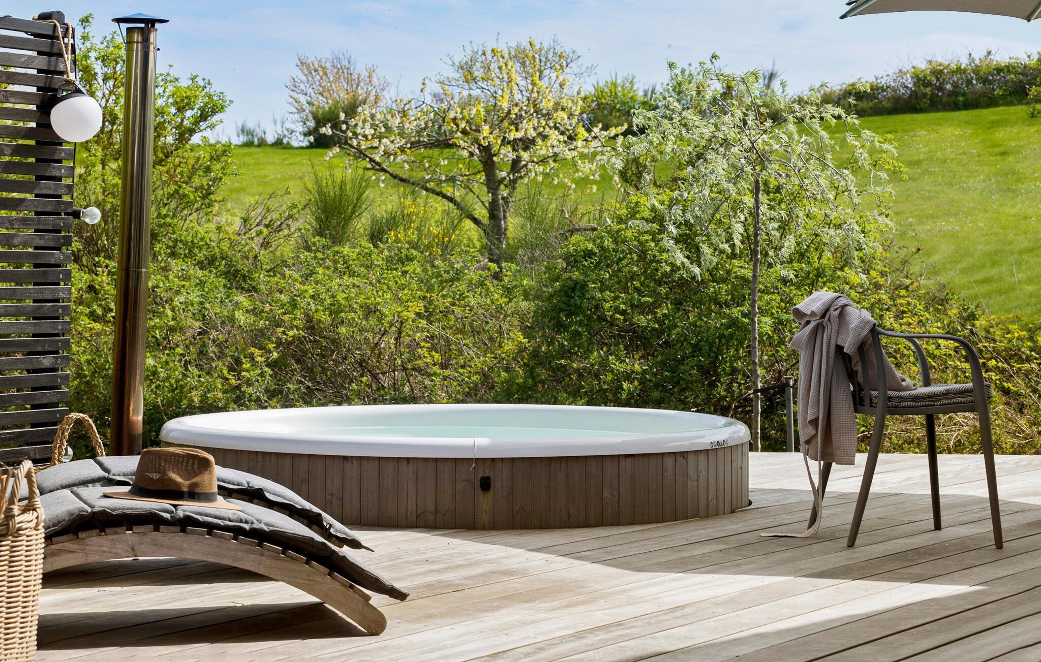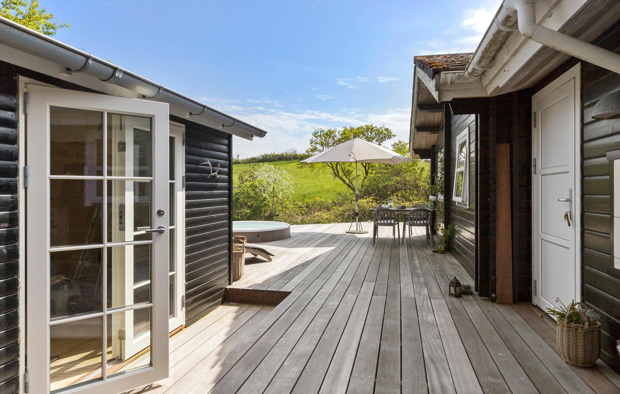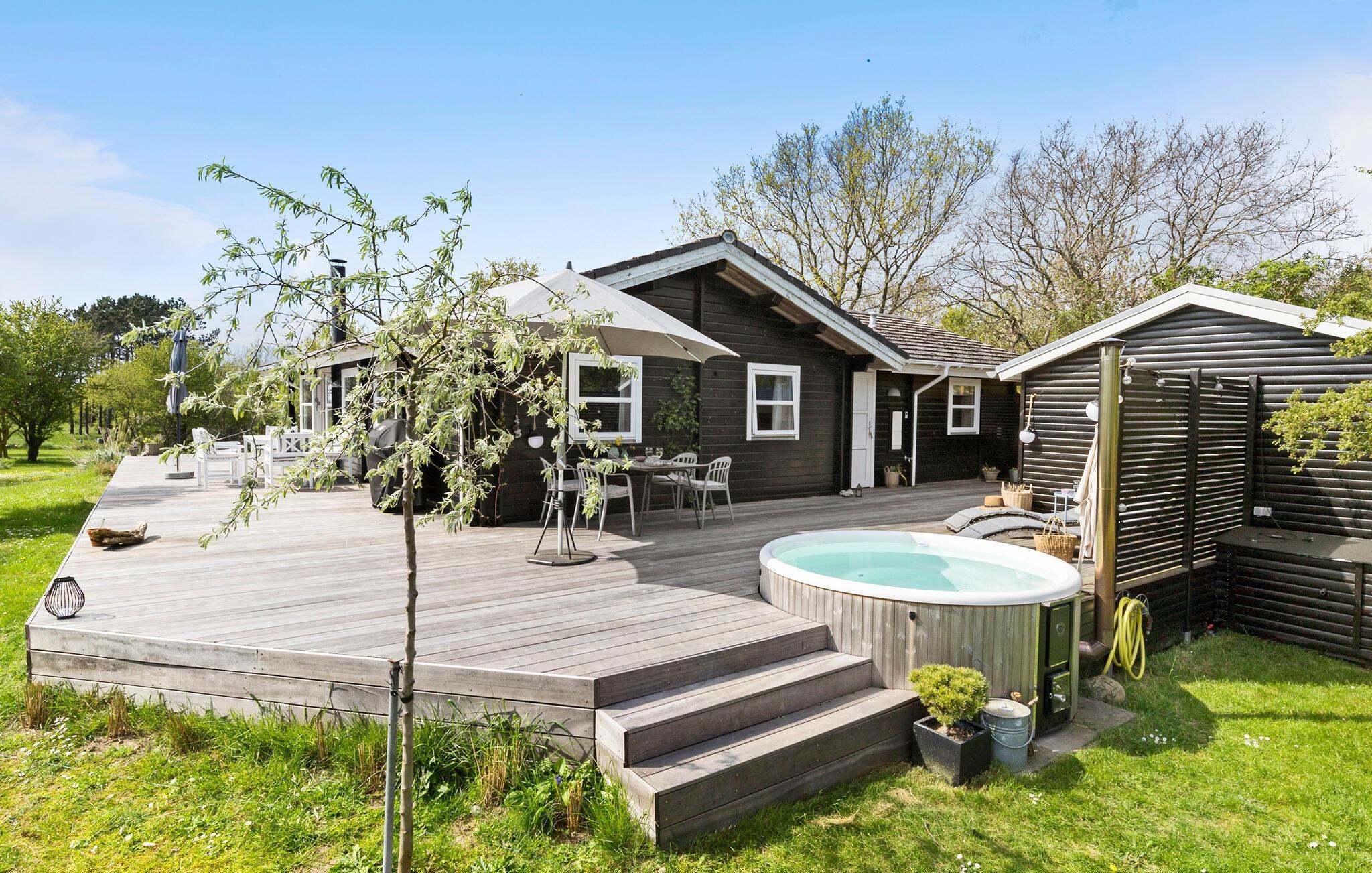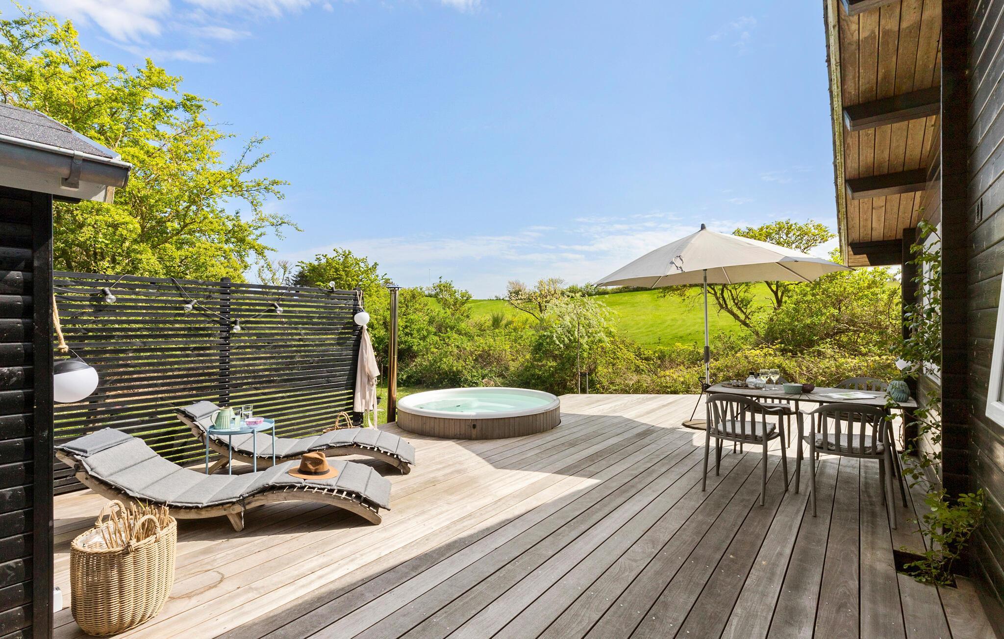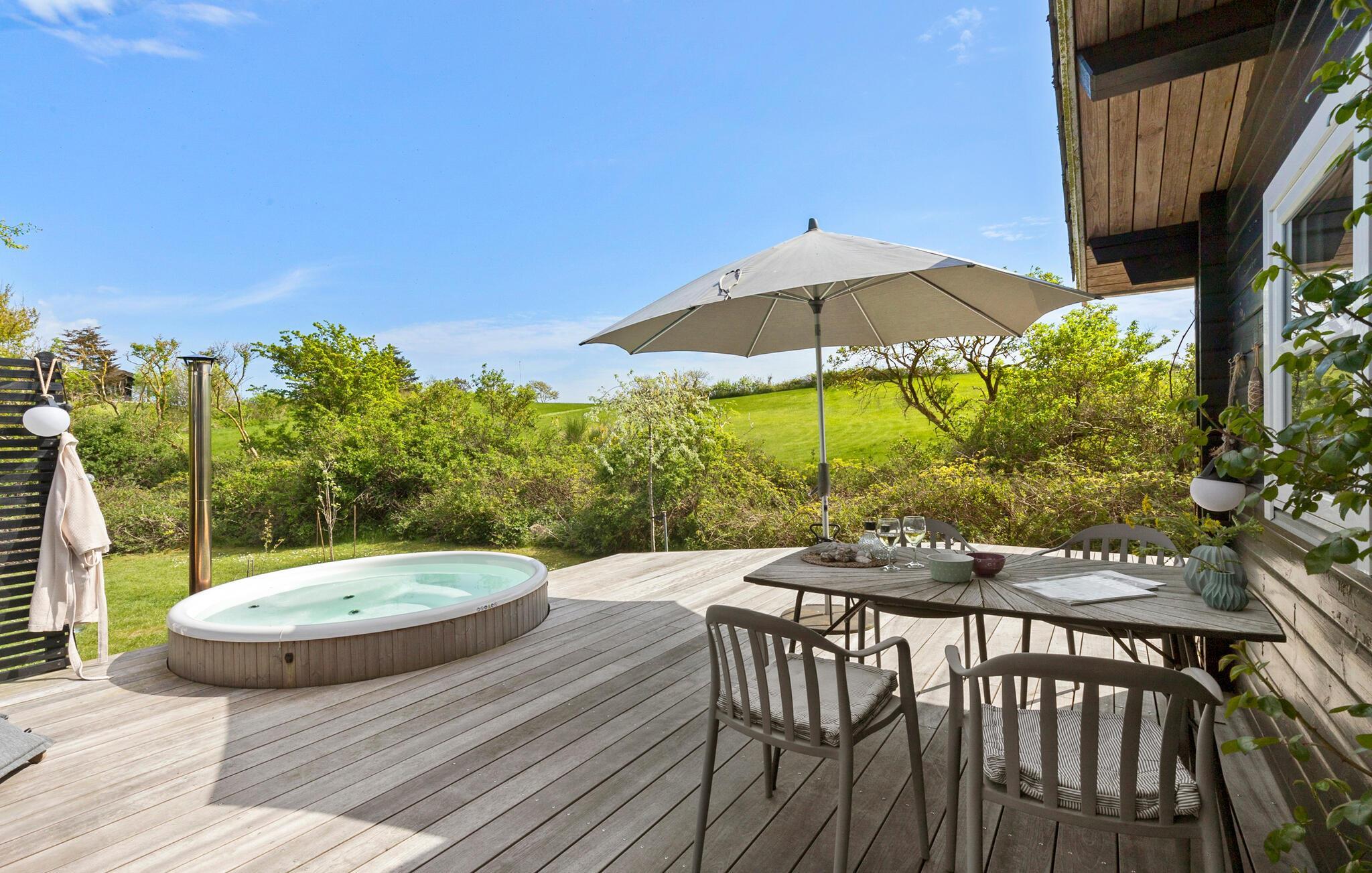 På terrassen finder I et lækkert vindmarksbad, der er rummeligt og har plads til seks personer. Om aftenen er der intet bedre end at glide ned i det varme vand og nyde roen og den smukke stjernehimmel.