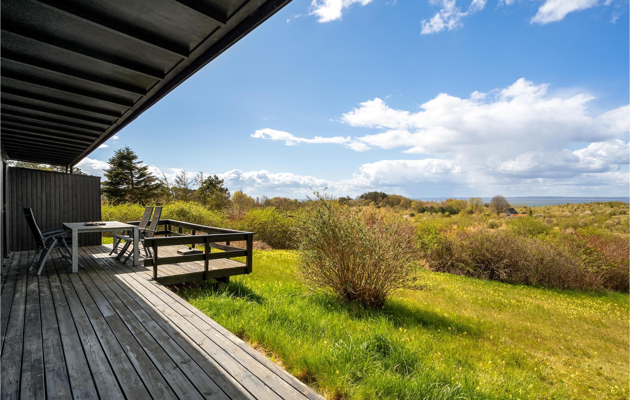 Hyggeligt sommerhus nær Sletterhage Strand med panoramaudsigt og skøn terrasse til afslapning og udendørs aktiviteter.