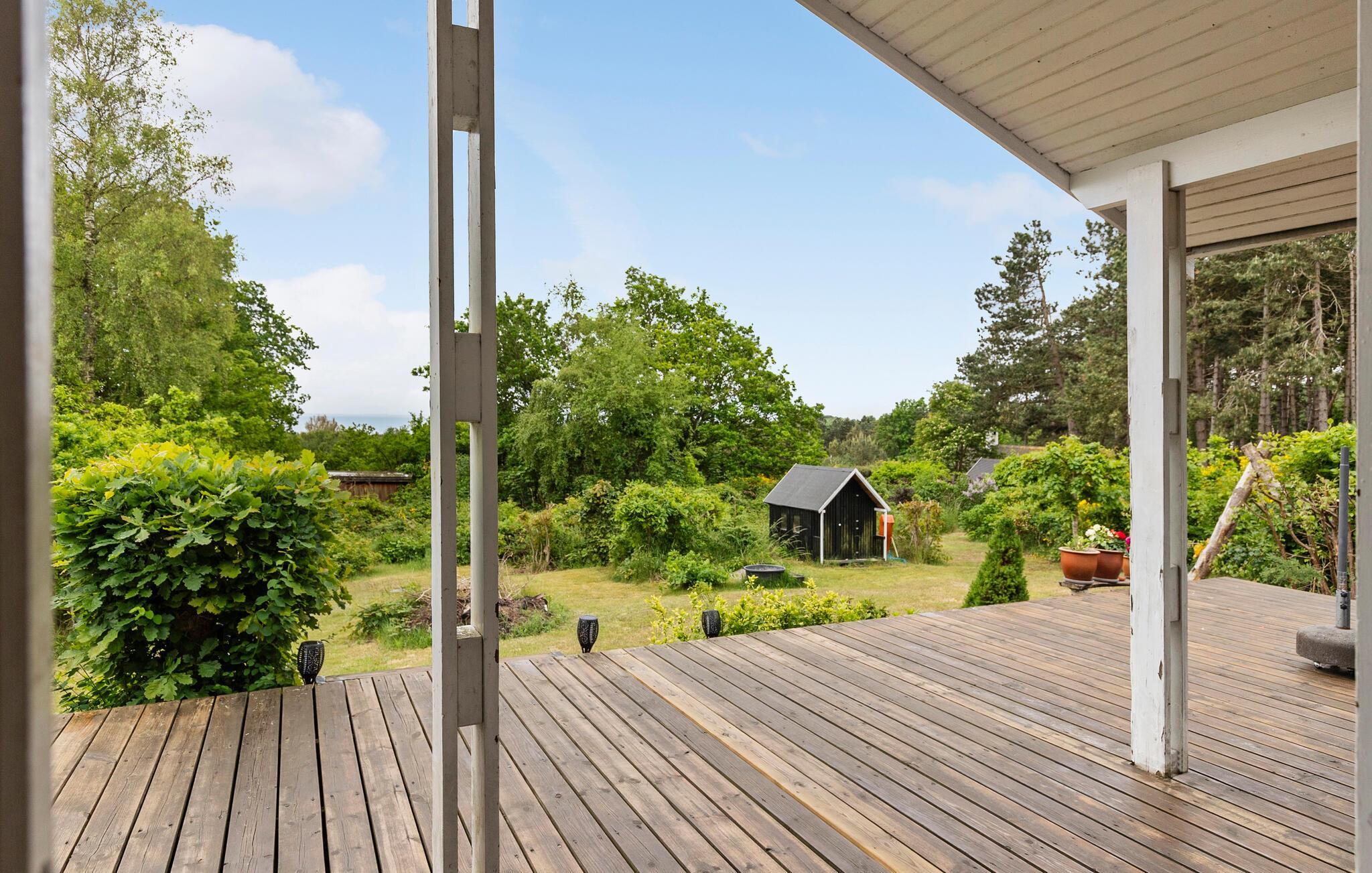 Charmerende sommerhus på Helgenæs med havudsigt, terrasse og have, perfekt til en afslappende ferie i naturen.
