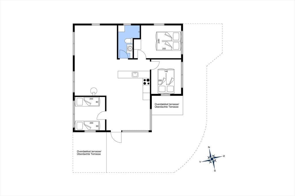 Skinner sommersolen, når I vågner op til endnu en feriedag, kan I glæde jer til at komme ud i det fri lige fra morgenstunden – og der er ligefrem en udendørs bruser på den 1254 m2 store naturgrund, så selv morgenbadet kan foregå under åben himmel. På den østvendte terrasseafdeling kan I dække op til brunch og læse avisen, og senere på dagen kan I følge med solen og rykke driverlivet hen på det store, sydvendte terrasseområde. En del af terrassen er overdækket og afskærmet, så her er der både ly og læ, hvis det skulle blive nødvendigt.