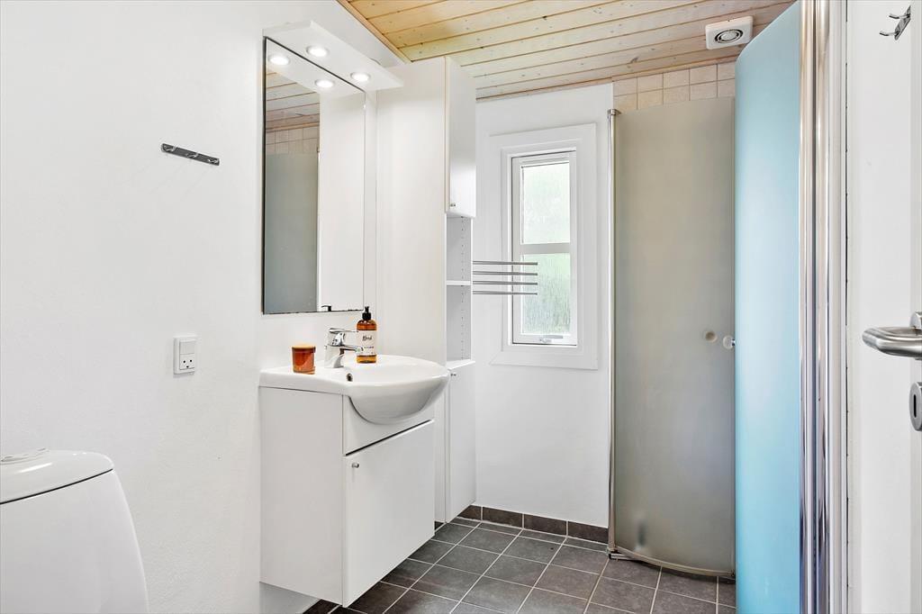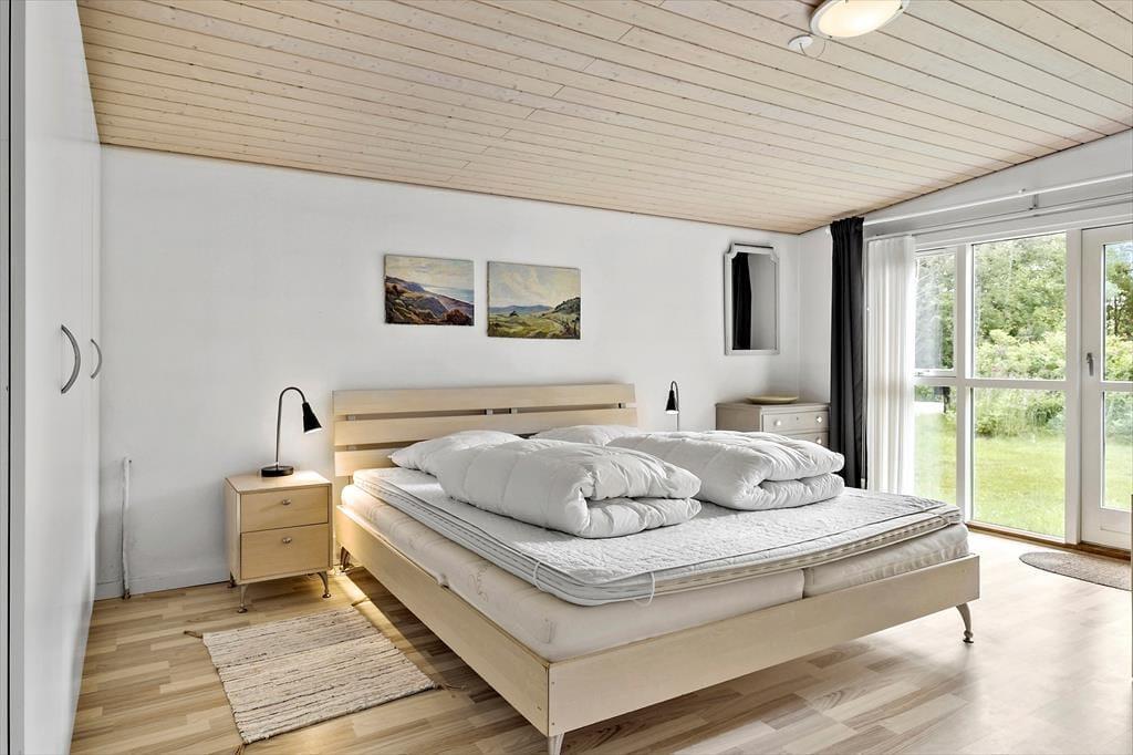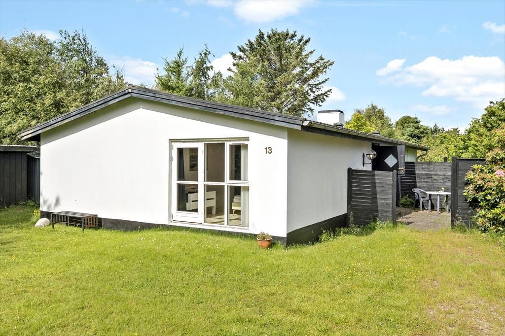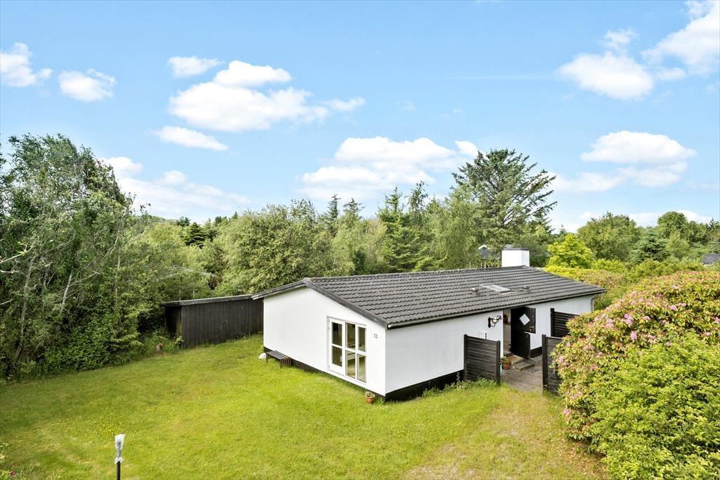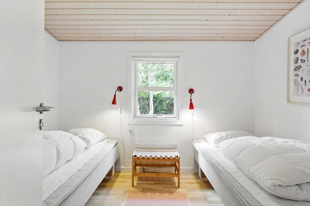 Feriefølelsen melder sig hurtigt, når du ankommer til det fine, hvide hus midt i det grønne. Indenfor byder indretningen på en hjemlig og komfortabel stil, der inviterer dig til at finde ro og nyde dine feriedage. Har du brætspil, strikketøj eller gode bøger med, er stuen det oplagte sted at slå sig ned – her er brændeovn, bløde møbler og en hyggelig spiseplads. Der er åben forbindelse til køkkenet, og derudover rummer huset tre soveværelser og et brusebadeværelse. Det største af soveværelserne har direkte adgang til terrassen, så du kan begynde dagen med et skridt ud i haven og en god portion frisk luft.