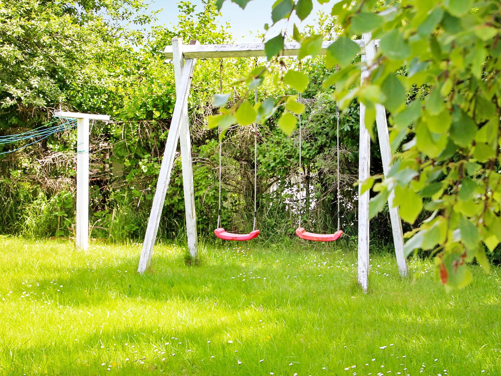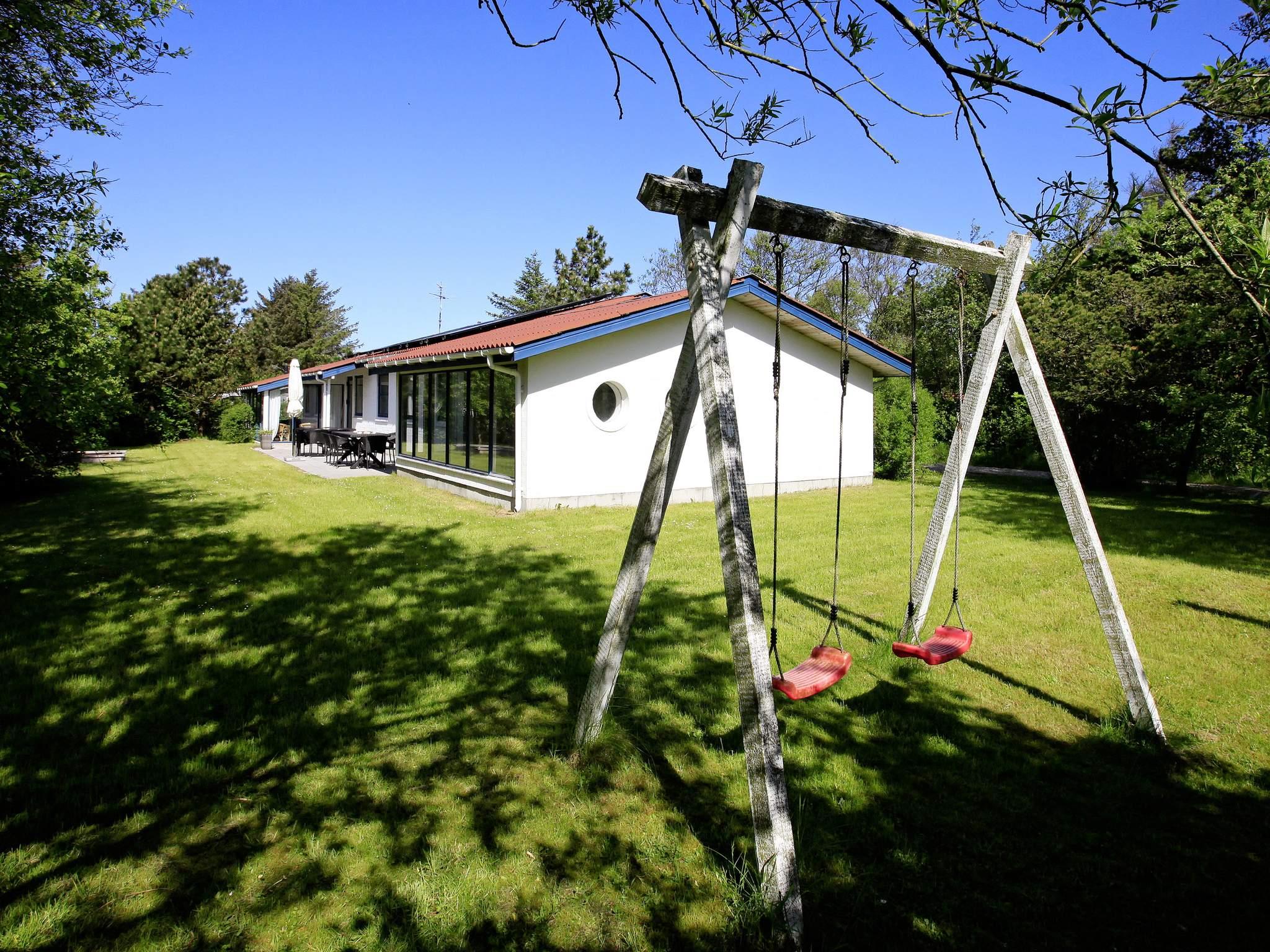 Der er 3 terrasser rundt om huset, hvor der er god mulighed for at sidde og grille om aftenen. Huset ligger på en 891 m² stor grund med masser af læmuligheder og hyggelige kroge, hvor I kan nyde solen. Til børnene er der sandkasse og gynge.