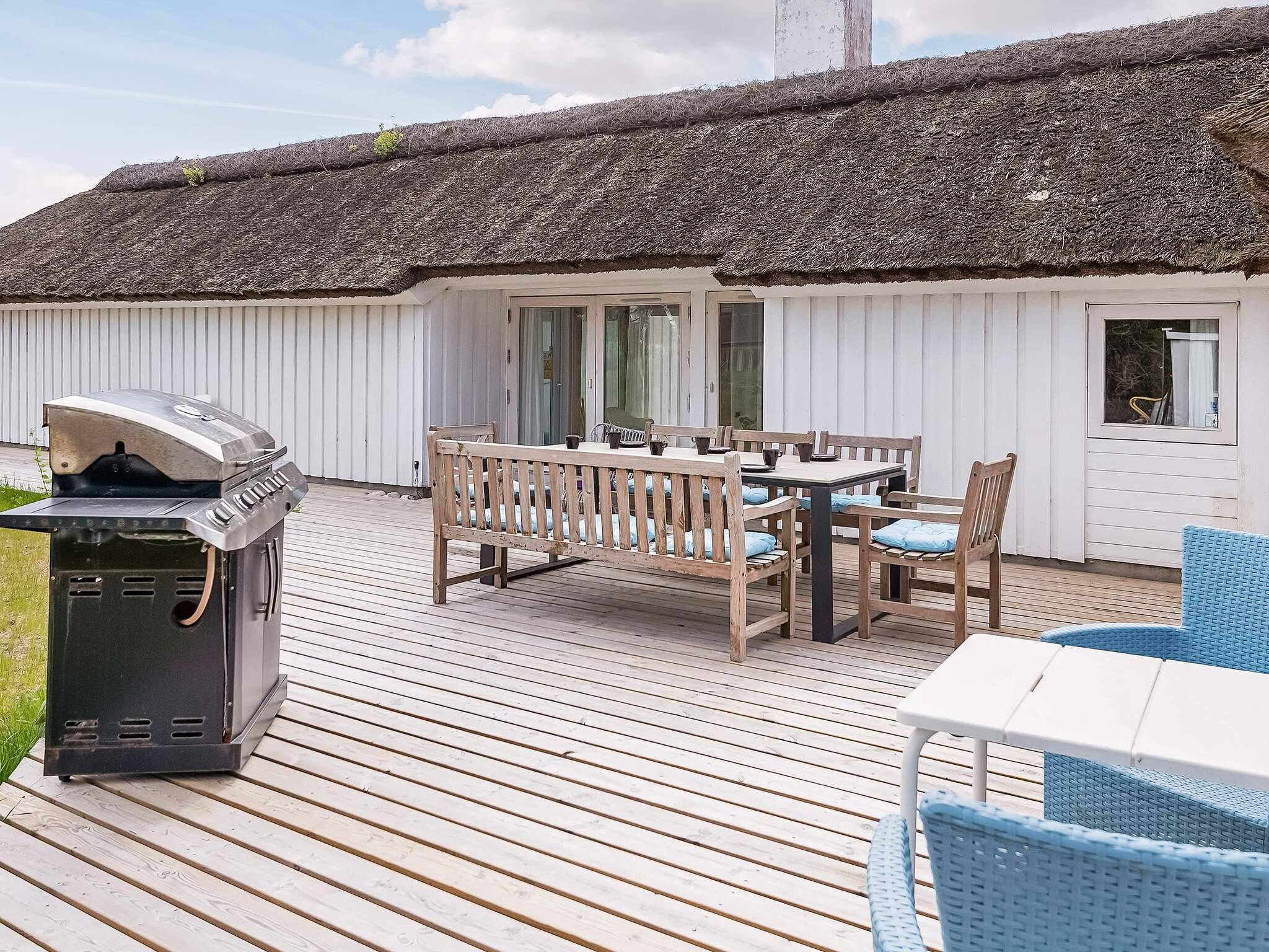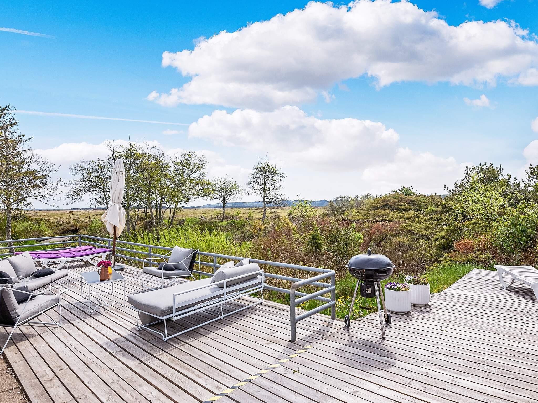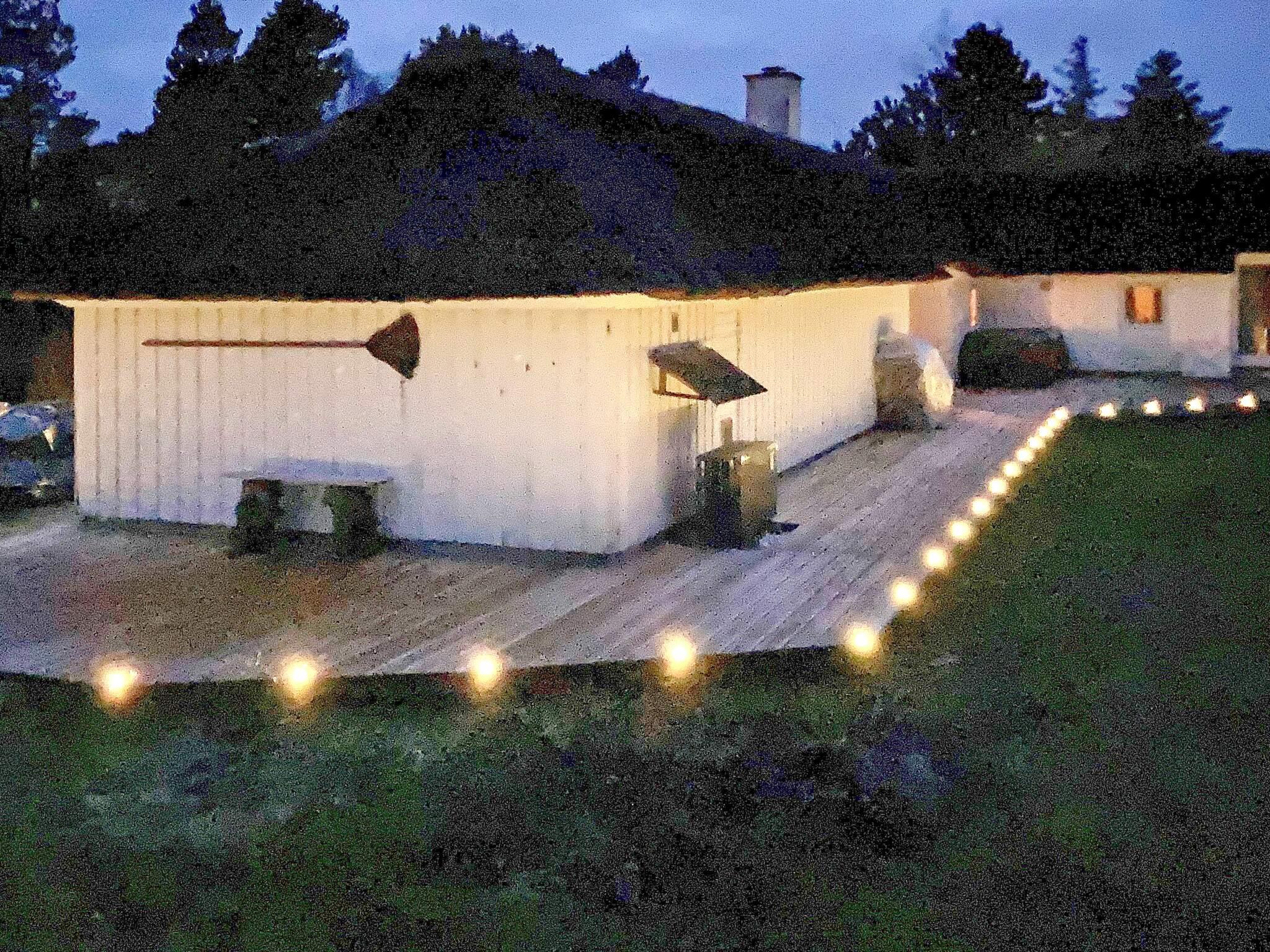 Sommerhuset ligger på en 2000 m² stor naturgrund. Der er 170 m² åben terrasse med masser af sol og skygge. Der er loungemøbler på terrassen. Der er også en kul- og gasgrill til en hyggelig grillaften. Haven har også en sandkasse til de mindste.