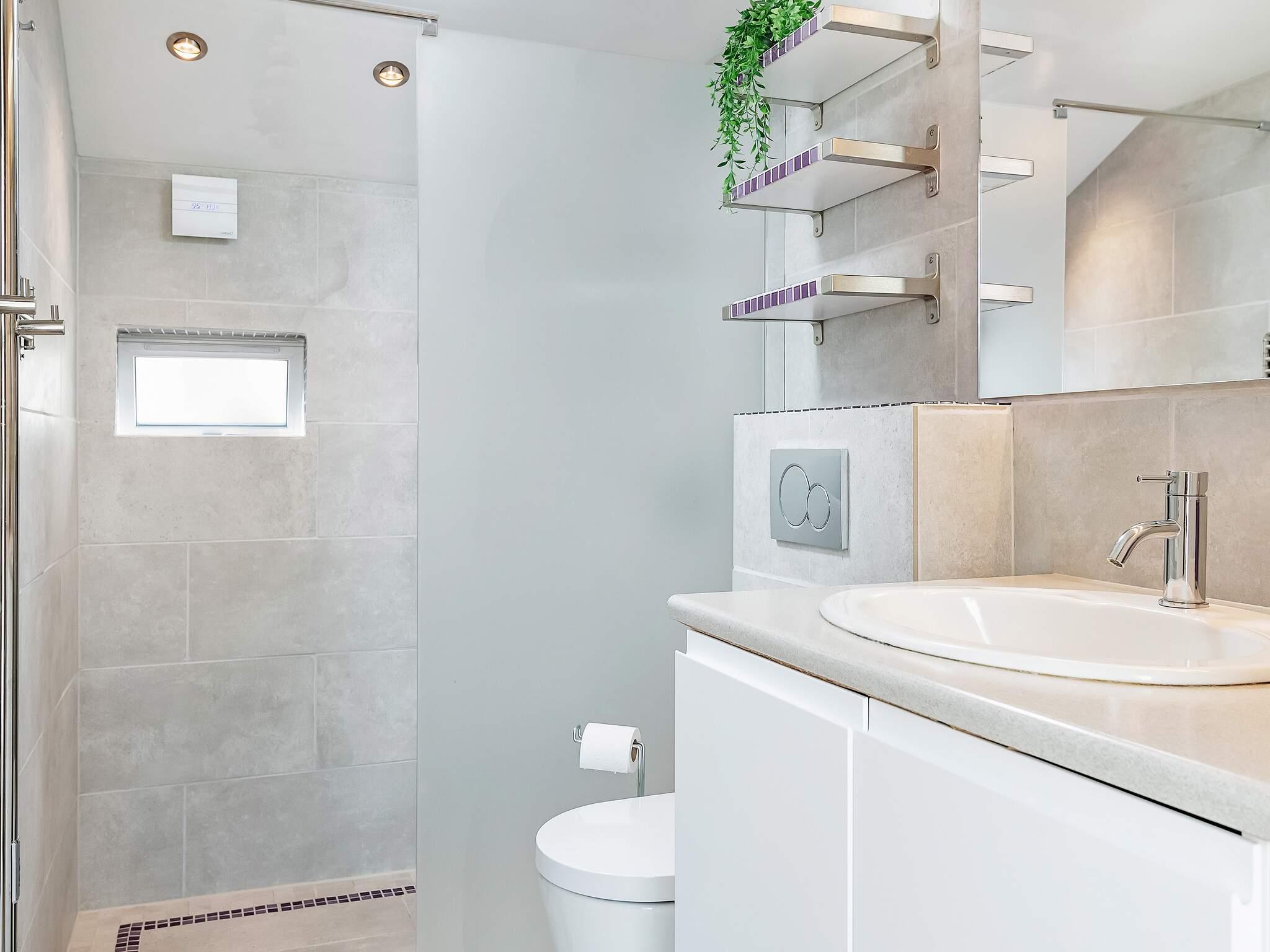 Bad/wc: Wc, håndvask, bruser, gulvvarme