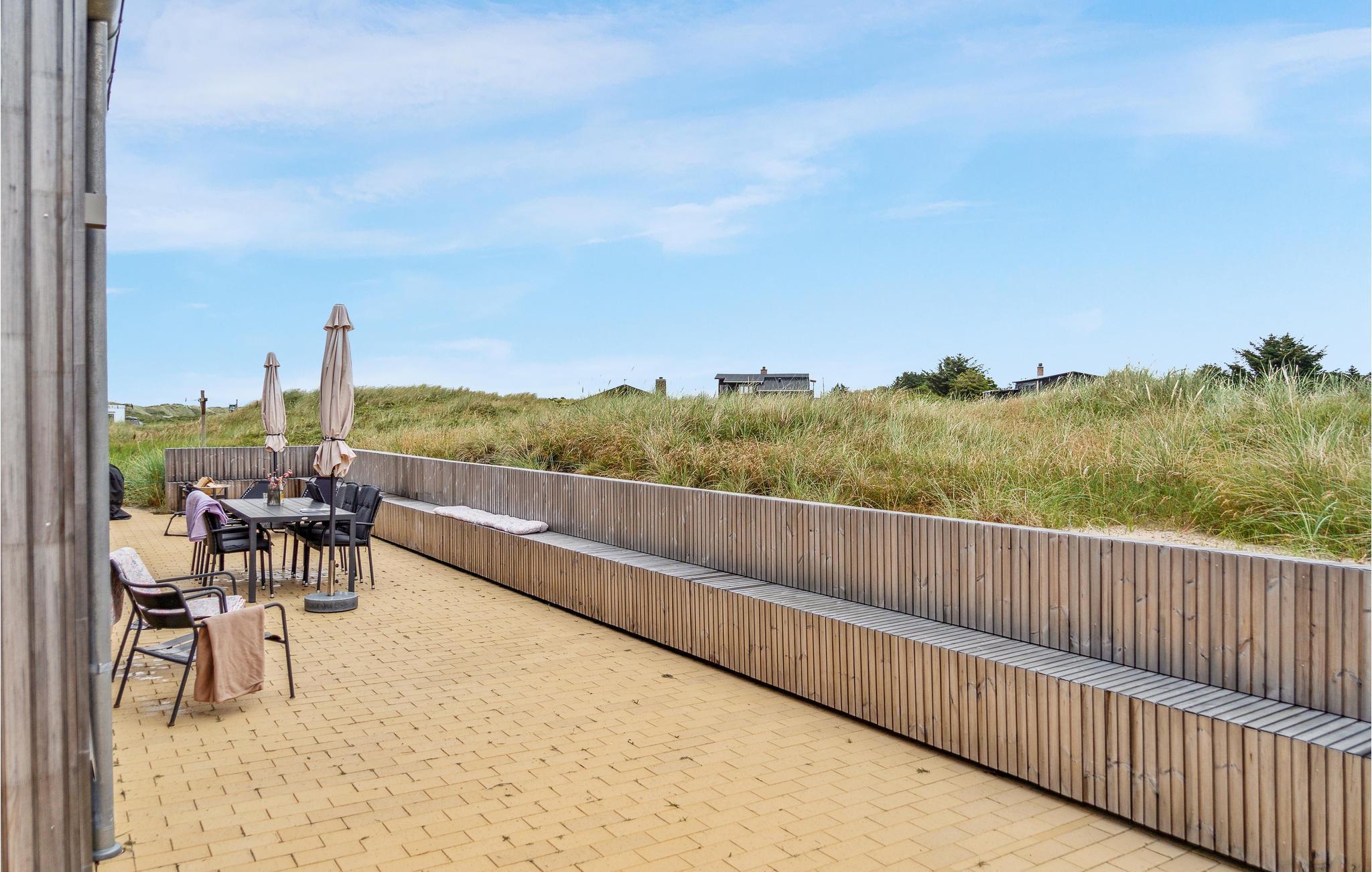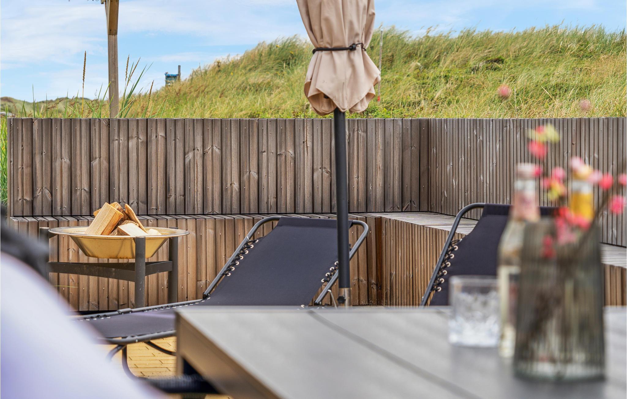 I får en flot ramme om jeres ophold ved Vesterhavet med base i dette hus. Her venter der nemlig en arkitektur, som er helt særlig, og hvor lækre indretningsdetaljer dukker op i hvert nyt rum, I går ind i. Udendørs fortsætter herlighederne, for her bliver I placeret midt i Slette Strands enestående natur. Sæt jer på terrassen og nyd grillmaden med udsigt til de vidunderlige omgivelser eller sæt jer med en god bog, mens I lytter til naturens lyde. Efter nogle timer på stranden er det herligt, at man kan skylle strandsandet af under udendørsbruseren.