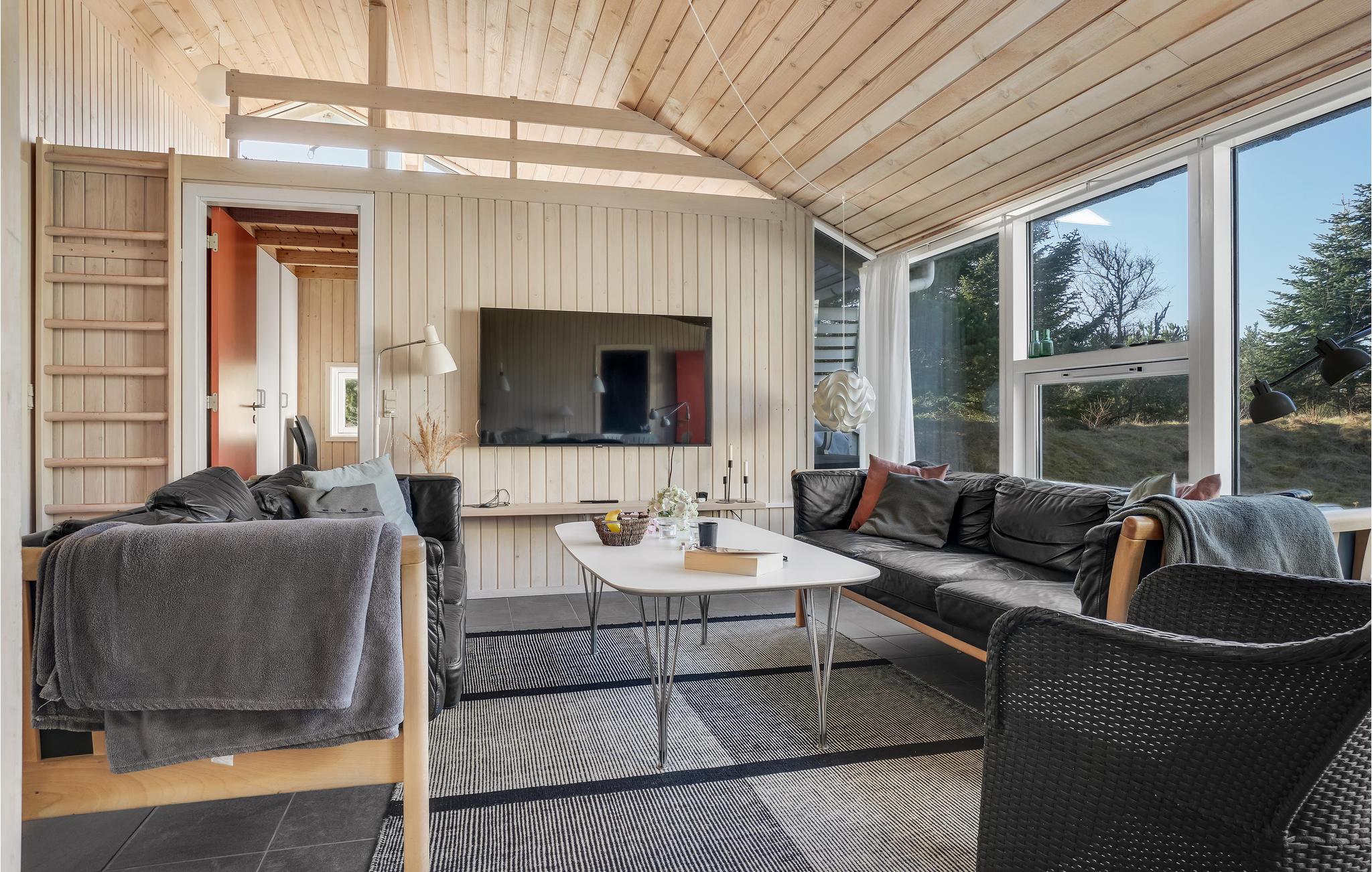 Hyggeligt fritidshus i Slettestrand med pool, sauna og spabad nær Vesterhavets brede, hvide sandstrand.
