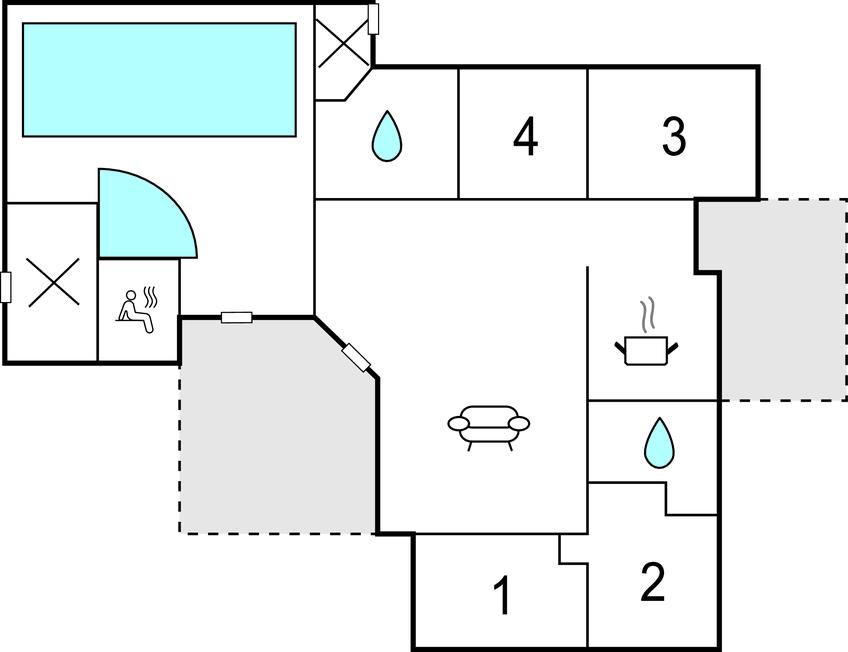 Badeværelse 4m2 (nr. 1) - WC. Varmt og koldt vand. Bruser