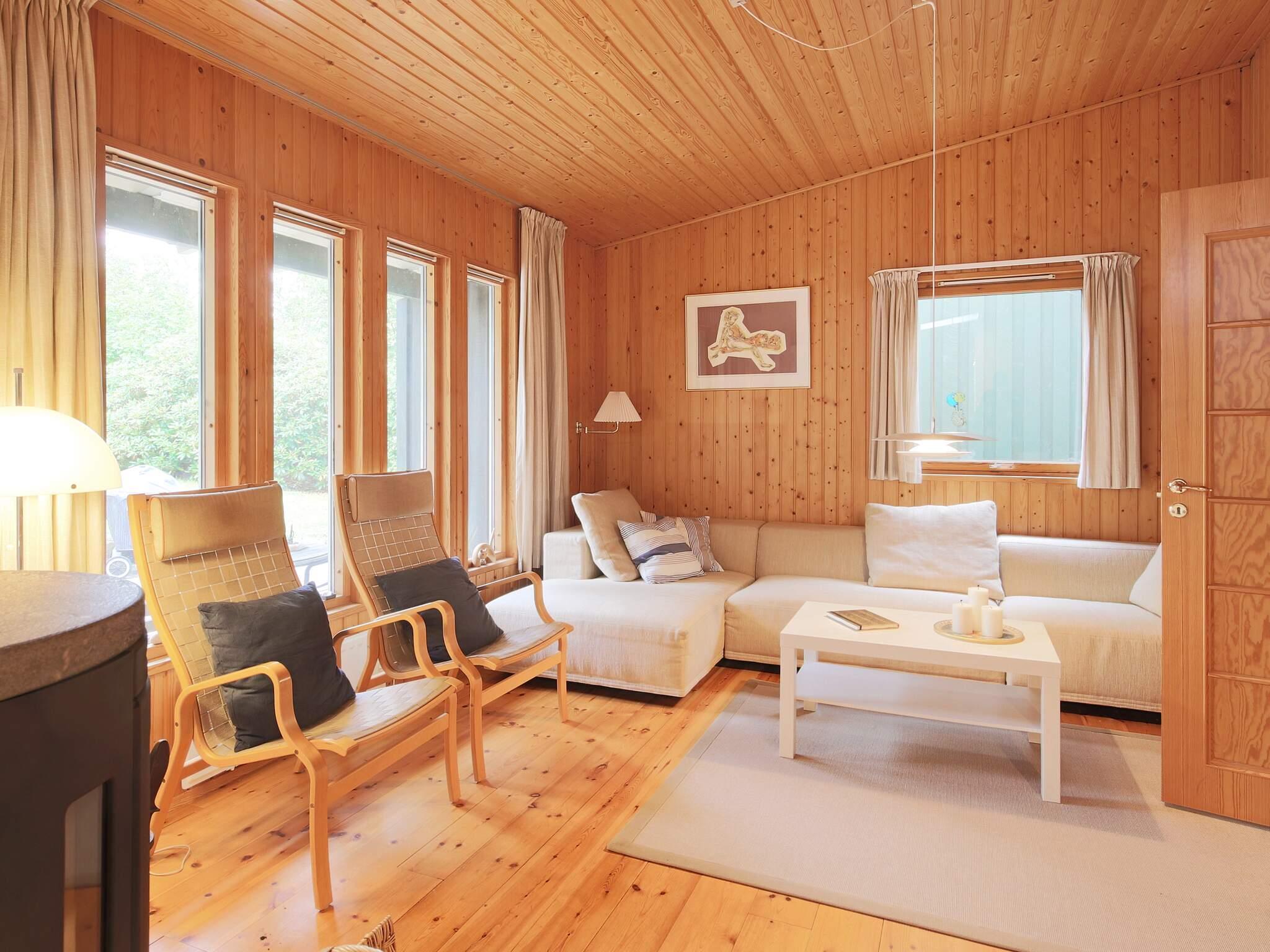 Sommerhus beliggende for enden af lukket vej med direkte adgang til stisystem der bl.a. fører til stranden. Via entreen er der adgang til værelse og husets ene badeværelse. Herfra kommer I ind i køkken/alrum/stue, som er et stort vinkelrum med rigtig god plads. Der er spiseplads og rummeligt køkken med alle faciliteter. Stue med sofaer og tv, hvorfra der er adgang til husets andet værelse. I huset er der 2 dyner, der er 220 cm. Fra køkken/alrum er der en mindre gang til forældreafdelingen, som består af badeværelse og stort lyst soveværelse med direkte adgang til haven. Omkring huset er der flere terrasser og en stor, lukket have. Udlejes ikke til ungdomsgrupper.