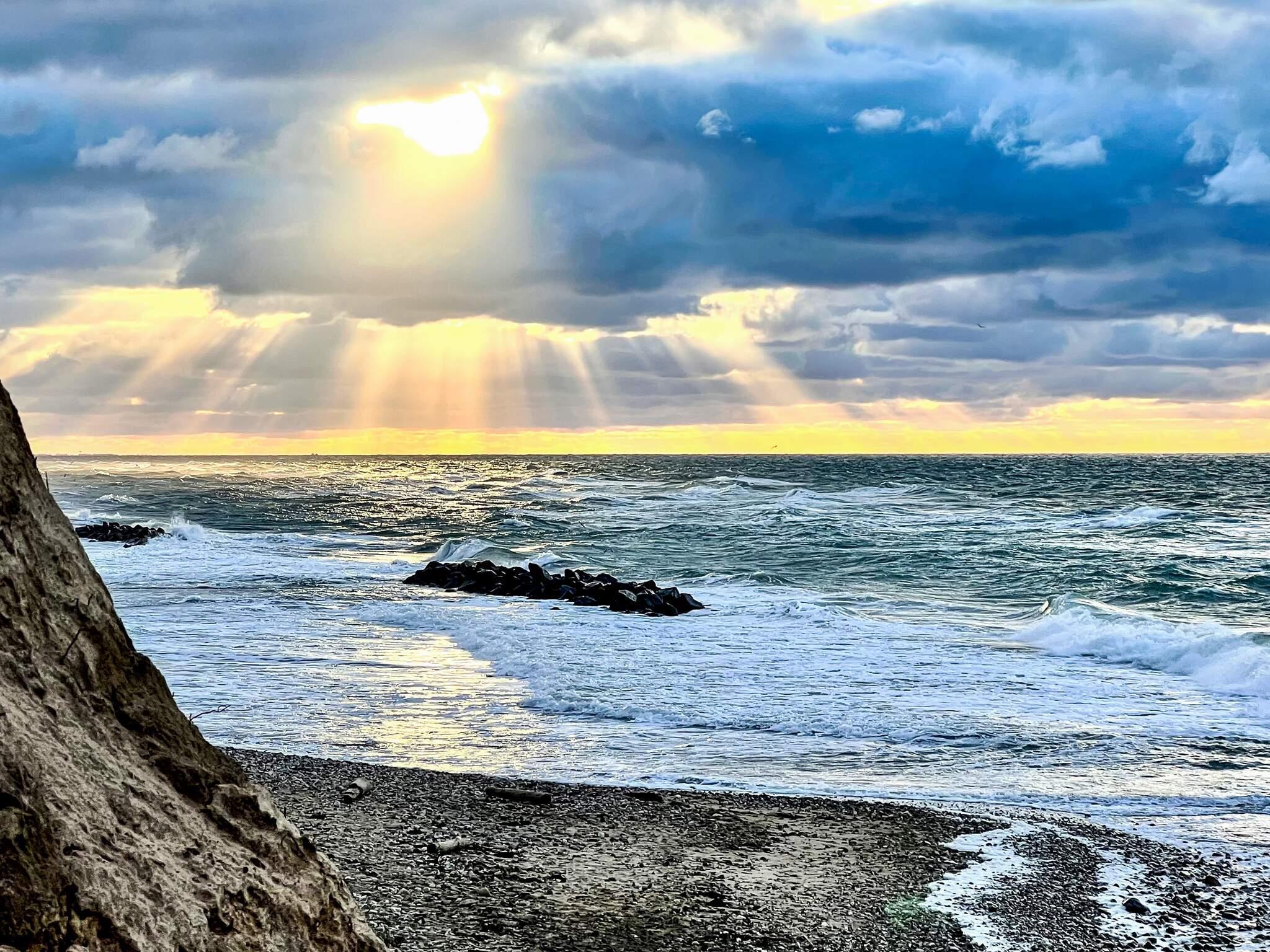 Til feriehuset hører praktisk entré/bryggers med vaskemaskine, tørretumbler og mikroovn. Derfra har du direkte adgang til det åbne køkken/alrum med åbent loft op til tagryggen og panoramavinduer med udsigt over haven.