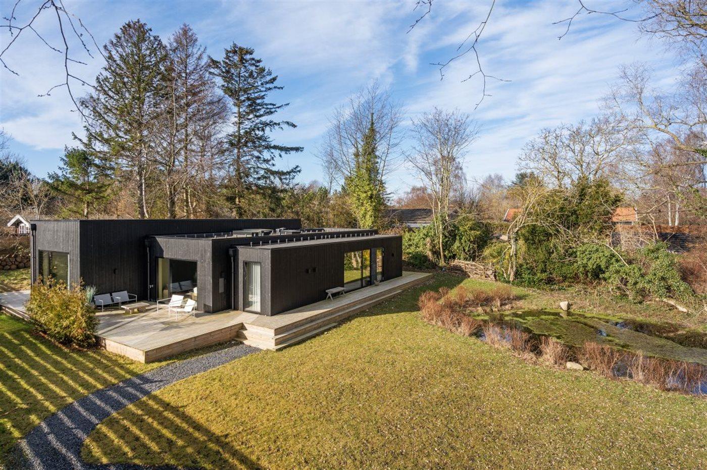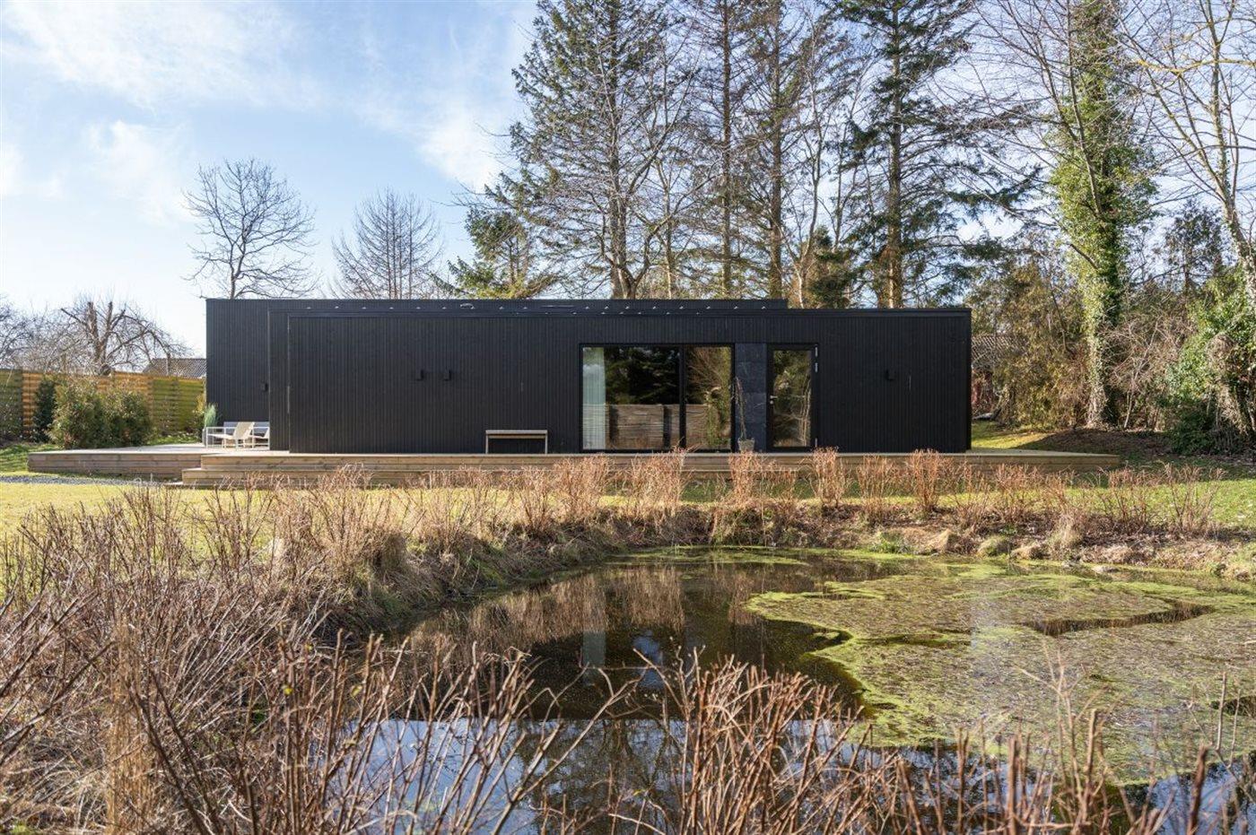 Dette nye sommerhus (2021) er beliggende på en ugenert grund med en lille sø.