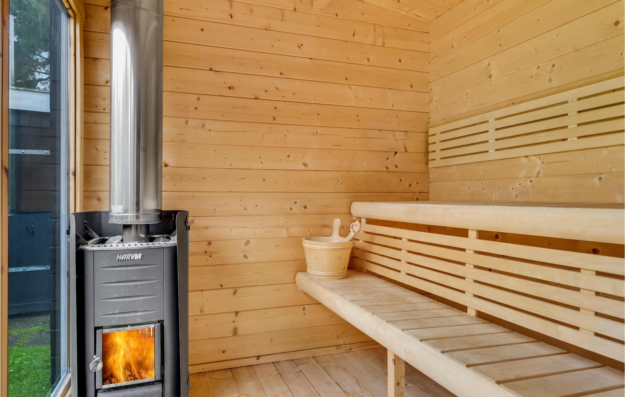 Smukt feriehus med sauna og vildmarksbad, beliggende tæt på den dejlige sandstrand.
