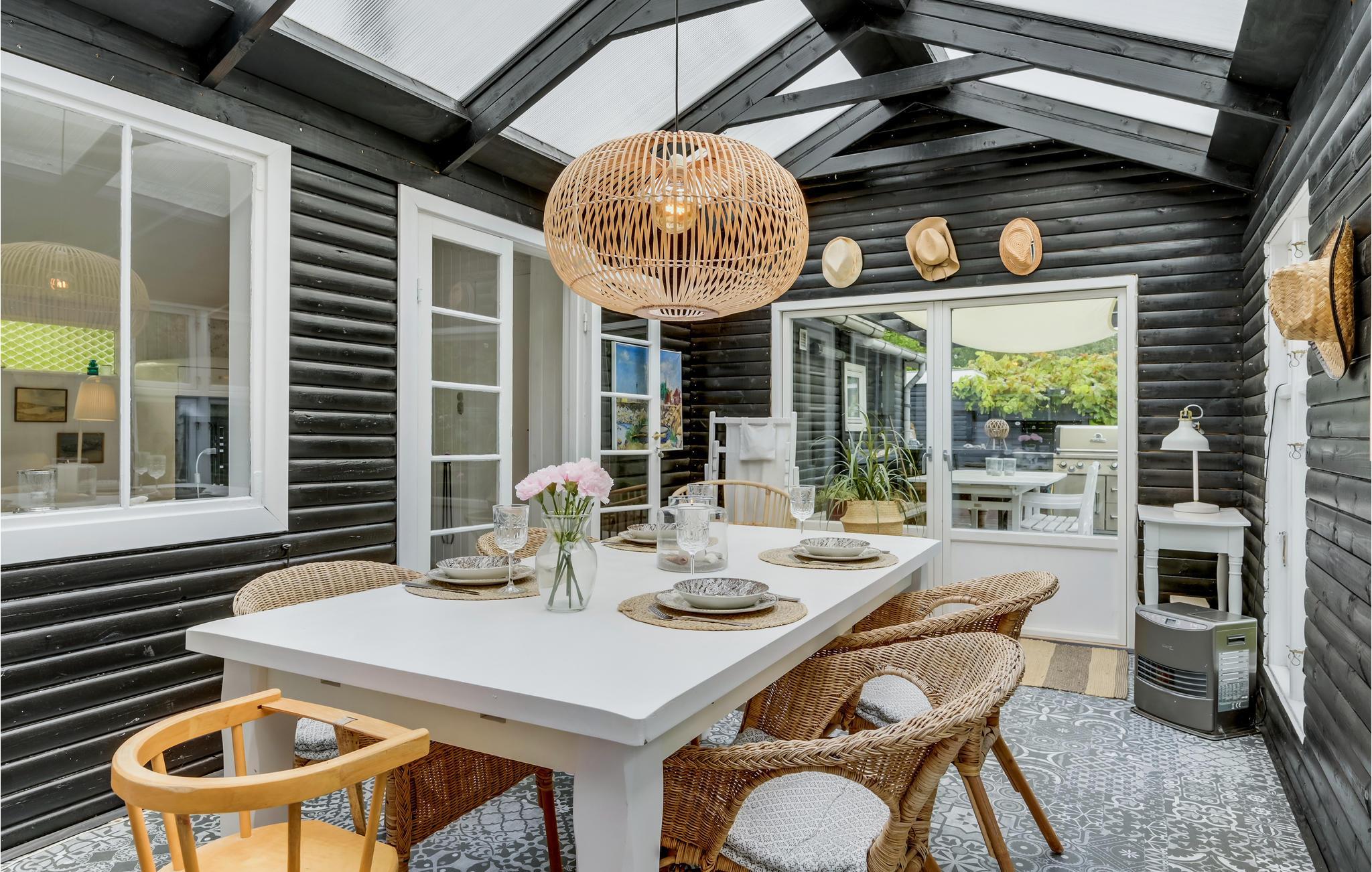 Vest for Gilleleje ligger det charmerende sommerhus Vida, der byder jer velkommen til en afslappende familieferie. Indenfor finder I et lyst, smagfuldt interiør med smukke detaljer i møblerne. Nyd jeres måltider ved den lyse spiseplads eller i udestuen. Om aftenen kan I sætte jer til rette i det hyggelige sofahjørne og spille brætspil.