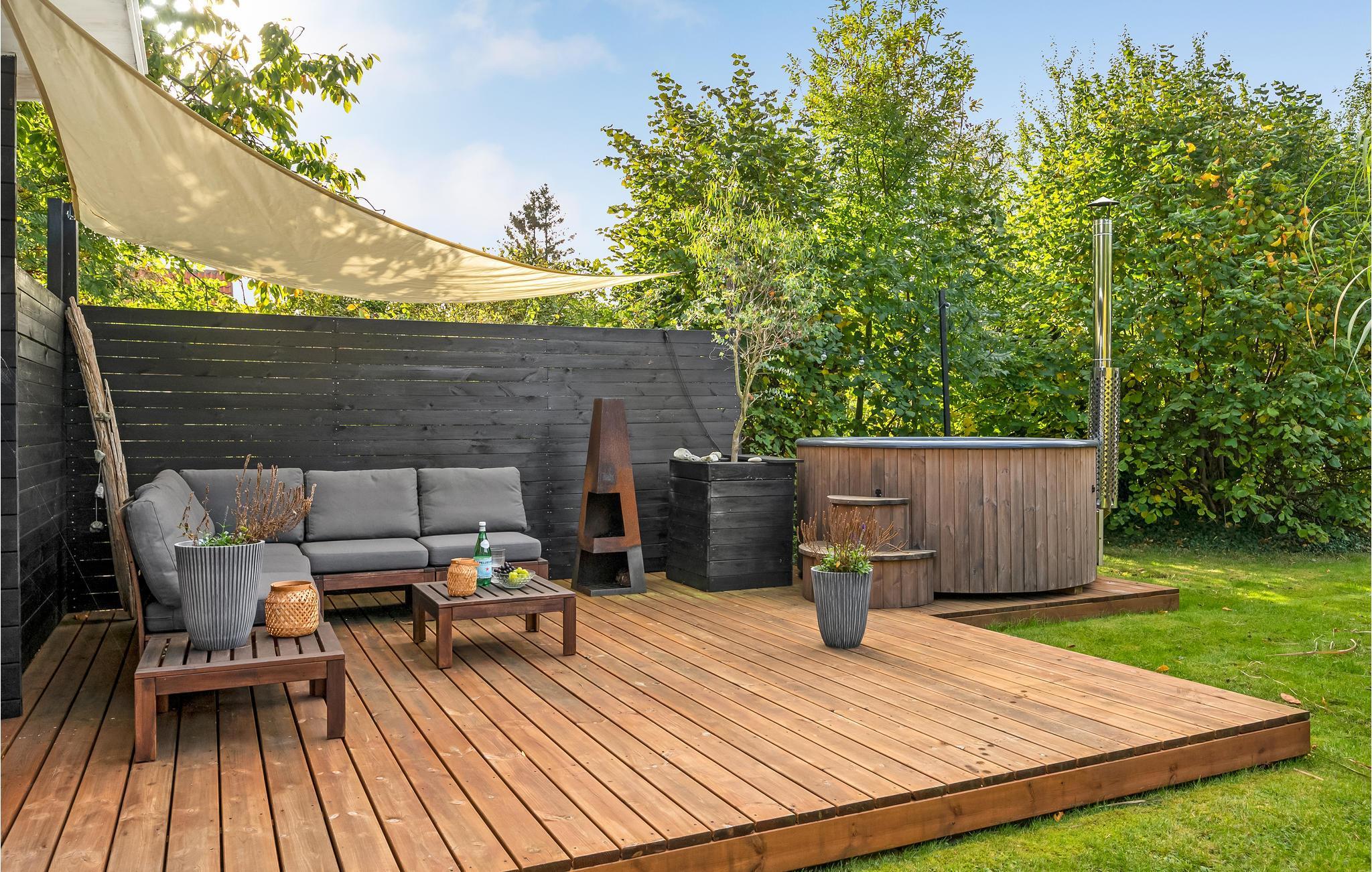 Udenfor vil de små finde masser af plads til at lege og boltre sig på naturgrunden. Når vejret er godt, kan I nyde et lækkert sommermåltid på den overdækkede terrasse eller bage snobrød over bålet med børnene.