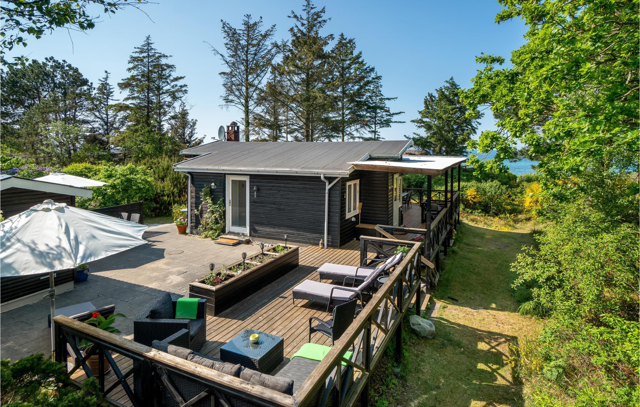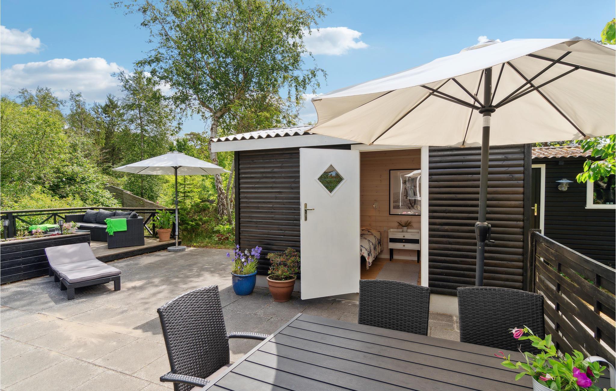 Hyggeligt sommerhus nær Smidstrup Strand med brændeovn, terrasse og havudsigt, perfekt til familieferie i Nordsjælland.