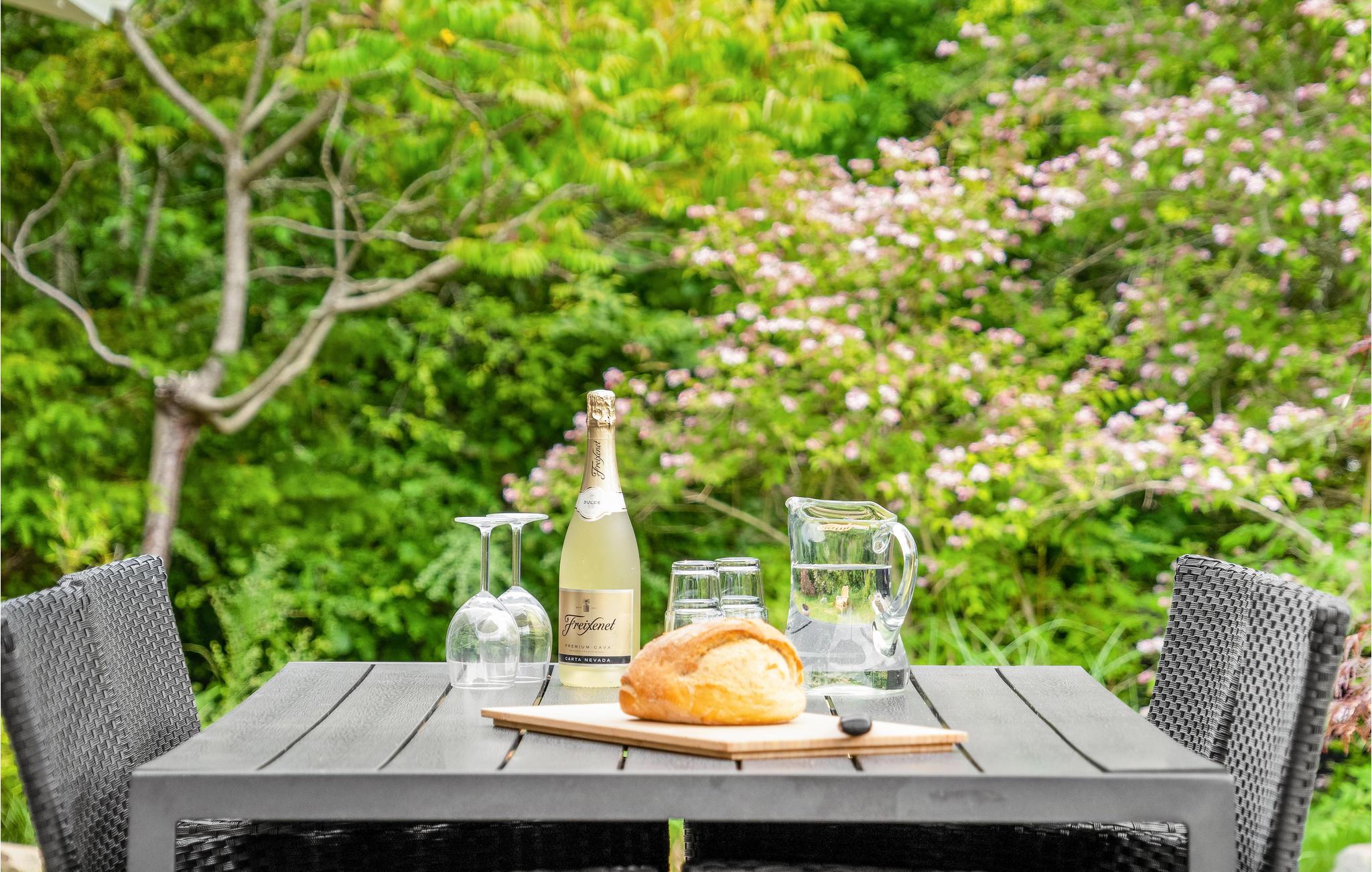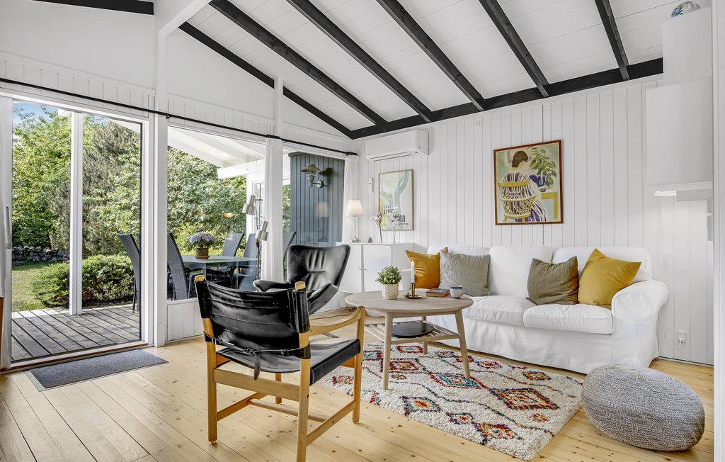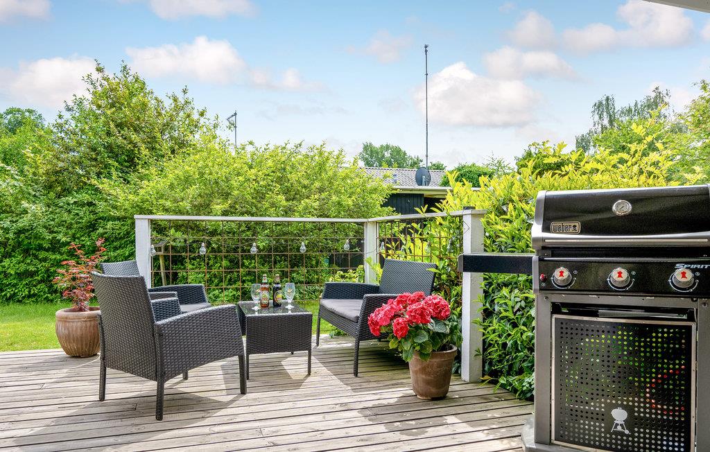 Udenfor kan I sidde idyllisk på den åbne og overdækkede terrasse, måske syder noget lækkert på grillen. Skyl af under den udendørs bruser efter en dag på stranden og tilbring lange sommeraftener omkring lejrbålet.