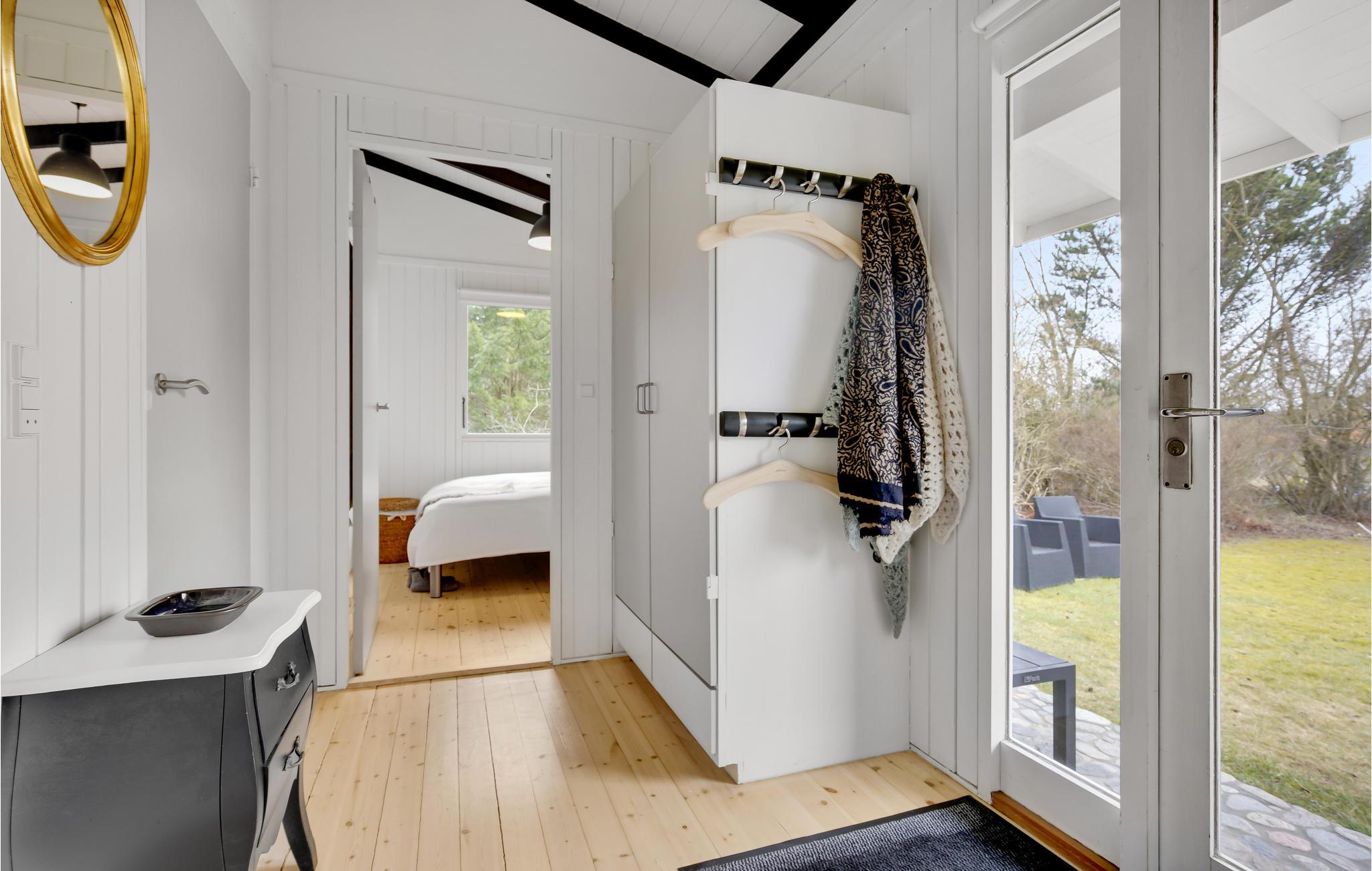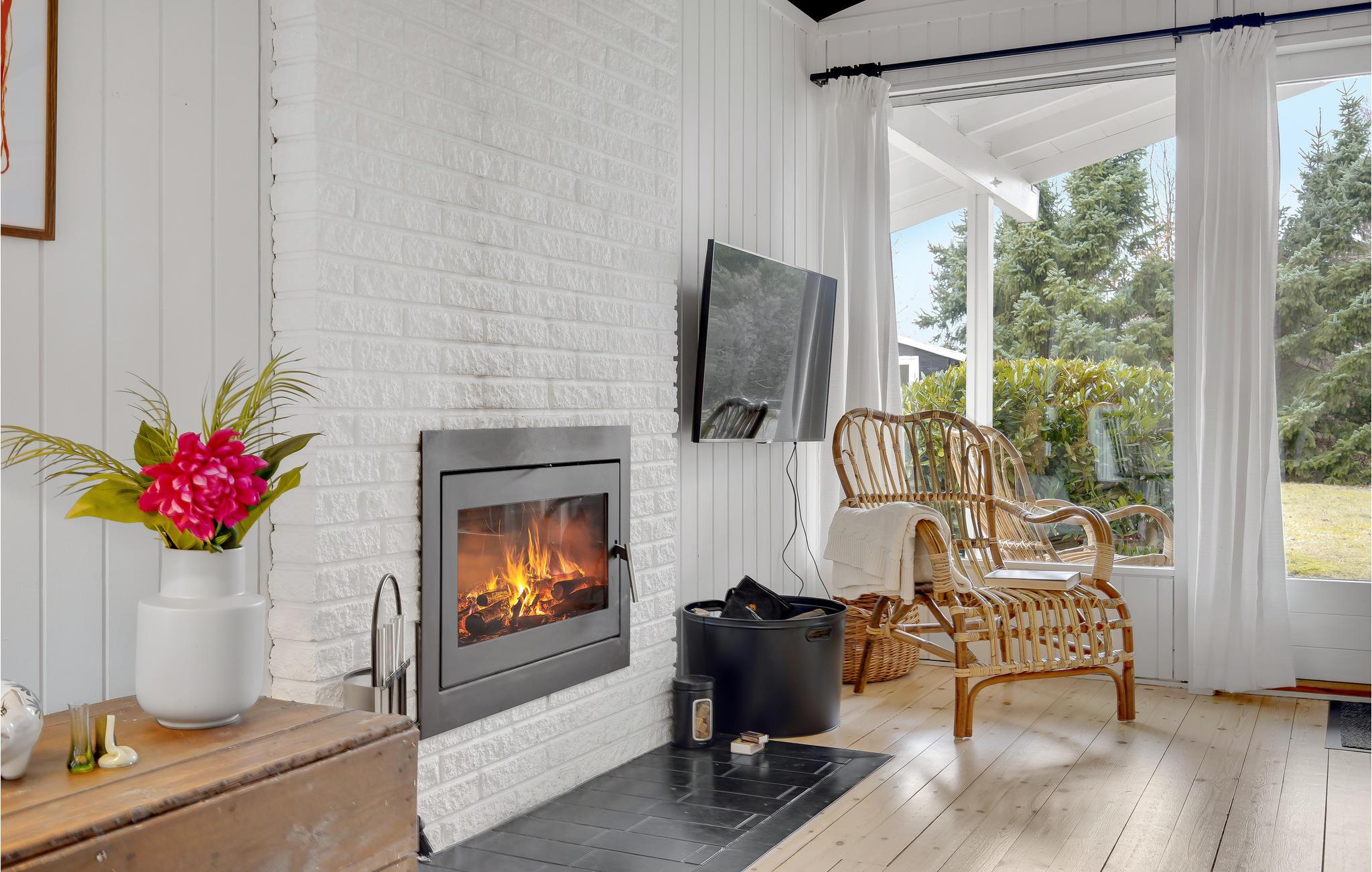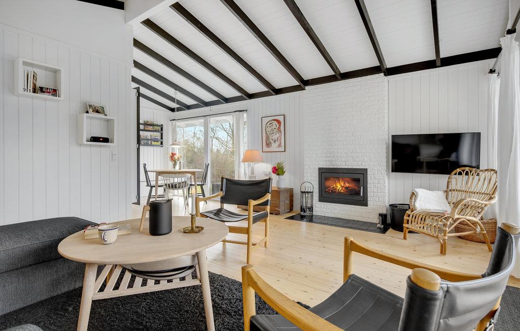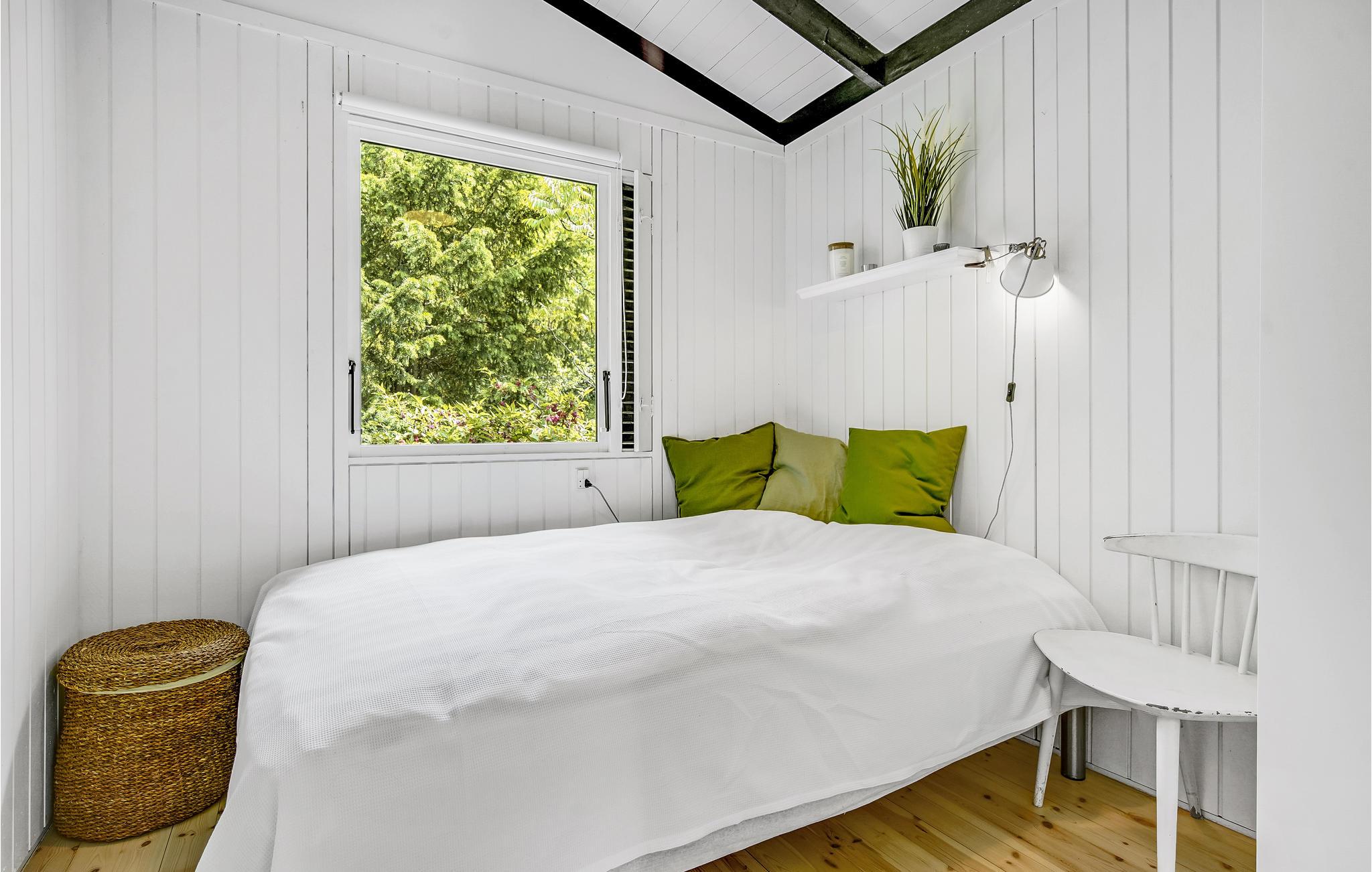 Feriehuset venter sine gæster på en smuk ejendom omgivet af træer og er lyst og indbydende. De 2 soveværelser med dobbeltsenge kan rumme 4 personer. Talrige store vinduer slipper meget lys ind i huset, og i stuen kan I gøre jer komfortabel ved brændeovnen efter en lang gåtur i naturen.