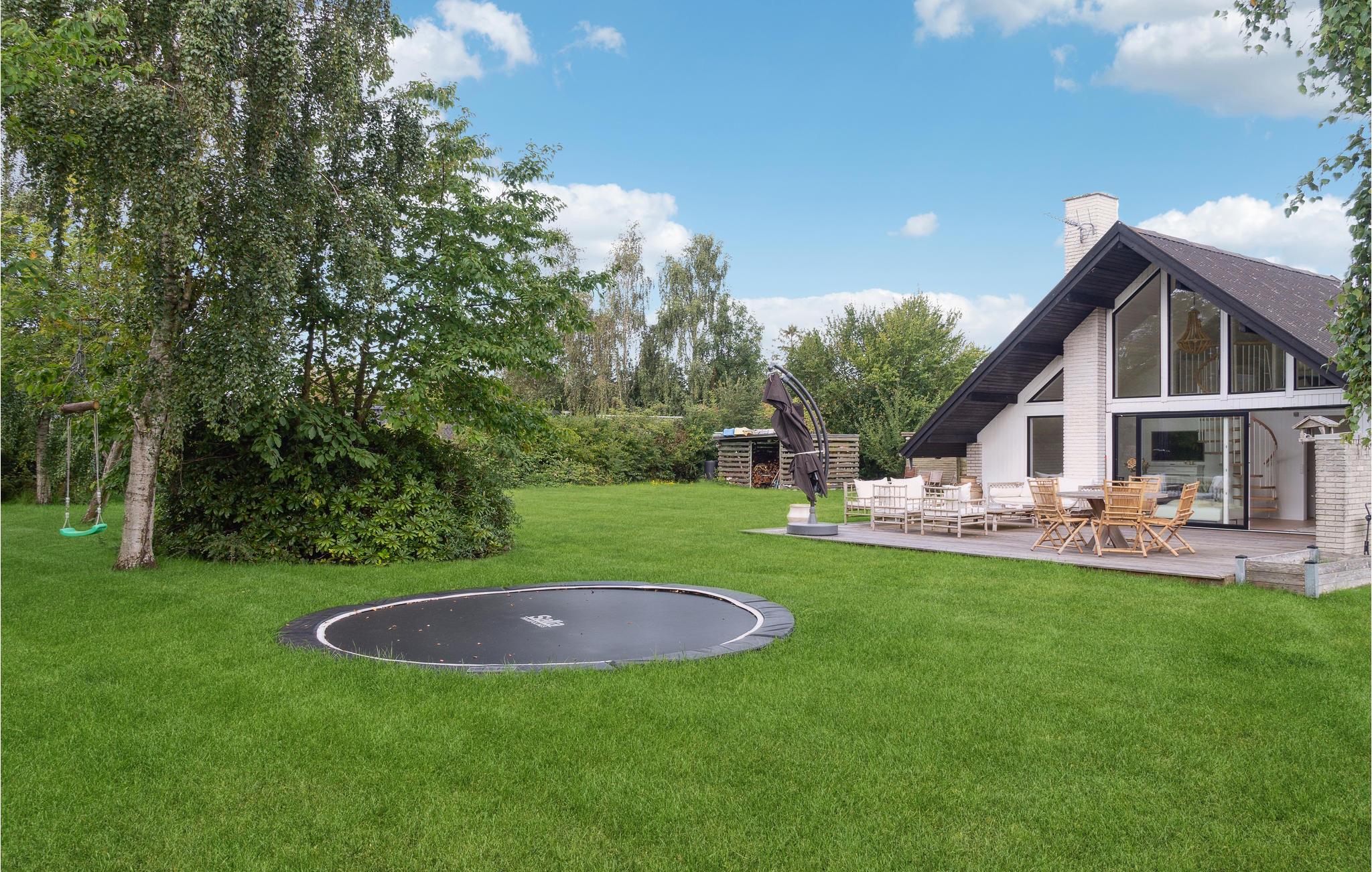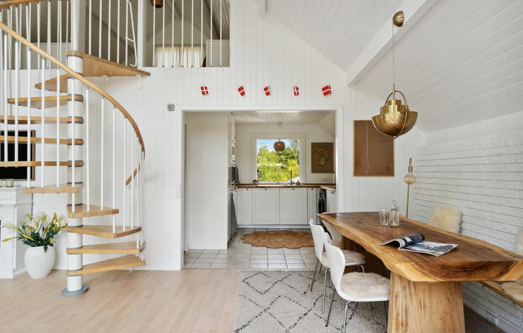 Nyd en vidunderlig ferie i dette feriehus i Smidstrup Strand. Træd ind i det lyst indrettede og særdeles indbydende hus med afstemte møbler, dekorative detaljer og kig ud i naturen gennem gavlens store panoramavinduesparti. Huset er en drøm af hvid og lyst træ og en oplevelse i sig selv. Der er åbent mellem etagerne, hvilket giver huset en unik atmosfære, der er præget af en let sommerfriskhed. I det store åbne opholdsrum vil enhver føle sig godt tilpas, og der er flere skønne hyggekroge. Nyd kølige drinks og solen på terrassen og se jeres børn hoppe på trampolinen.