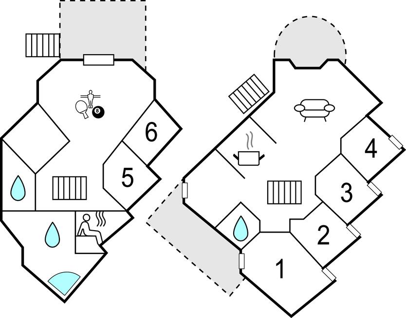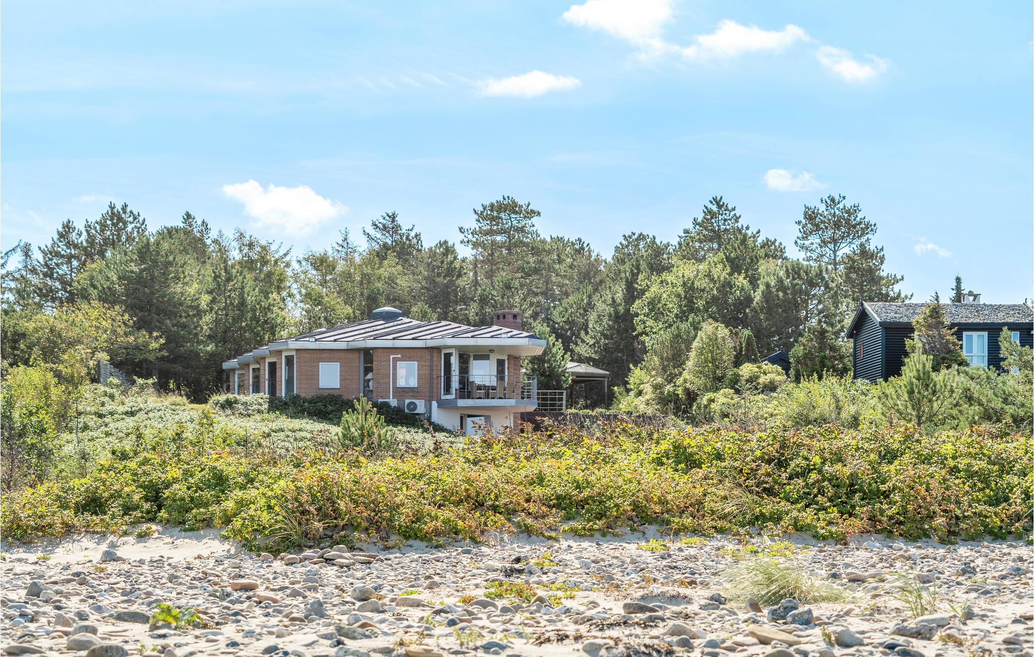 I stuen er der en vinkeltrappe til underetagen. Her finder I et dejligt opholdsrum, hvor der er mulighed for at dyste med familien i spil og billard. Der er to gode badeværelser, hvoraf det ene er med spa, og sauna. Fra saunaen i underetagen kan I løbe direkte ud i havet. Rundt om feriehuset er der flere mulighederfor at sidde og nyde solen eller finde læ for vinden.