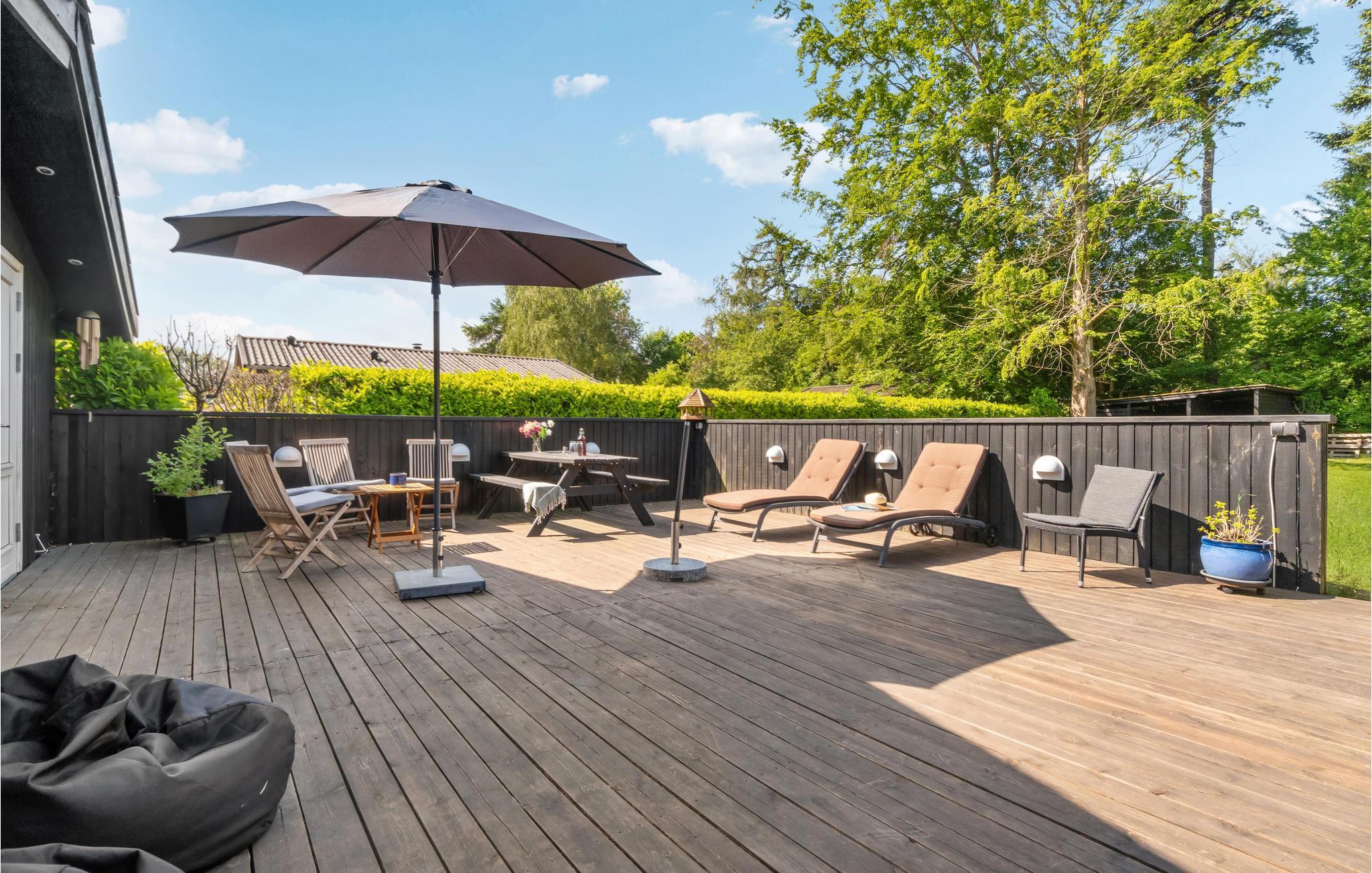 Skønt feriehus nær Smidstrup Strand med stor terrasse, have og kort afstand til havet.