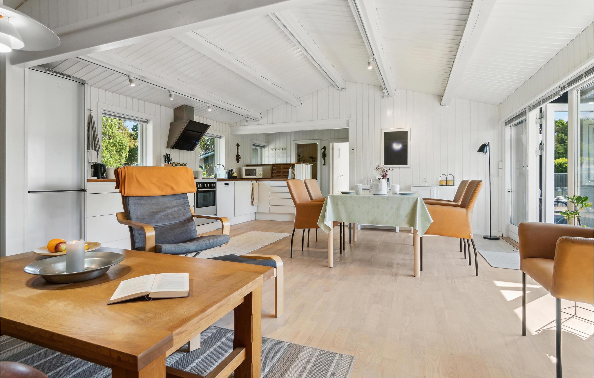 Dette indbydende og børnevenlige feriehus i Smidstrup ligger i gåafstand fra havet og inviterer til strandskæg for hele familien. Lyse værelser, hjemlig indretning og et stort veludstyret køkken skaber de ideelle rammer for en afslappende ferie. Gå fra stress til ro, for her er der plads til en masse aktiviteter og til at gøre ingenting. I sætter tempoet! Nyd udsigten over haven, mens I spiser. På kølige dage kan I tænde op i brændeovnen og spille matador. Huset tilbyder en skøn terrasse og en stor græsplæne, der er helt perfekt til fodbold og meget mere. De små kan gynge eller lege i legehuset, mens I sludrer eller soler jer på terrassen. Hvad med lidt frisk frugt under parasollen? Om aftenen kan I nyde lækkerier fra kuglegrillen.