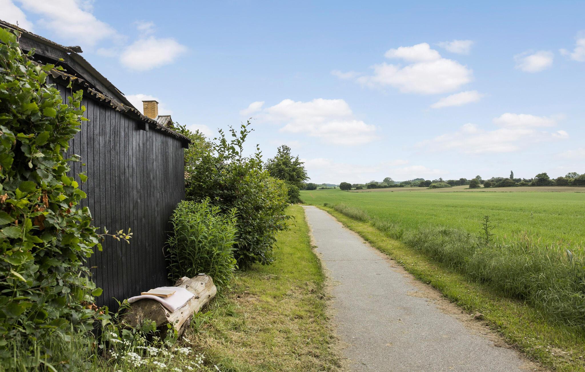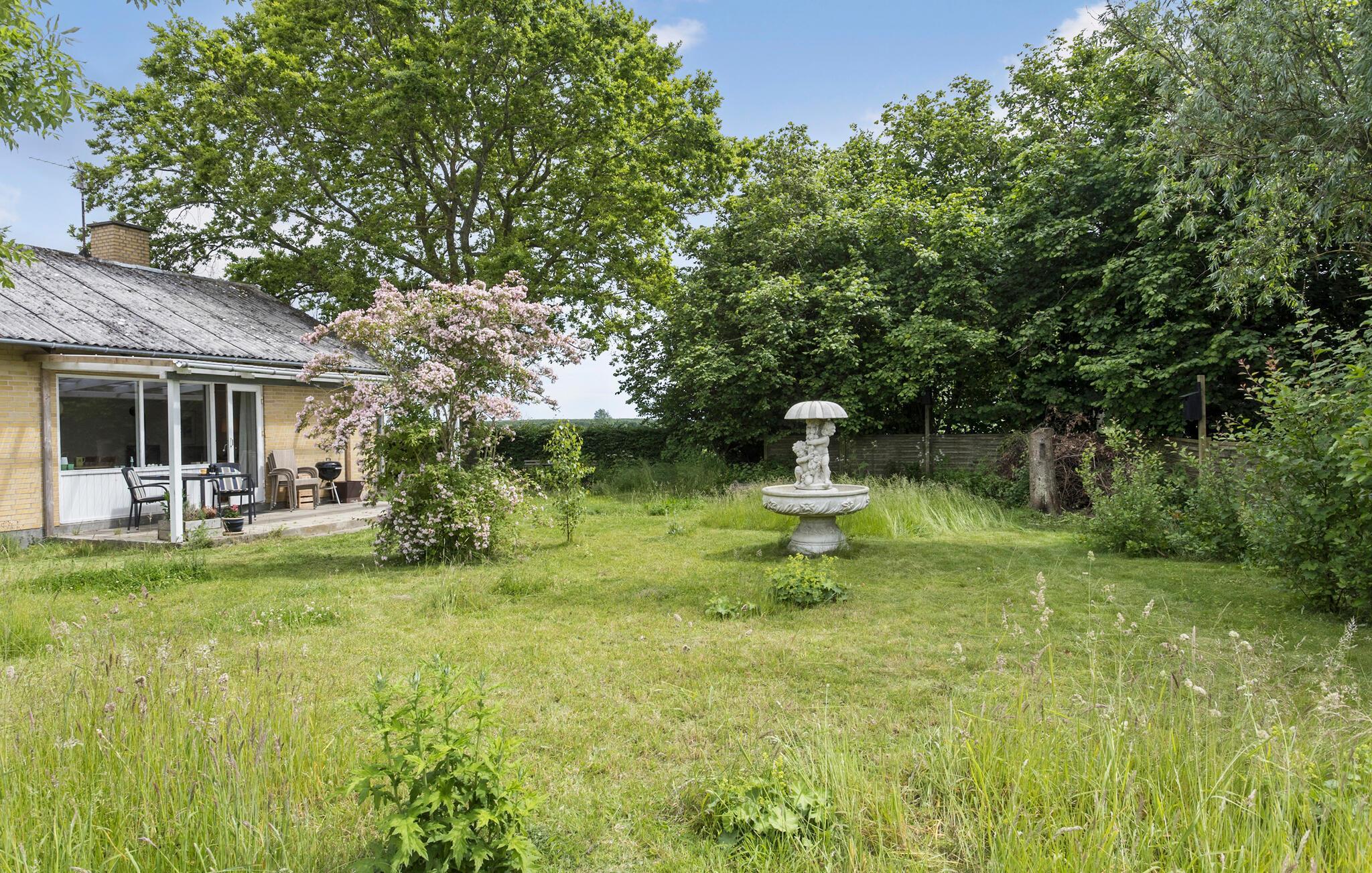 Fra stuen kan I træde ud på den overdækkede terrasse, hvor I kan nyde jeres måltider. Den naturlige grønne have er oplagt til både leg, afslapning og observering af det rige dyreliv.