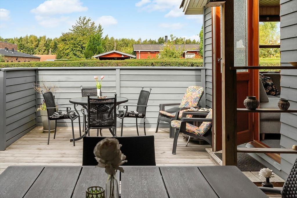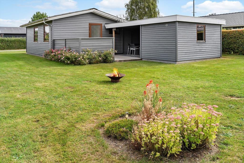 Terrassen er hjertet af udelivet ved dette sommerhus, og den emmer af dansk sommer og ferieglæde. Her kan I lade jer fortrylle af duften af grillet mad og dele dagens oplevelser med jeres nærmeste, mens I nyder haven. Det er næsten umuligt ikke at lade sig rive med af denne dejlige sommerferie atmosfære. Mærk stemningen og nærværet, mens solen langsomt forsvinder, og roen sænker sig omkring jer.