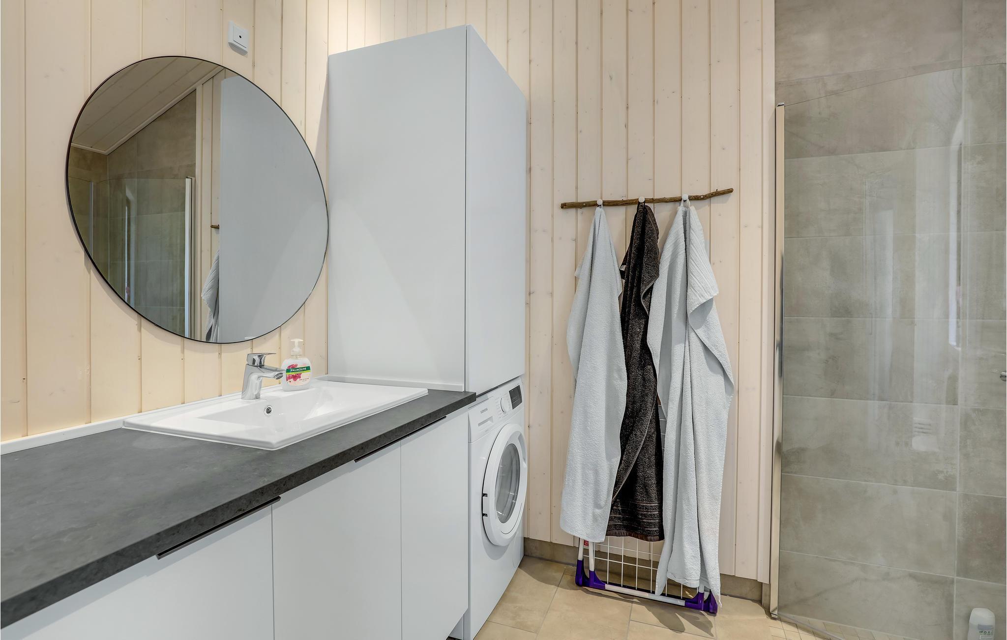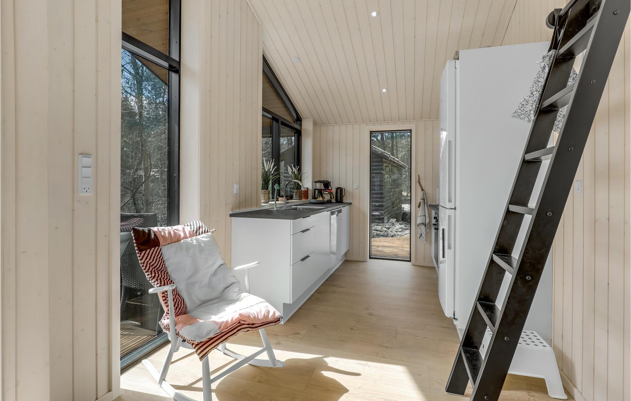 Velkommen til dette førsteklasses feriehus, som er yderst velegnet til en stor familie eller vennegruppe. Huset er meget rummeligt og smagfuldt indrettet. Store vinduespartier giver et skønt lysindfald. Husets hjerte er den store, kombinerede spise- og opholdsstue med spiseplads, komfortable lænestole og Smart-TV. Her finder I også det åbne, veludstyrede køkken. Fra stuen fører en stige op til en hyggelig hems med to sovepladser, som vil være særligt attraktiv for børn.