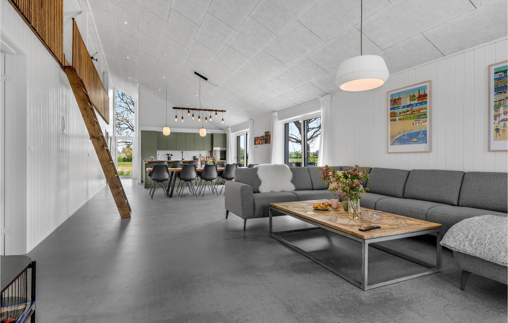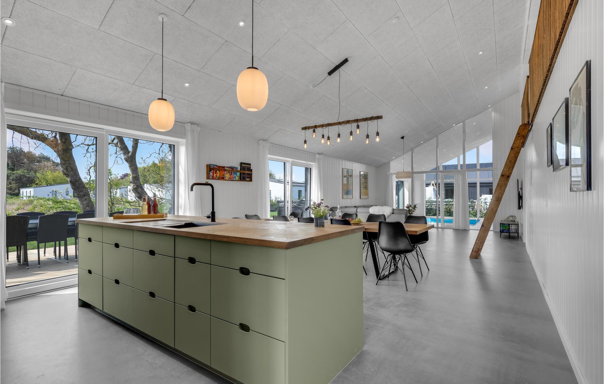 Uanset årstid kan I godt se frem til en forrygende familieferie på Bornholm, hvor dette tjekkede hus bliver jeres base. Tag på den store tur med familien eller vennerne og glæd jer over alle husets lækre faciliteter. Indretningen er enkel, moderne og elegant med højt til loftet og store vinduespartier, der sørger for et behageligt lysindfald. Der er tænkt på alt i huset - også alle hyggestunderne. I kan holde øje med børnene, mens de boltrer sig i indendørspoolen og samtidig læne jer tilbage med en kop kaffe i stuen, for der er vinduer imellem. Både børn og voksne kan også se frem til et aktivitetsrum, hvor man kan snuppe en dyst i billard og dart, og når I vender hjem efter en rask gåtur eller et friskt dyp, kan I få varmen i havens sauna.