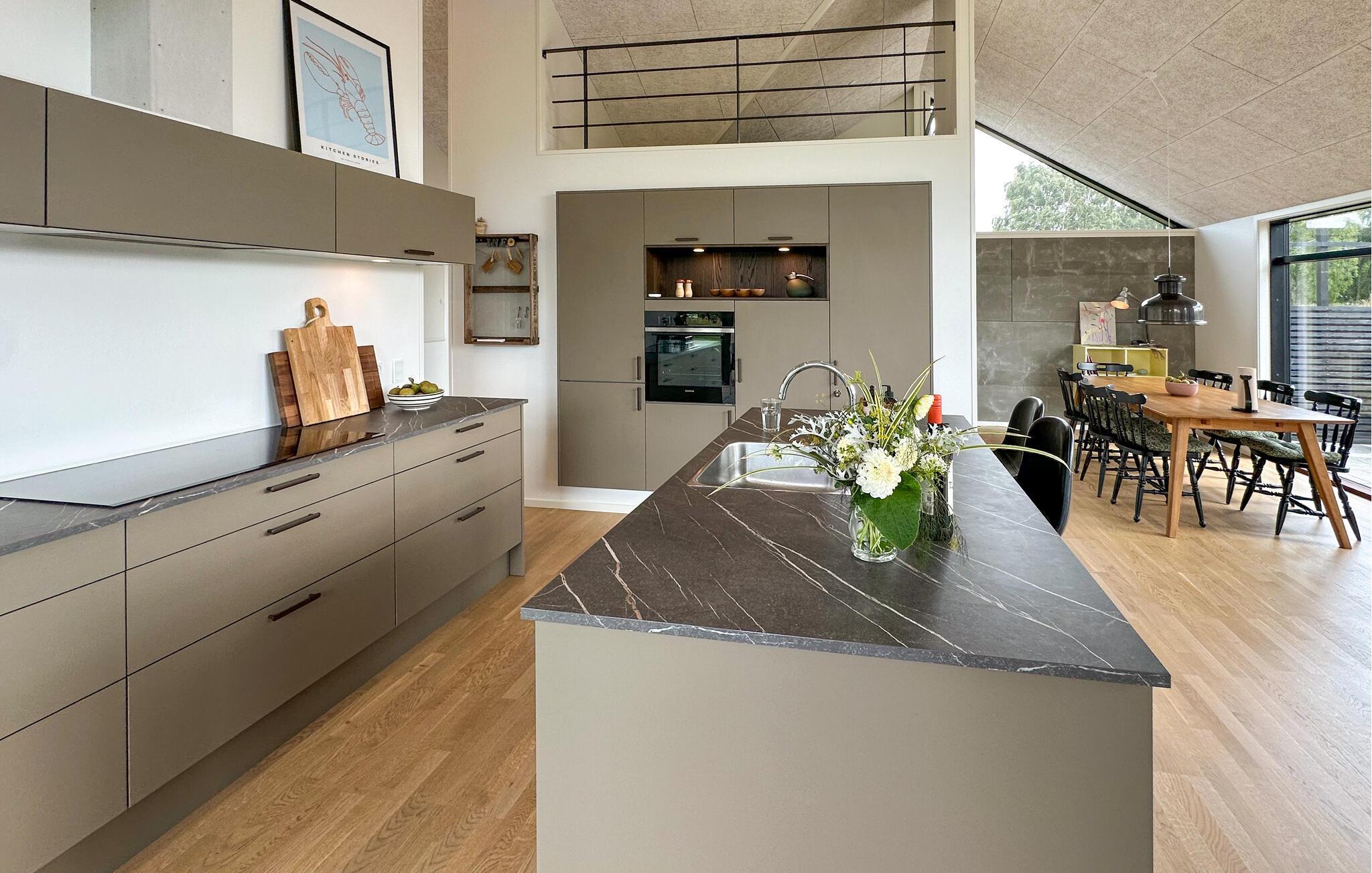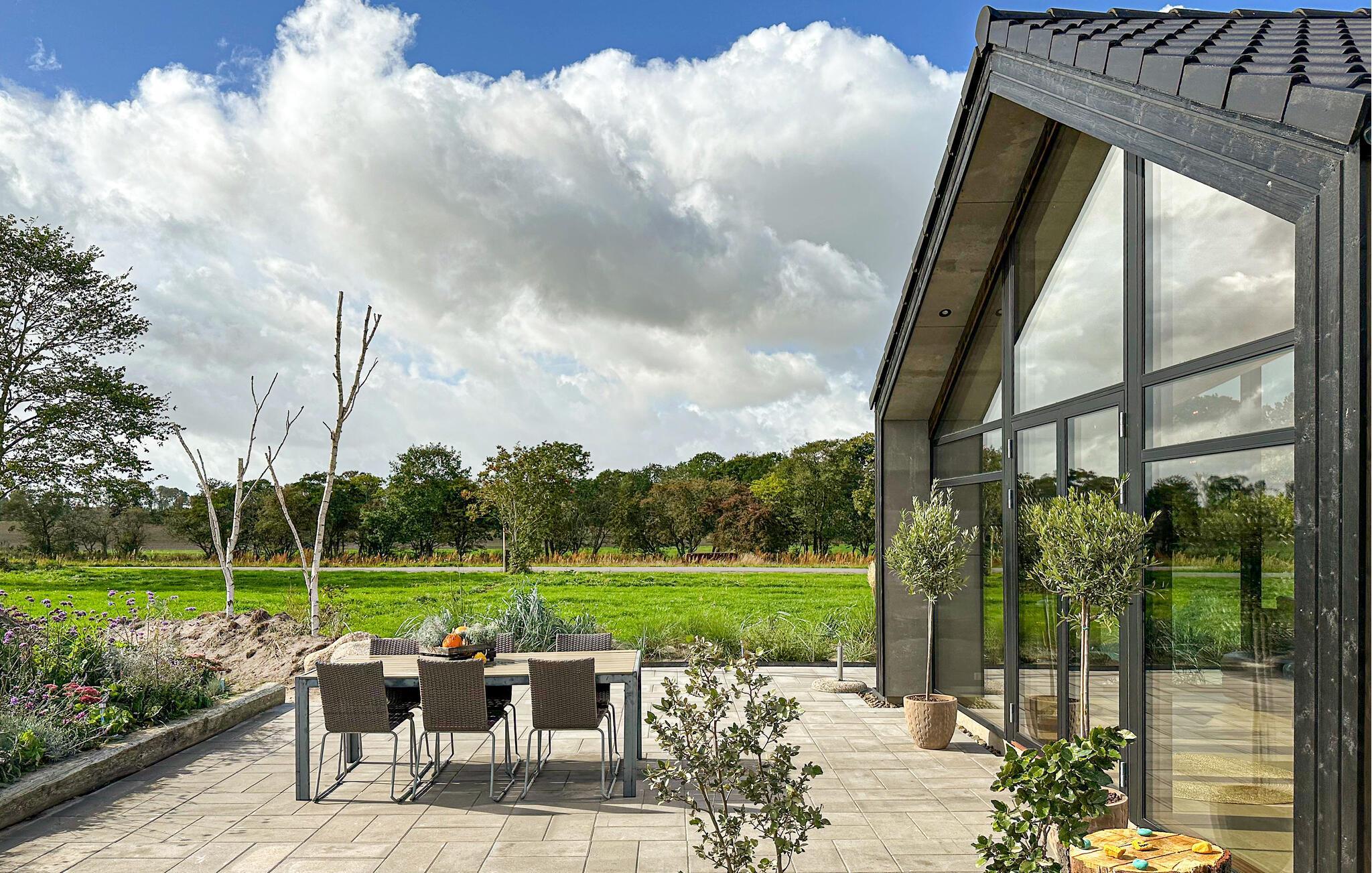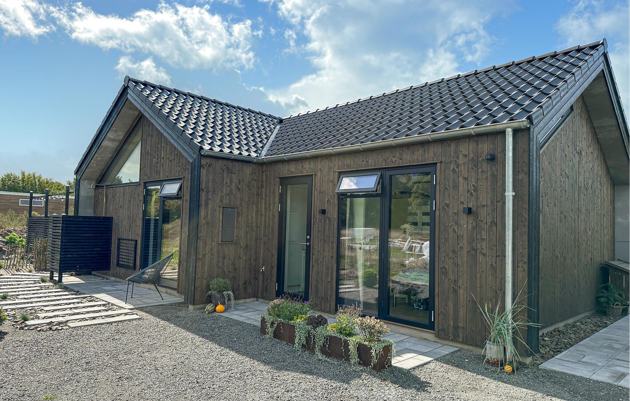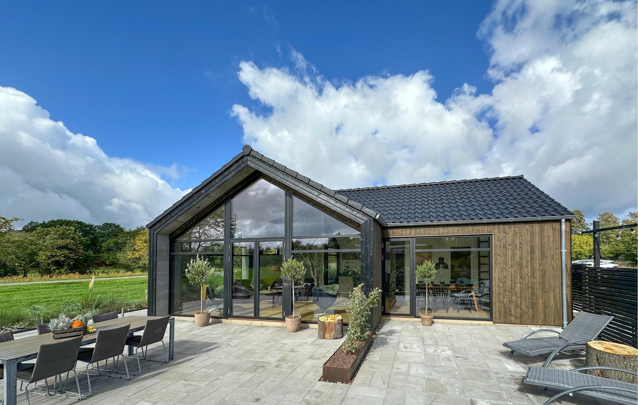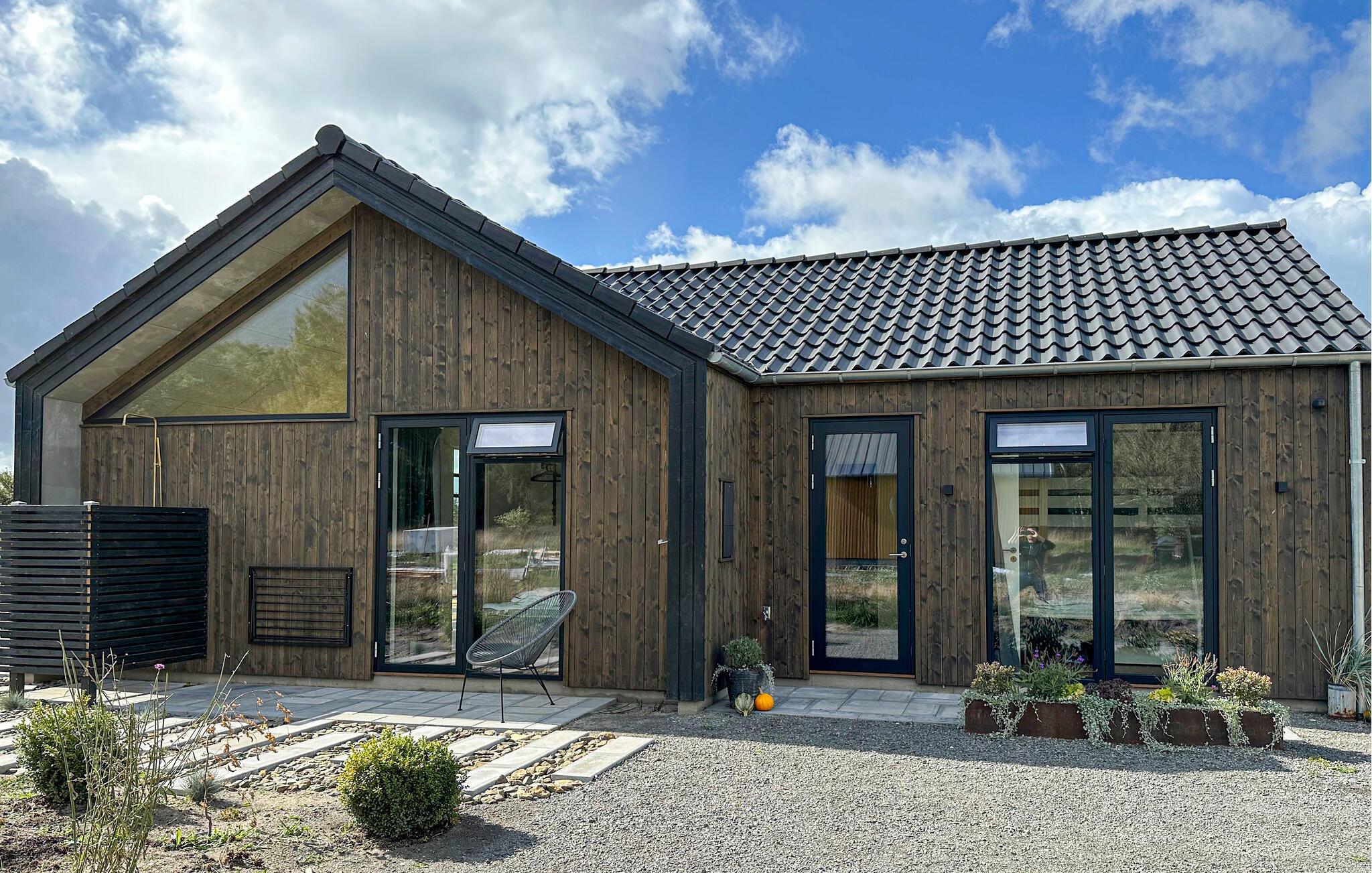 Moderne feriehus i Snogebæk med stor terrasse og nærhed til strand og byliv.