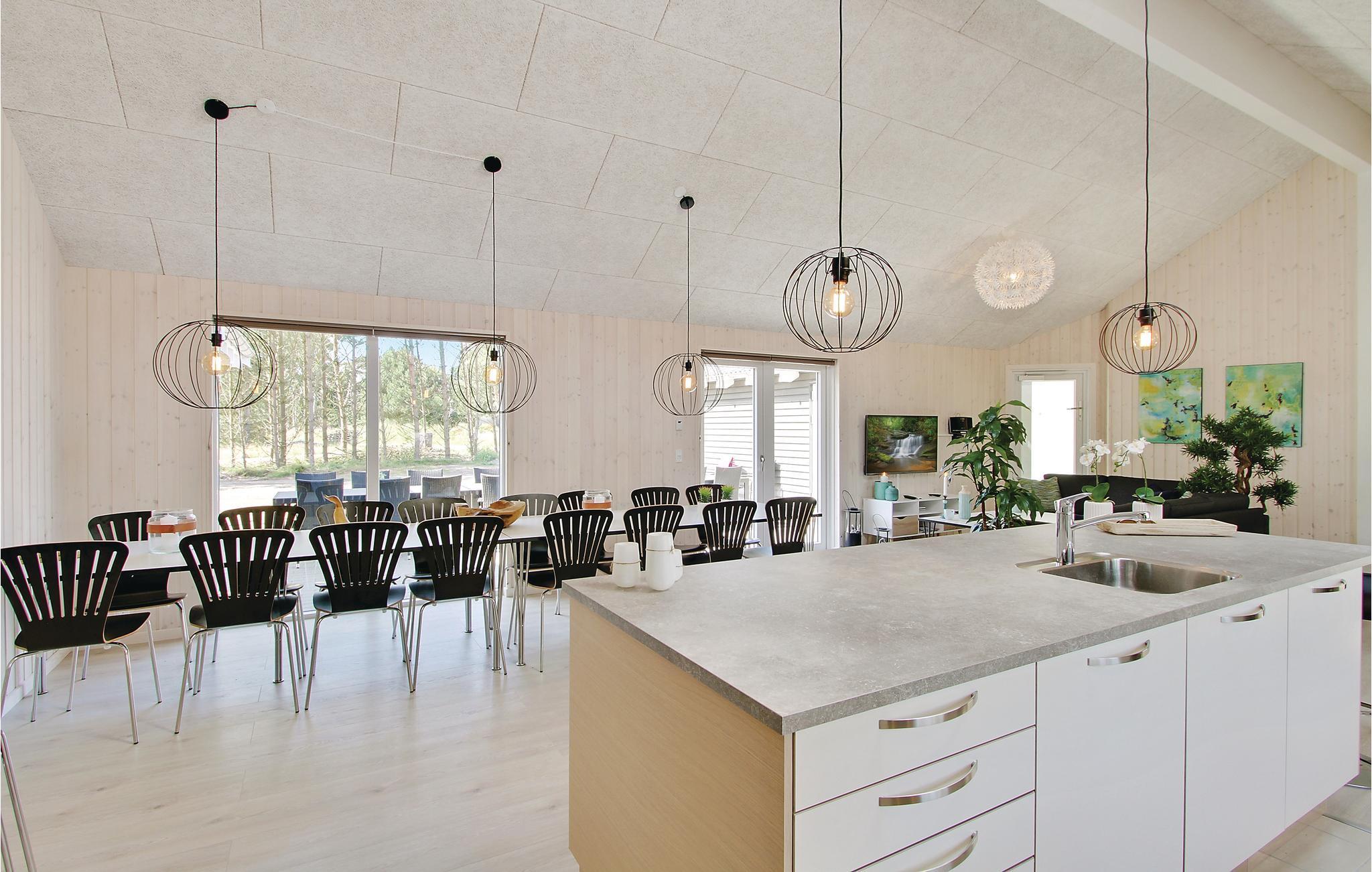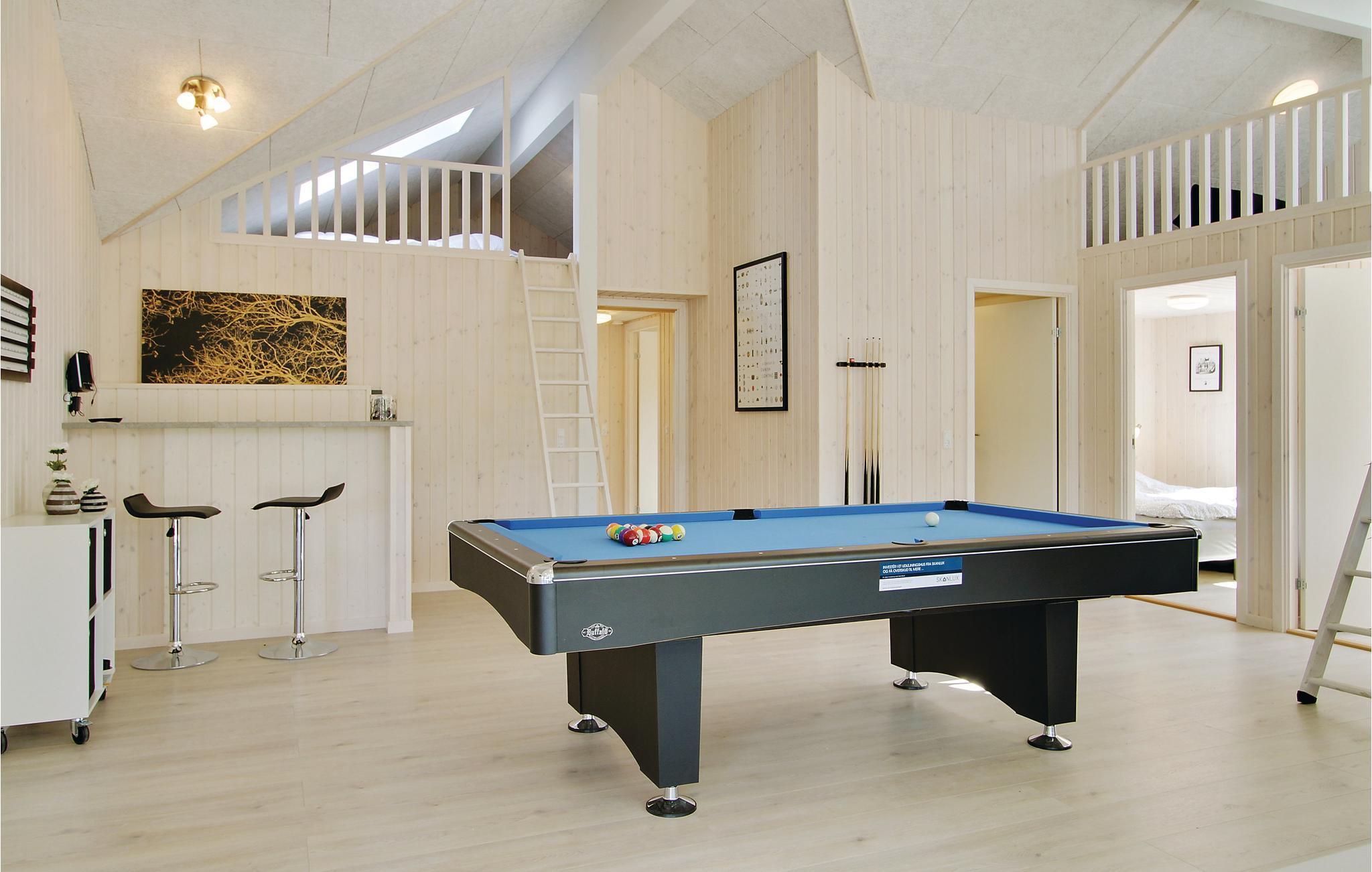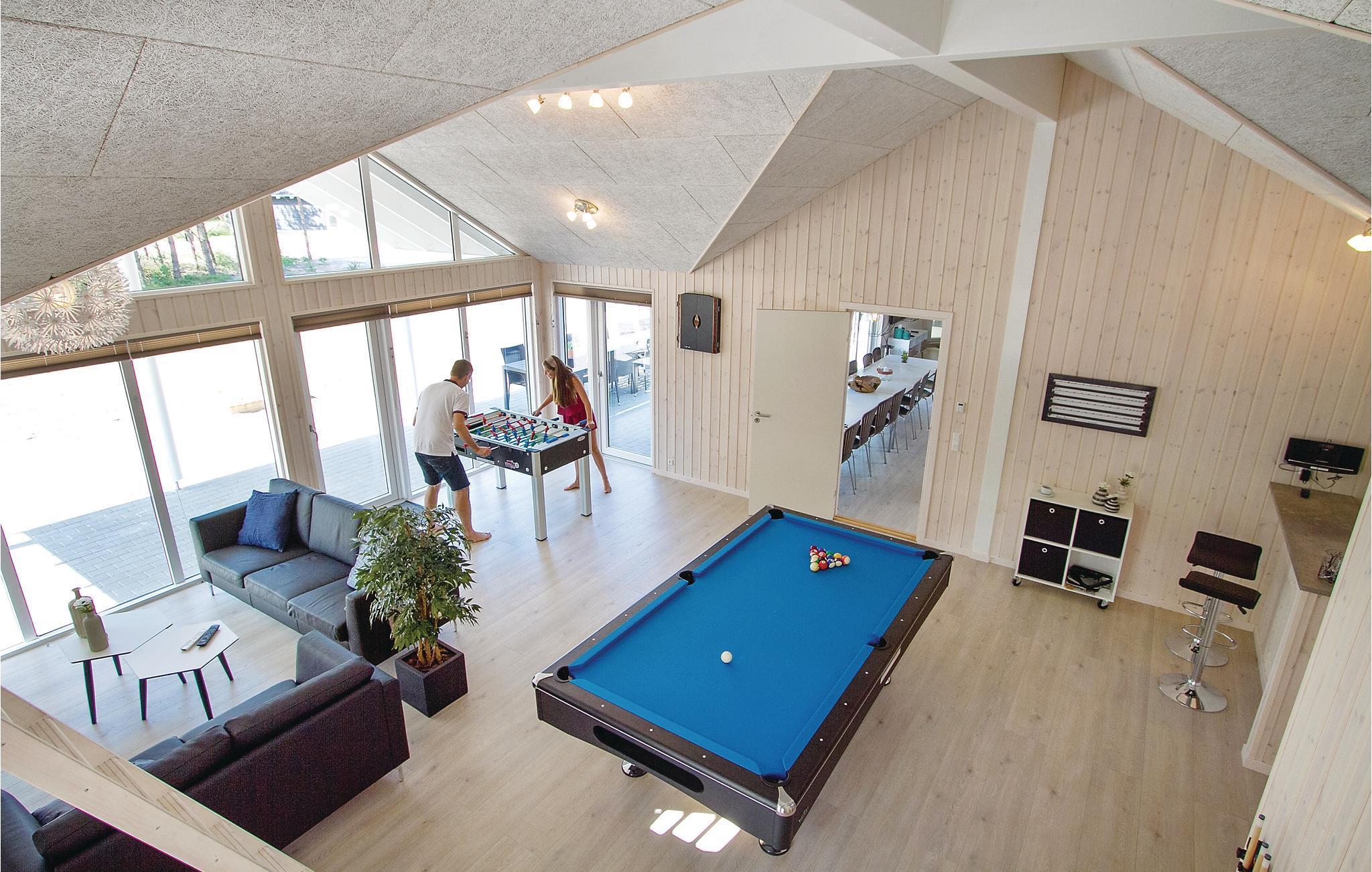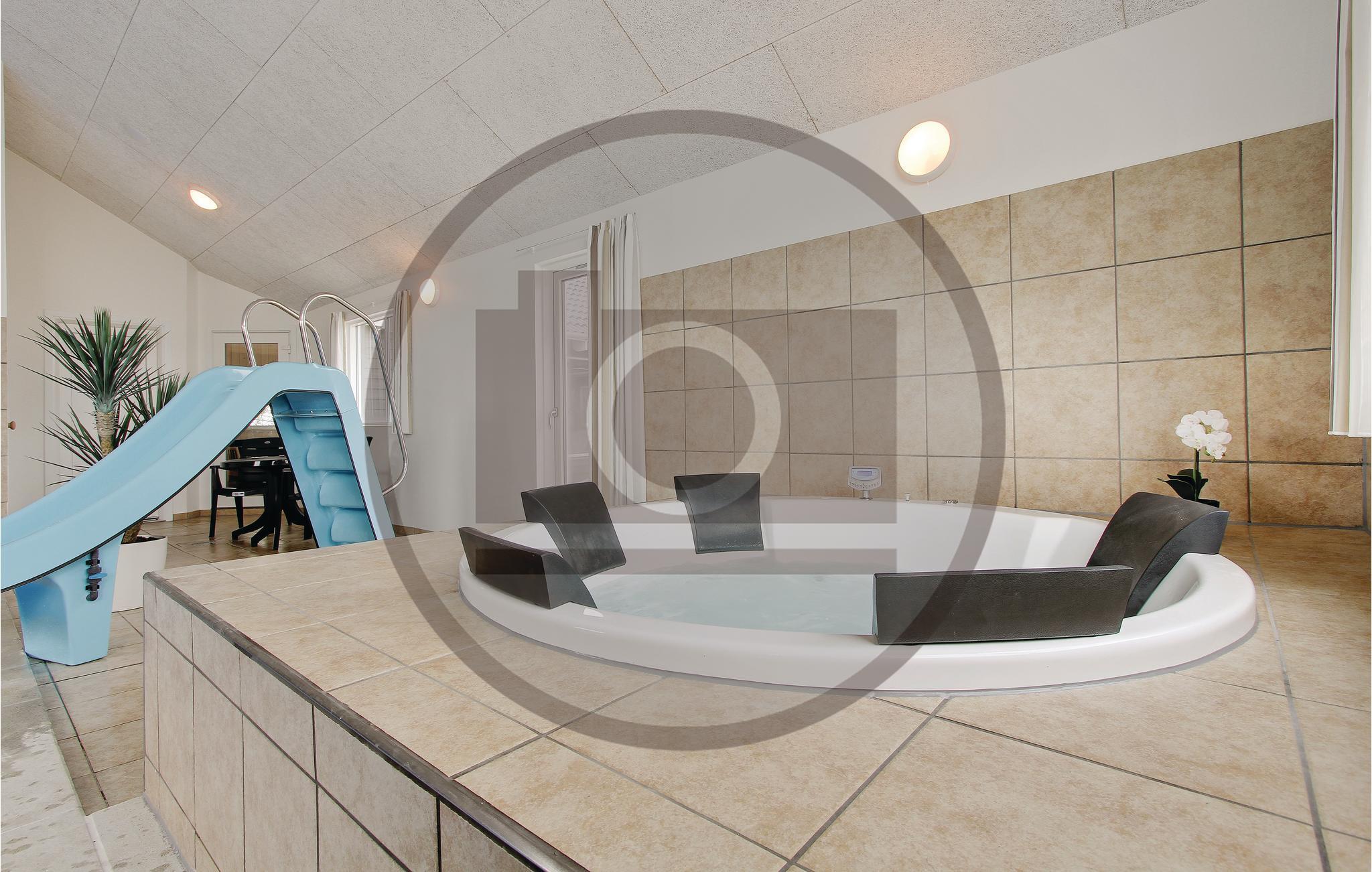 Dette store og utroligt veludstyrede kvalitetsferiehus oser af feriehygge og byder på masser af aktivitetsmuligheder uanset årstid. Huset fremtræder overalt utroligt lækkert med en flot swimmingpool med rutsjebane som det naturlige samlingspunkt i huset, hvor børn og barnlige sjæle kan boltre sig i vandet i flere timer. I kan også nyde ferien med en tur i det store spabad eller varme jer i den hyggelige sauna. Her er masser af plads omkring spisebordet, og i det nydelige, åbne køkken med alle moderne faciliteter, går tilberedning af feriens mange måltider som en leg. Huset byder også på et stort aktivitetsrum, hvor I kan spille bordtennis, billard eller bordfodbold, og for børnene er der udendørs gynger, sandkasse og et legetårn. Når I trænger til at slappe af, er de komfortable møbler i stuen et godt sted at opholde sig, eller hvorfor ikke ligge sig ud på de gode solvogne på den ene af husets terrrasseområder, og bare nyde freden og roen - det kan man da kalde ferie. Dette fantastiske feriehus med ialt otte soveværelser, en stor hems og tre badeværelser ligger på en stor naturgrund i det populære Snogebæk, og der er ikke langt til en glimrende sandstrand, hyggelige småbutikker og restauranter. Husets høje komfort og mange moderne faciliteter samt aktivitetsmuligheder gør det attraktivt for ferieophold, teambuilding-arrangementer og familiesammenkomster året rundt.