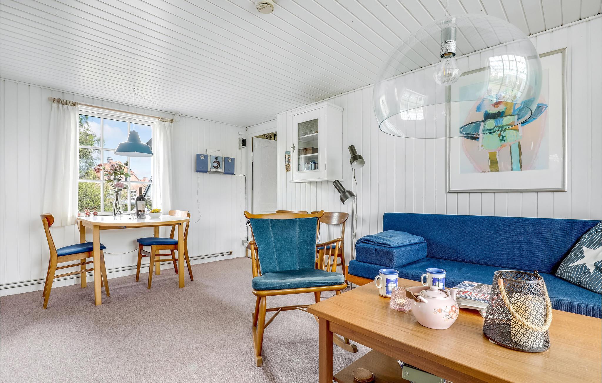 Midt i det populære fiskerleje, Snogebæk, ligger dette hyggelige træsommerhus med lys og venlig indretning og en dejlig overdækket terrasse samt en børnevenlig græsplæne. Huset fremtræder lyst og hyggeligt med et åbent køkken, hvor I nemt kan tilberede de mange feriemåltider. Nyd aftenerne i spise- og opholdsstuen, som emmer af charme, og når det er tid til at gå til ro, er der mulighed for at gøre det helt mørkt i soveværelset.