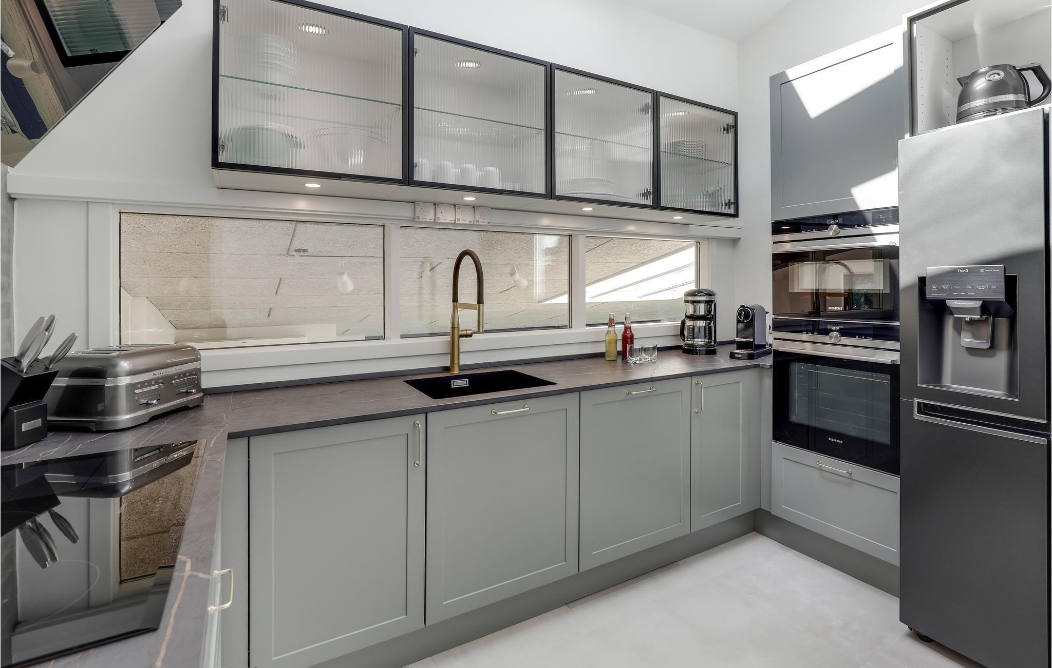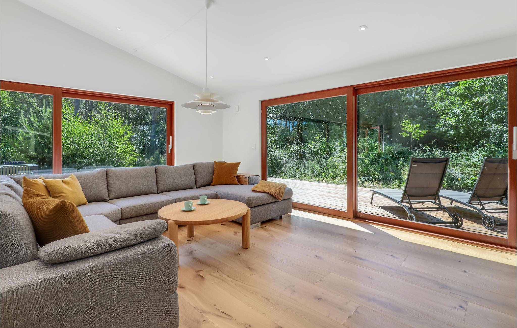 Ferieboligen har gulvvarme overalt og et ventilationssystem, hvilket sørger for et behageligt indeklima. Her får I nogle skønne dage, uanset om sæsonen er til indendørshygge eller sol i haven. I opholdsrummet kan I tænde op i el-pejsen på kølige dage eller give jer i kast med madlavningen, mens børnene plasker i swimmingpoolen, som I har udsyn til fra køkkenet. Der er fem gode soveværelser, så huset er godt indrettet til 11 personer.
