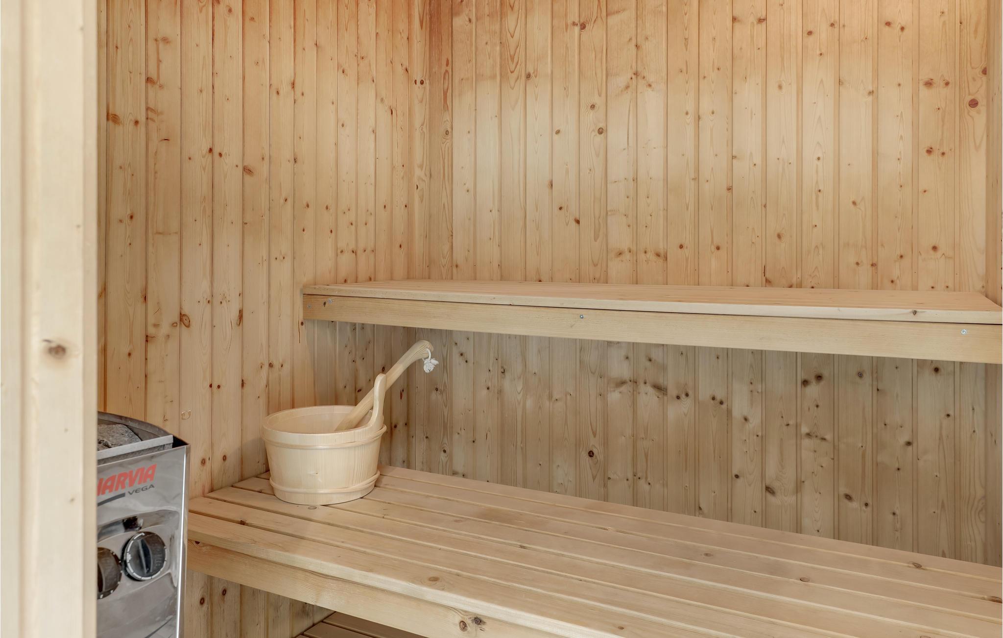 Spaområdet byder på liggestole, en stor sauna, boblebad og opvarmet indendørs swimmingpool, så her er der masser af muligheder til en dag med indendørsvejr. Når solen er fremme, kan I rykke selskabet ud på en af de to store terrasser med havemøbler og gasgrill, hvor I kan nyde kigget til havet, som ikke er mange meter væk. Rundt om huset er der en dejlig grund, hvor I kan lytte til fuglefløjt og nyde freden og roen, mens børnene boltrer sig i det fri eller hygger sig med at bygge sandslotte.