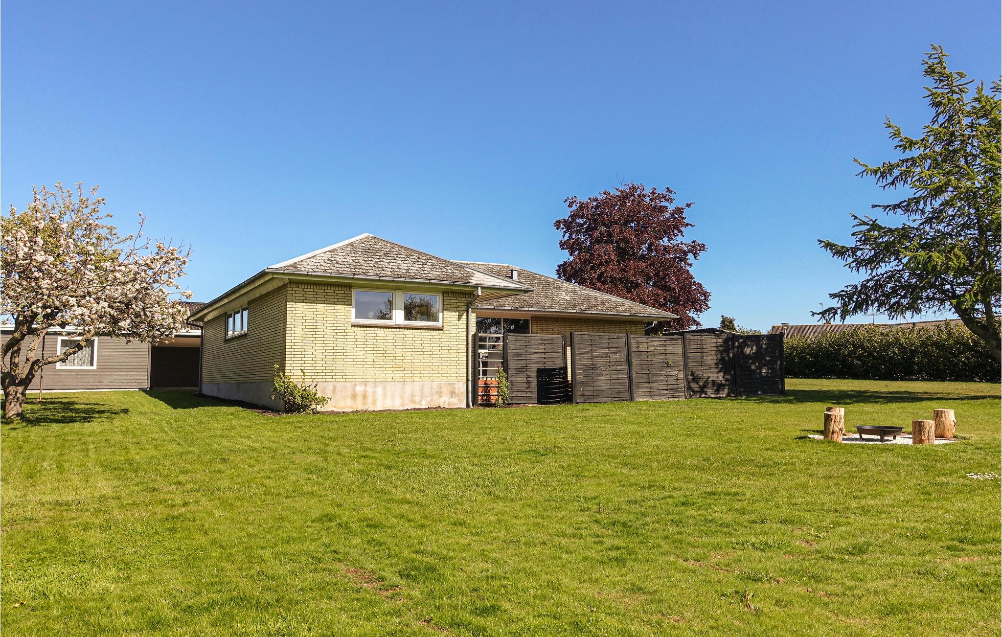 Hyggeligt feriehus i Snogebæk kun 700 meter fra sandstrand med terrasse, have og bålplads.