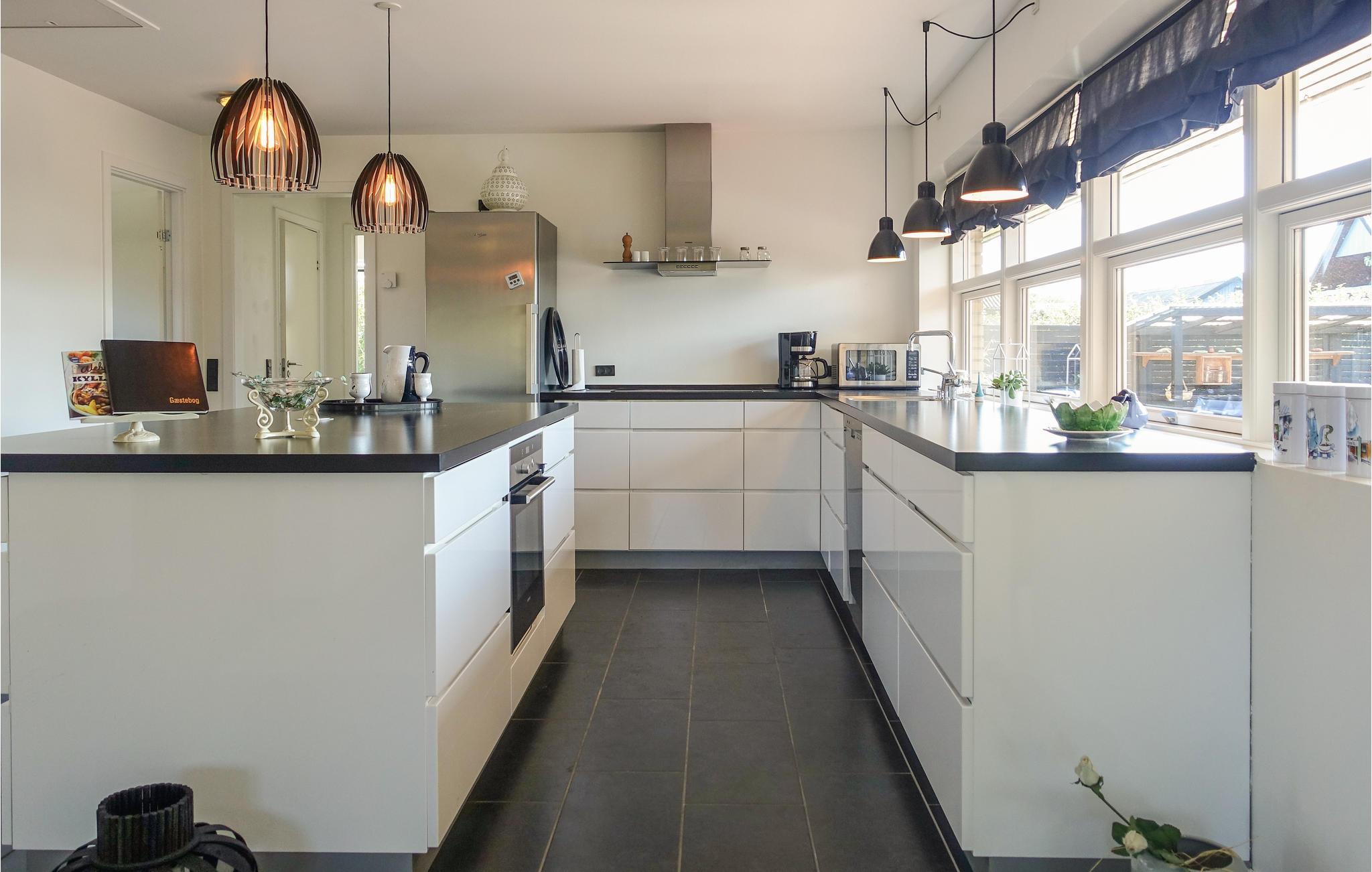 Velkommen til denne attraktive og rummelige feriebolig med gulvvarme overalt, hvilket sikrer et behageligt indeklima. Det naturlige samlingspunkt er opholdsstuen med spiseplads, hvor I kan flade ud og se fjernsyn. Store vinduer lukker dejligt meget lys ind. I det store, åbne og veludstyrede køkken er det en fornøjelse at lave mad, mens radioen spiller. Derudover består huset af tre gode soveværelser, et fint badeværelse, et gæstetoilet og et bryggers med vaskemaskine og fryser.