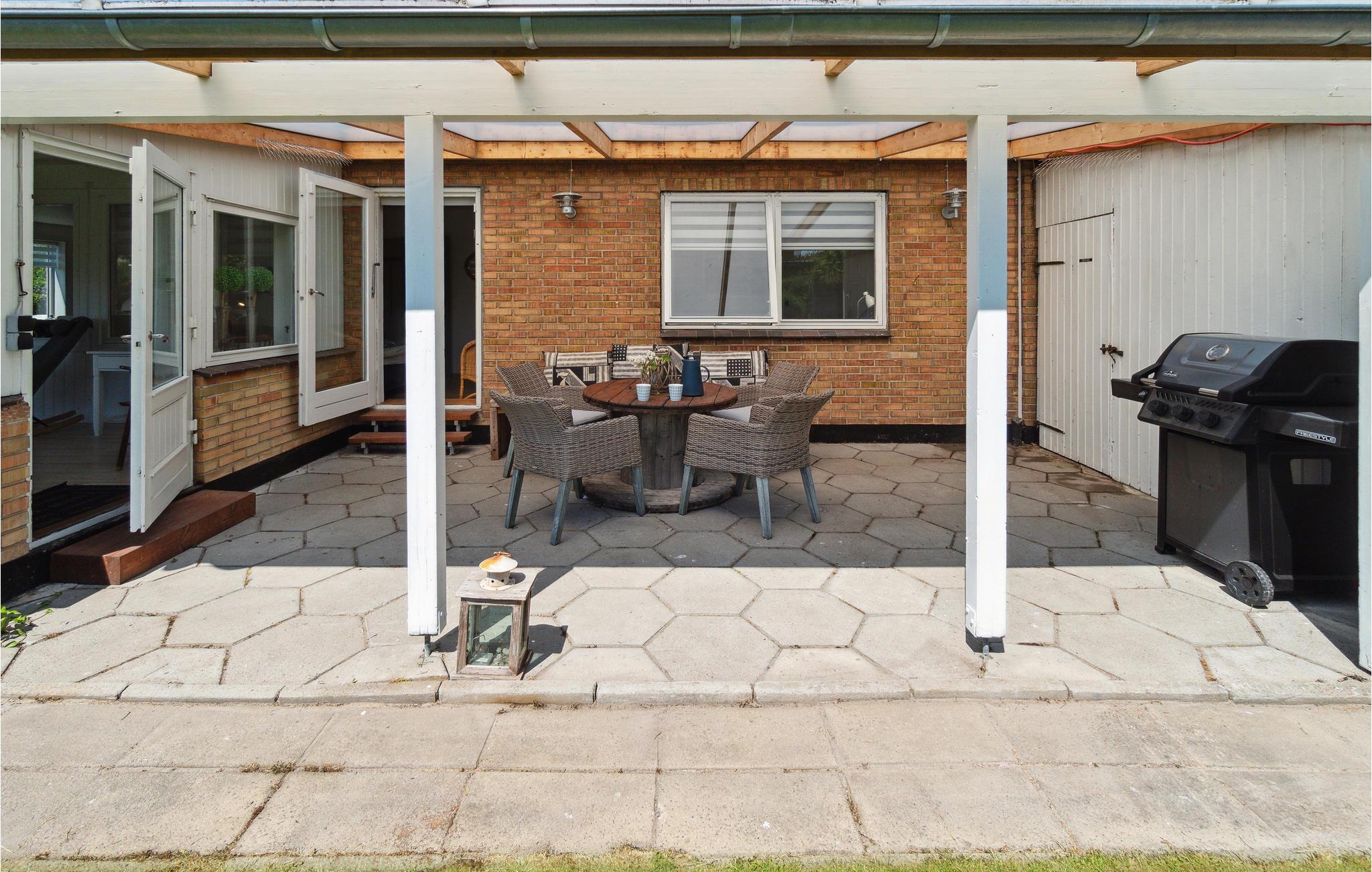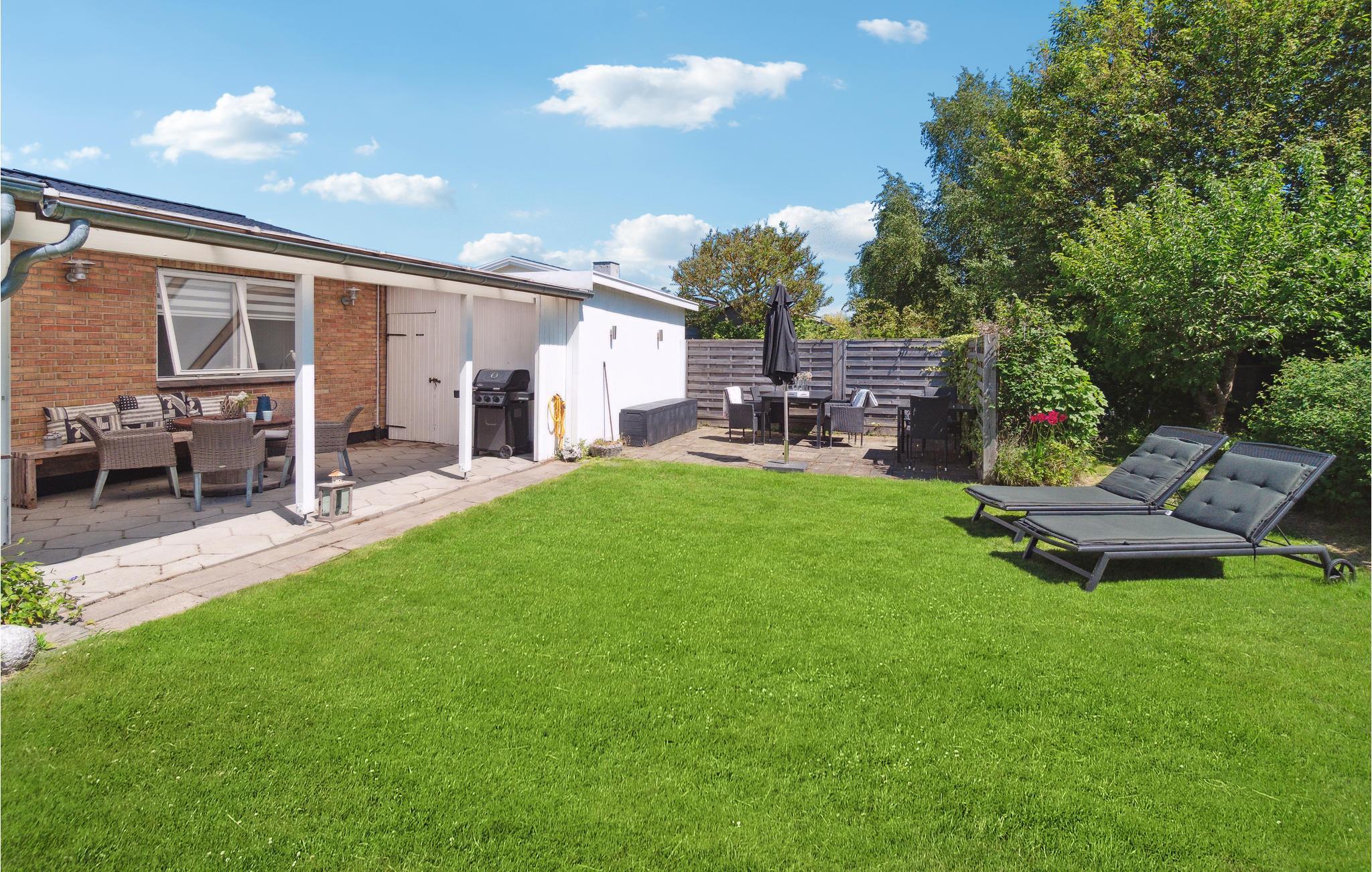Til huset hører en dejlig, overdækket terrasse med havemøbler og en gasgrill, så I kan tilberede lækre feriemåltider. Den nydelige, indhegnede have tilbyder god plads til fysisk udfoldelse, og her finder I også en åben spiseplads.
