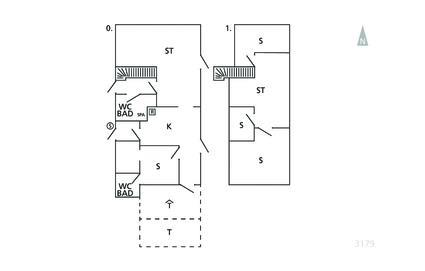 Badeværelse (nr. 1) - WC. Varmt og koldt vand. Bruser