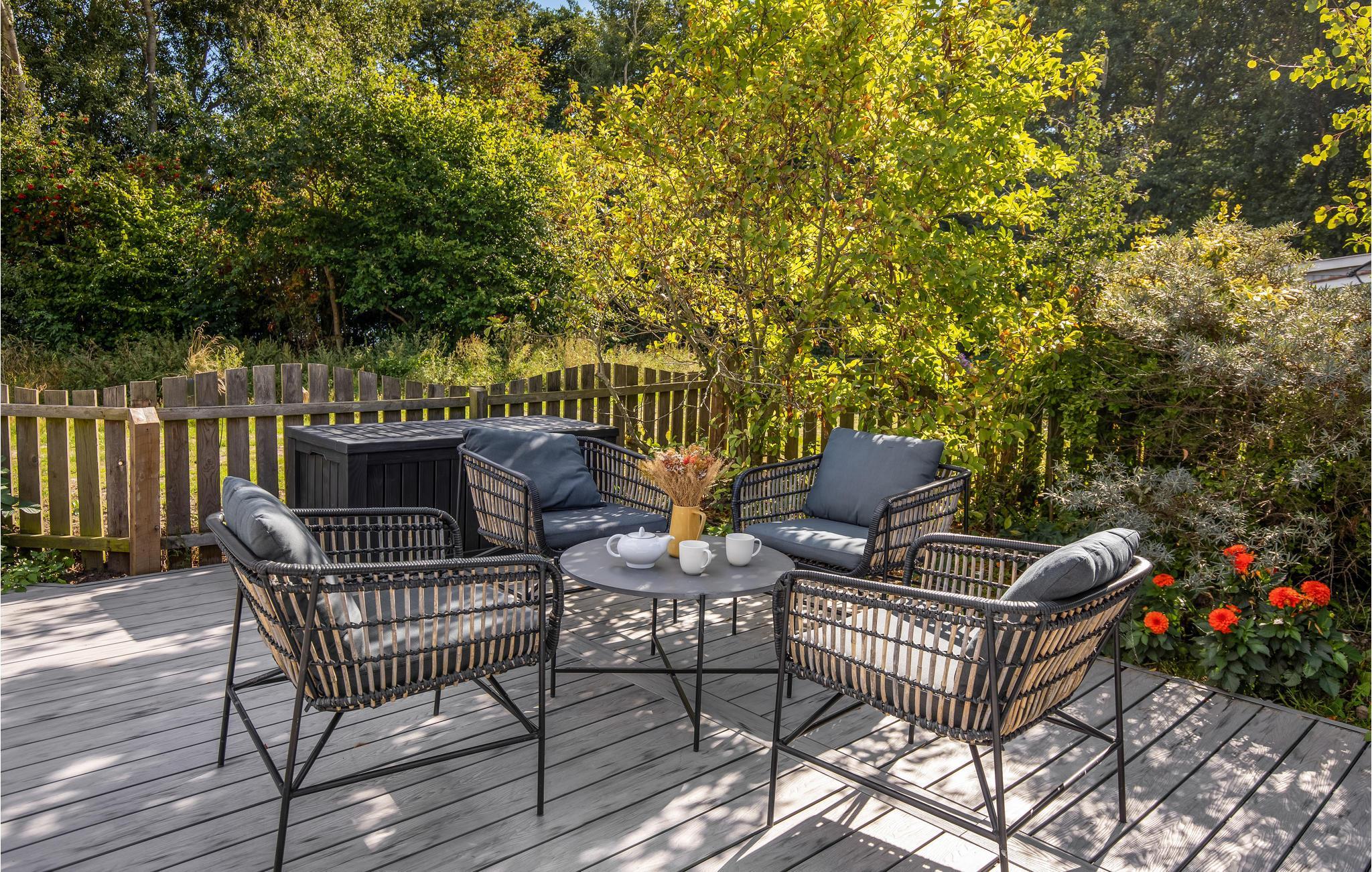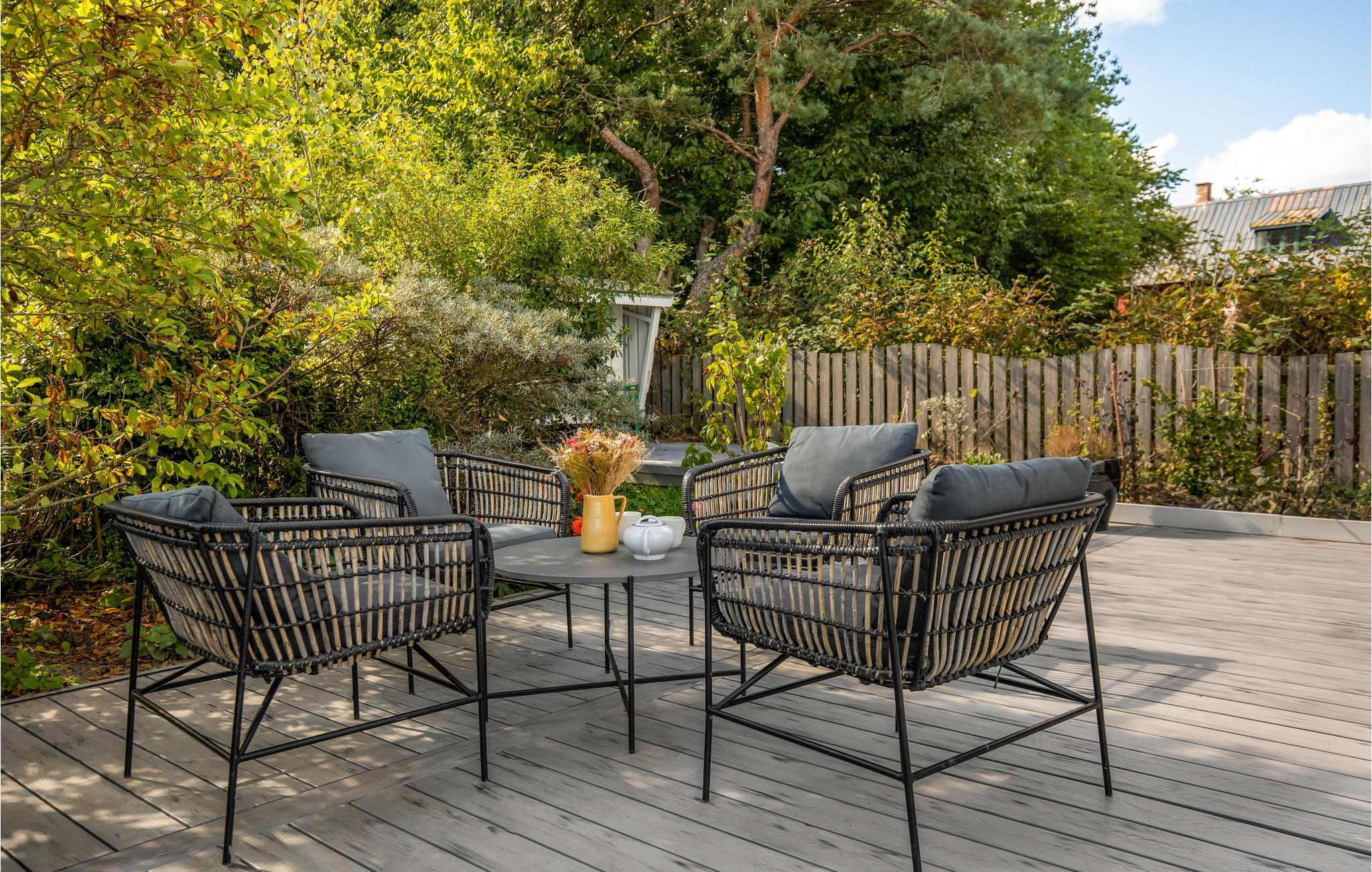 Til huset hører en skøn, delvist overdækket træterrasse med havemøbler og en gasgrill, så I kan tilberede lækre grillretter. Her er både liggestole og flere solbænke på husets havvendte side, så I har mange behagelige steder at vælge mellem til at nyde solen og den friske havluft. En stor græsplæne med god plads til leg og boldspil fører lige ned til stranden, så I kan gå fra huset og hoppe i bølgen blå på få minutter.