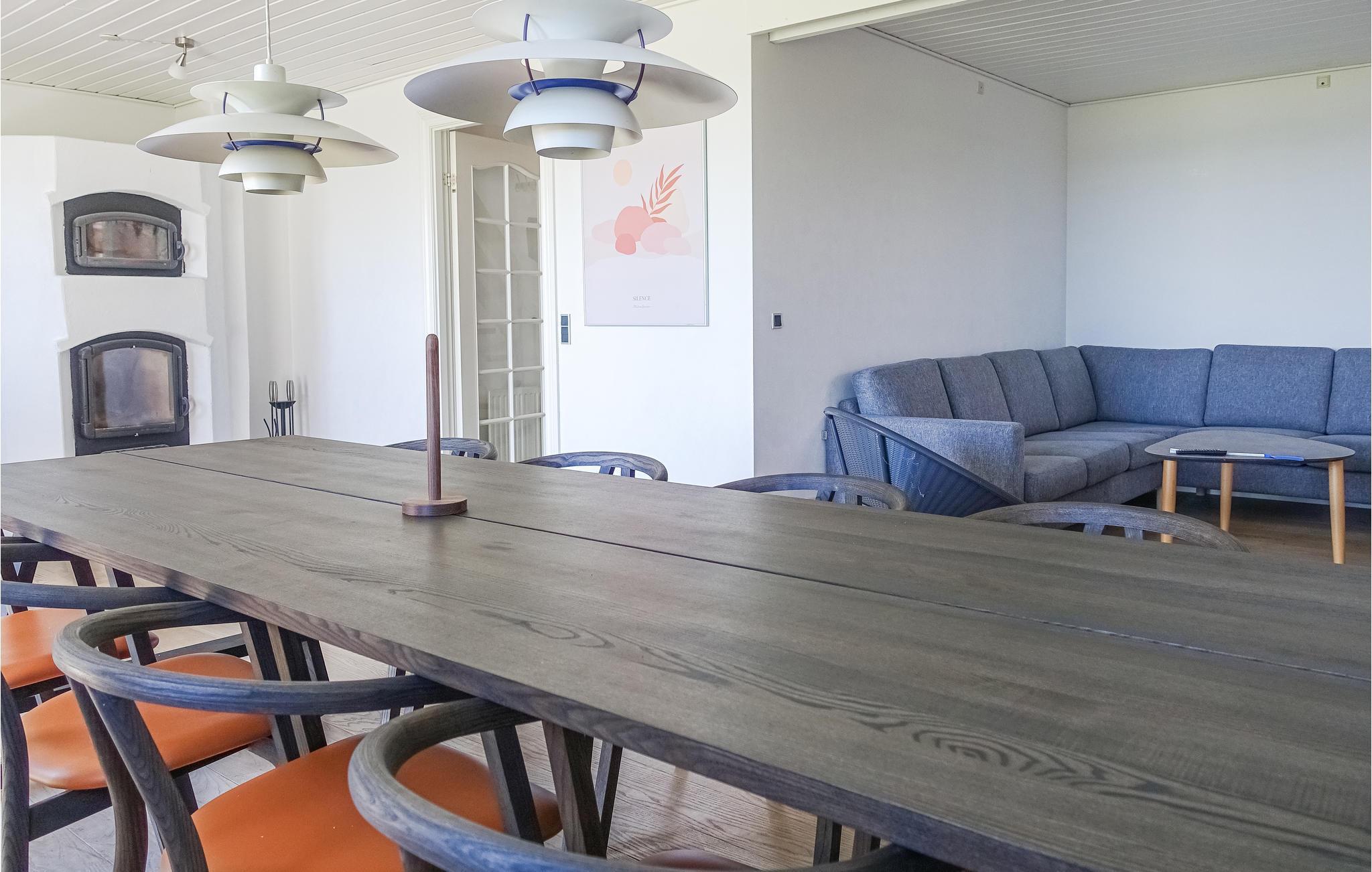 Velkommen til dette dejlige og smagfuldt indrettede sommerhus. Husets hjerte er den rummelige opholdsstue, hvor I kan flade ud i behagelige møbler og se fjernsyn, samles om spisebordet til jeres feriemåltider og i kølige sæsoner nyde varmen og den hyggelige atmosfære fra brændeovnen. I det store, åbne og veludstyrede køkken er det en fornøjelse at lave mad. Der er havudsigt fra både stuen og køkkenet. Badeværelset har gulvvarme og et spabad til skøn ferieafslapning. I finder en vaskemaskine i bryggerset. Soveværelset i stueetagen har dobbeltseng og eget badeværelse. På 1. sal finder I en opholdsstue og tre gode soveværelser mere.